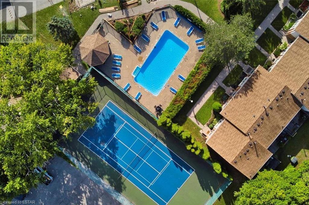 WOW! This is a great place to start. . . or downsize to! Build your own equity! You will love this complex that has so much to offer!! The location is awesome, the amenities -- pool, tennis court you normally find in more expensive condo complexes. Enjoy the village life of 'Beautiful Byron'. Walking distance to restaurants, shopping, library, groceries, banks & wonderful Springbank Park and Storeybook Gardens. Boler Mountain skiing is great for winter family fun! Golf is around the corner --- the other side of the river. Walking trails are throughout Byron. Great schools & so much more! Enjoy affordable living in the 2 bedroom unit with 1 1/2 baths. Primary bedroom has ensuite privilege's and great closet space. Spacious kitchen with door leading to fenced patio for relaxing BBQ'S. Rec Room in lower level is perfect for the big screen. Put your personal touches to this condo. You will enjoy living in this complex and village atmosphere. (id:22211)