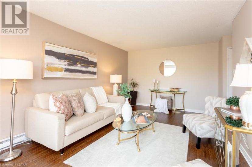 Welcome to 135 Base Line Road West “Westwood Place” - where convenience meets comfort. You will love this unit from the moment you step inside this meticulously maintained condo with an amazing east view that fills the space with lots of natural light streaming through the large windows. There are two spacious bedrooms and one bathroom, the primary bedroom features a built-in closet organizer. Bright galley style kitchen with backsplash, separate dining room, spacious living room, plus convenient office nook and bonus in-suite laundry. Beautifully updated throughout including the kitchen, bathroom, all appliances, flooring, carpet, light fixtures and cooling wall units. This condo is move-in ready and not to be missed. Check it out! When you live here you will be close to shopping, parks, trails and downtown. (id:22211)