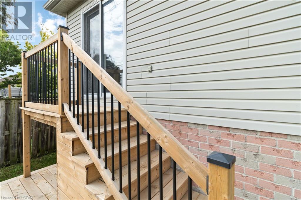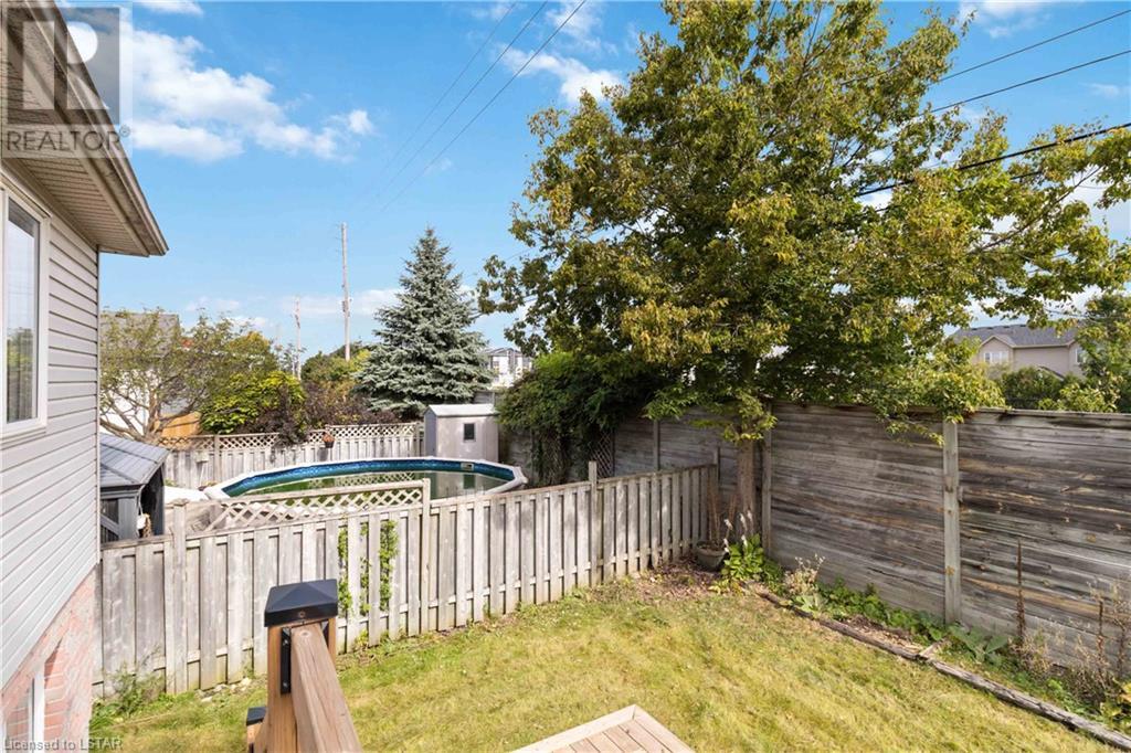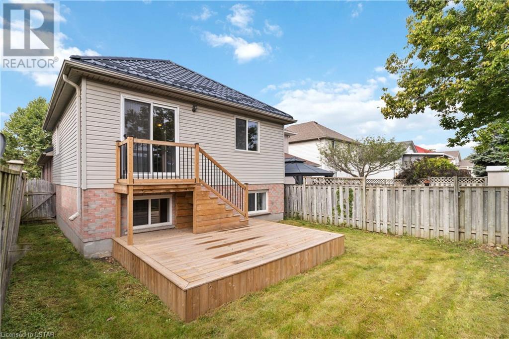 Beautiful 3-bedroom back-split home located on a quiet and desirable crescent in North East London. Inviting foyer with double doors, open concept living area, large eat-in kitchen. 3 spacious bedrooms, including a 4-piece cheater ensuite. Large lower-level family room with an additional 3-piece bathroom. Single-car garage with automatic opener and inside entry. Fully fenced backyard with a newly built deck. Metal roof installed in 2018. 2 bonus rooms in the lower level. Close to schools, amenities, public transit, and trails. Low property taxes, only $3,448.35 per year. Great school zone for both public and Catholic. (id:22211)