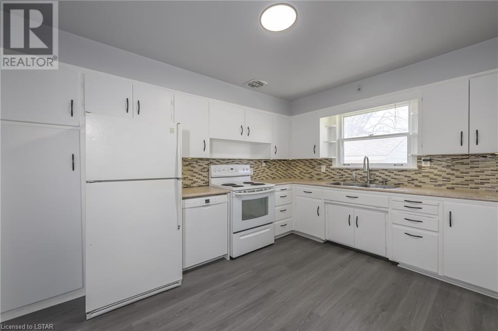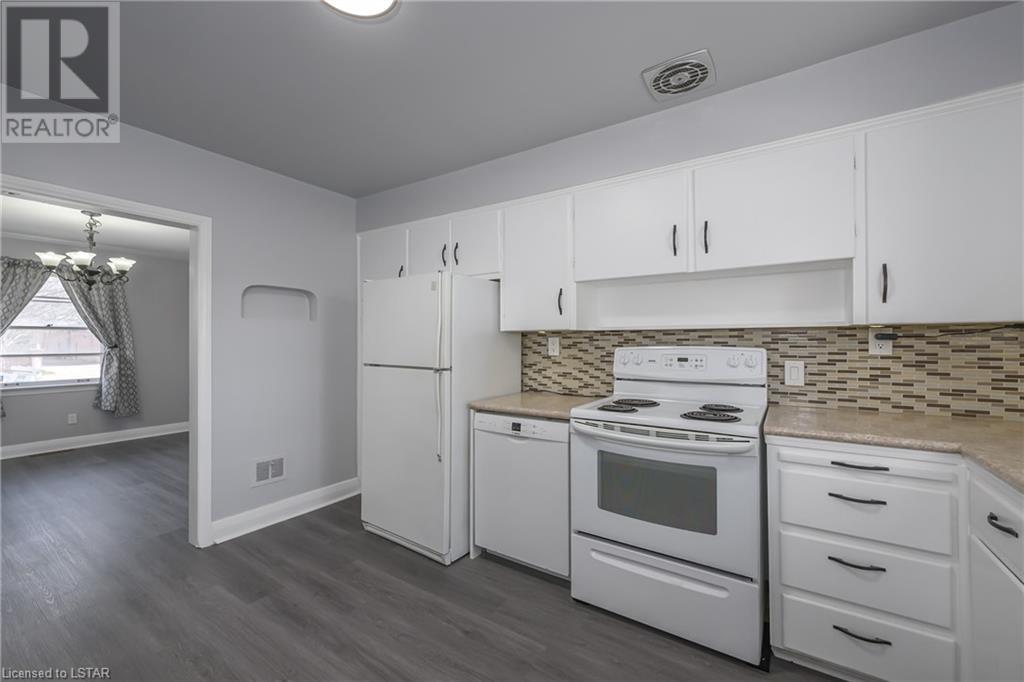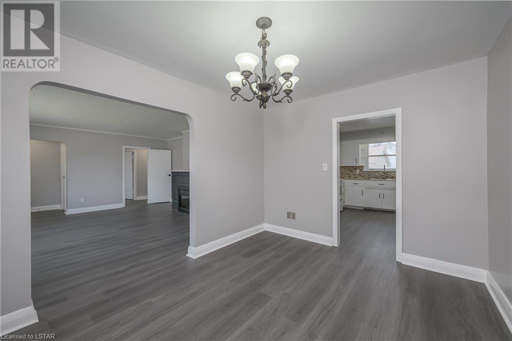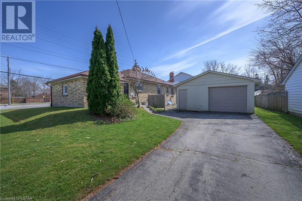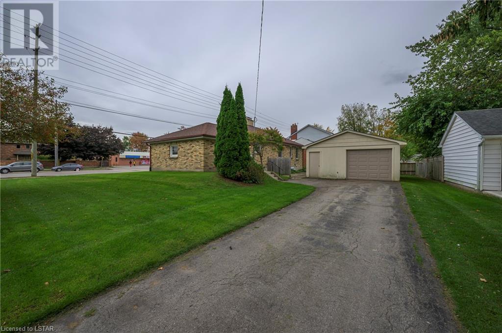 Fresh Paint & New Flooring throughout MainFloor! This listing Currently w 5 bedrooms, 2 1/2 bathrooms, Plenty of Storage, 2 stairs to lower level with great height - incl. Separate Exterior Walk-Up Lower Access, 2 Separate Garage' - 1 attached single car garage + Detached Oversized garage, 3 driveways with parking for 9+, Ample possibilities for future development, expanding parking. This property currently vacant and ready for immediate occupation/development. Zoned as R1-7. Main Kitchen cupboards re-painted inside and out, both bathtubs have been re-glazed, fresh paint throughout much of main and lower, hardwood flooring in 2 upper bedrooms has been refinished and carpeting in lower has been cleaned. Great Exposure on Corner Lot w 100' Frontage on Adelaide just south of Fanshawe Park Rd. w parking for 9+ with potential to add more units, possible mixed use - ask City of London. (id:22211)