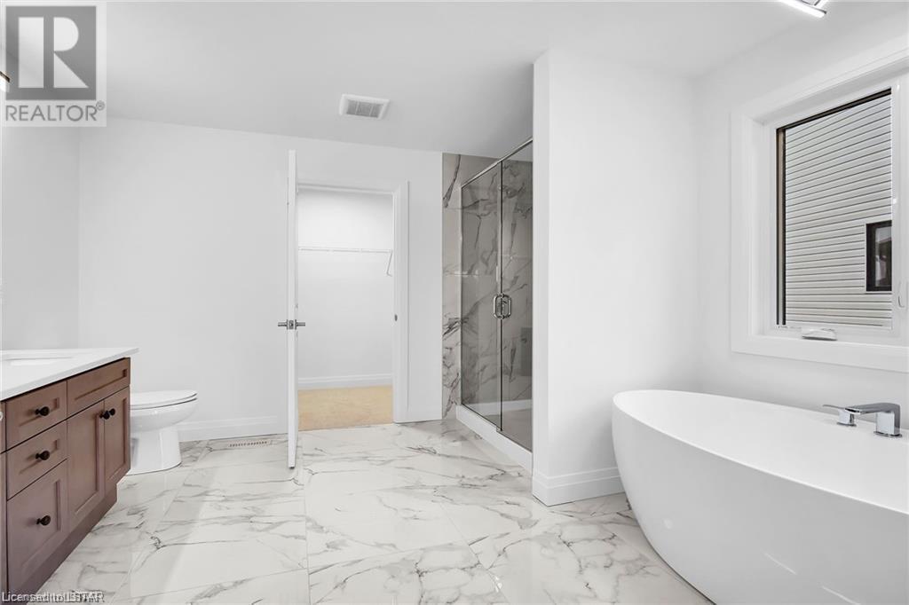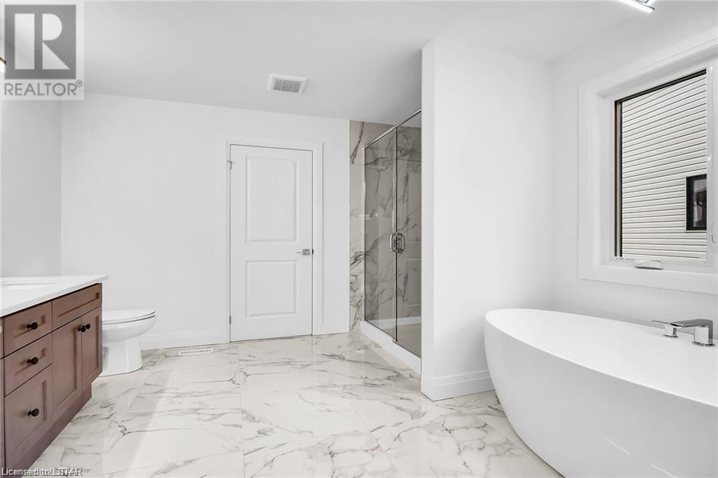 Foxwood Homes presents the Preston Model TO BE BUILT with 4-bedrooms, 2.5 bathrooms, optional separate side basement entrance and MORE! TO BE BUILT with 2024 closing. Offering approximately 2276 square feet above grade, two-car double garage, crisp designer finishes throughout and a terrific open concept layout, this is the PERFECT family home on a desirable crescent location. Desirable finish selections including modern colour tones, engineered hardwood, tiled bathrooms, and upgraded wood stairs with spindles. The main floor offers a living room, custom kitchen with island and quartz countertops, dining area, main floor laundry and powder room. Upstairs features an expansive primary bedroom suite with luxury 5-piece ensuite/walk-in closet. Three additional bedrooms, plus a spacious 4 piece bath. Ideal for investors or multi-generational families as this home offers a second side entrance leading to the basement. Incredible value along with a premium location in Northwest London which is steps to two new school sites, shopping, walking trails and more. Welcome Home to Gates of Hyde Park! (id:22211)