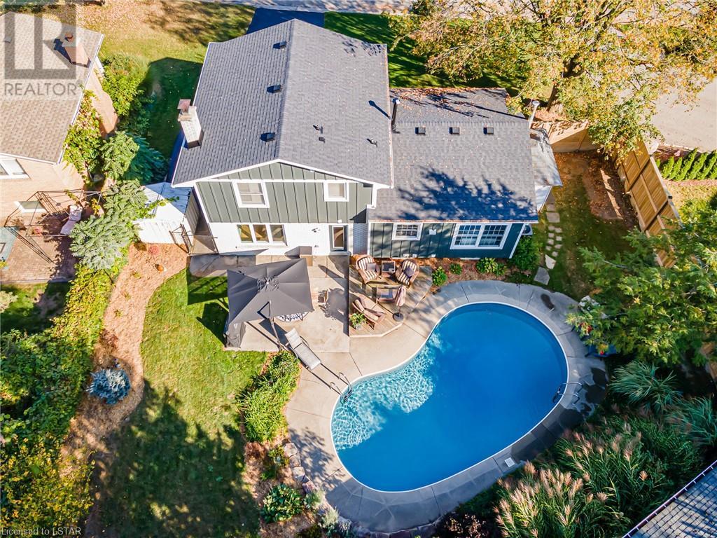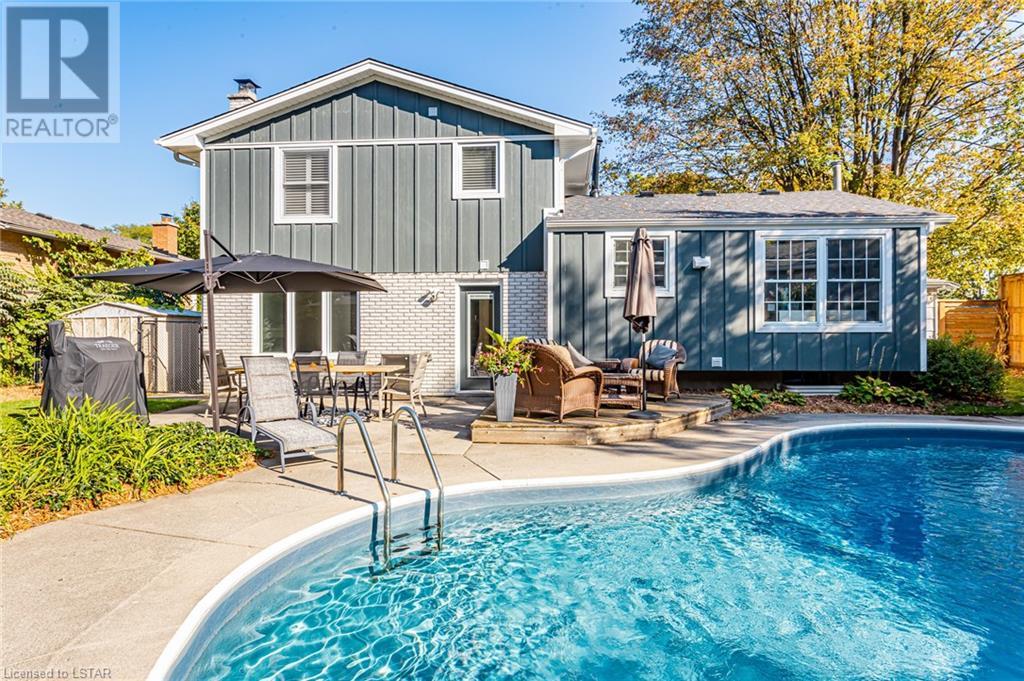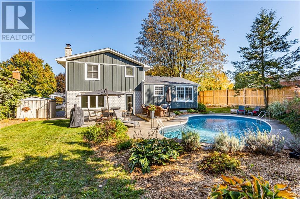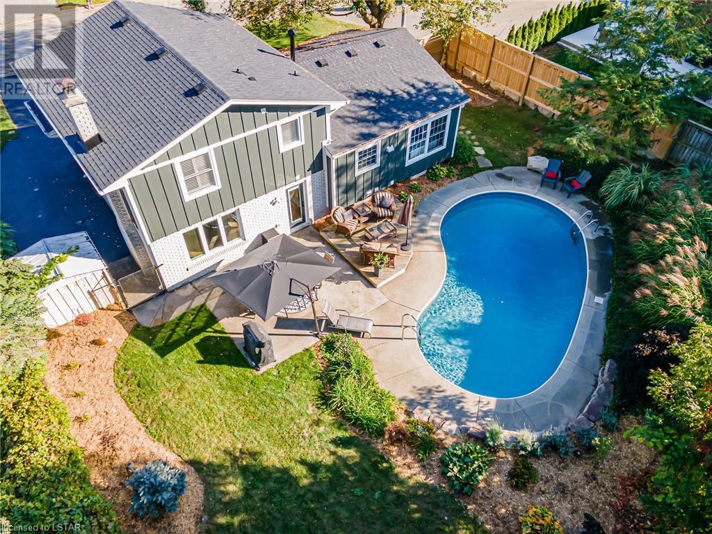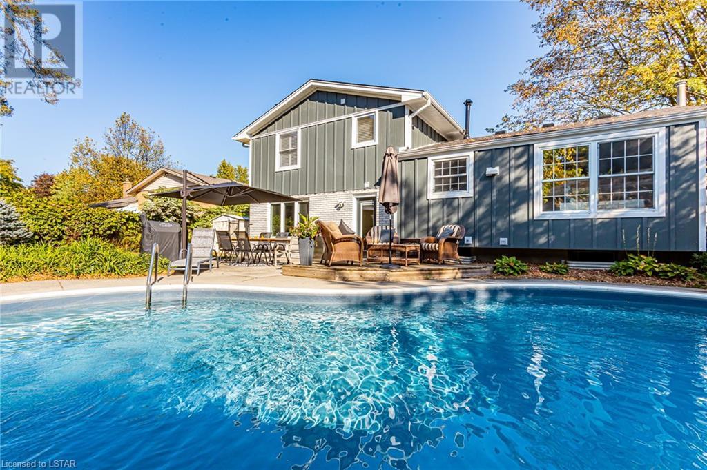The pictures don't lie: When it comes to curb appeal or a tranquil backyard oasis, it doesn't get any better than this! This beautifully updated 3 bedroom, 2 bathroom (1+1) home is a standout on Park Lane Crescent. The interior features updates throughout the main level and upper levels, offering beautifully finished bedrooms and main living areas. Attention to detail and high-end finishes throughout. As you enter this home through its stunning oversized front door, you could easily mistake it as a new build. With most of the key updates completed, this home still offers you the opportunity to make your own statement. This charming home is a must-see if you are looking to get into one of the best neighbourhoods in the city! The west side of Byron boasts fantastic schools, a village-like setting with mature tree-lined streets. Park Lane Crescent is a child-safe, low-traffic area with amazing neighbours! Updates include: Pool saltwater system: (2020), Pool heater:(2020), Pool liner:(2019), Upstairs windows:(March 2021), California shutters:(2021), Garage window:(Approx 2020), Family Room window:(Approx 2020), Garage door and Front door by Douglas Window and Door: (March 2022), Back door:(2021) Shingle Roof:(2021) Hardie Board Siding and eavestroughs:(2022)Upstairs engineered hardwood flooring:(2022), Downstairs engineered hardwood:(May 2022) Interior Doors and Handles:(2022), Fence (2019). Furnace & HWT (2015-2016) Front Yard piped and ready for irrigation (2020) Gas for BBQ (id:22211)