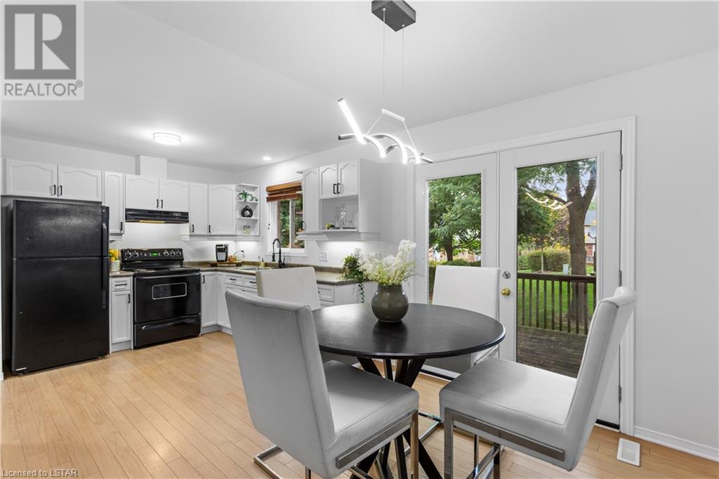 You will enjoy this immaculate, turn key condo on popular Trossacks Ave. Great opportunity for first time buyers. Spacious main floor layout has a beautiful eat in kitchen w/ new patio doors to a deck, big bright living room w/ hardwood floors and a convenient main floor 2 pc bath. Upstairs are 3 bedrooms including a huge primary that measures 11’x19’, all having plenty of closet space. Brand new carpeting in the entire upstairs and stairs just completed Sept 2023. Full 4 pc bath is very functional having plenty of storage options. In the basement you will find a rec room for entertaining, 3 pc bath with shower, large laundry room and storage area. This unit was just professionally painted in neutral tones from top to bottom including the kitchen cabinetry and is sure to impress! Convenient north London location not far from Masonville Mall, UWO and University Hospital. Quick possession is available! (id:22211)