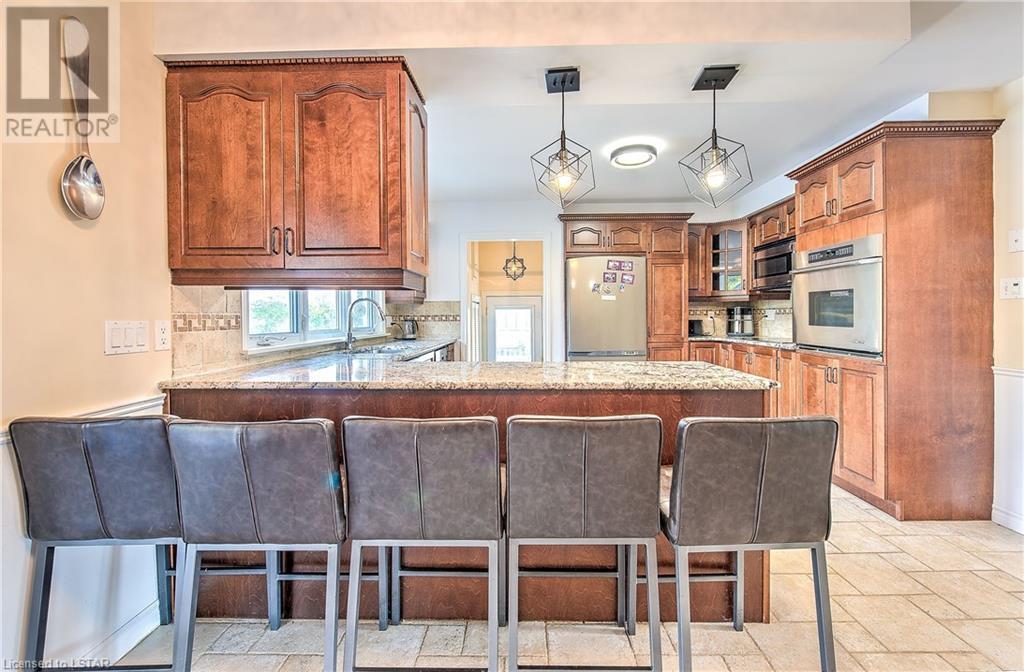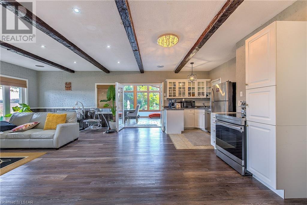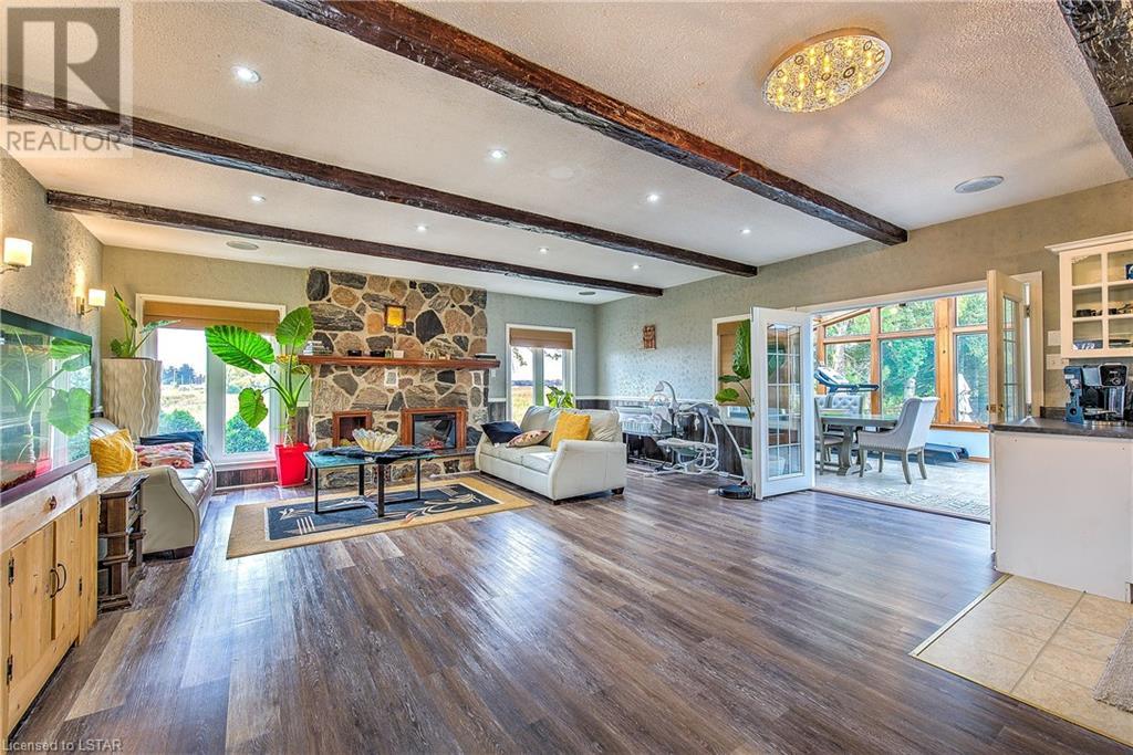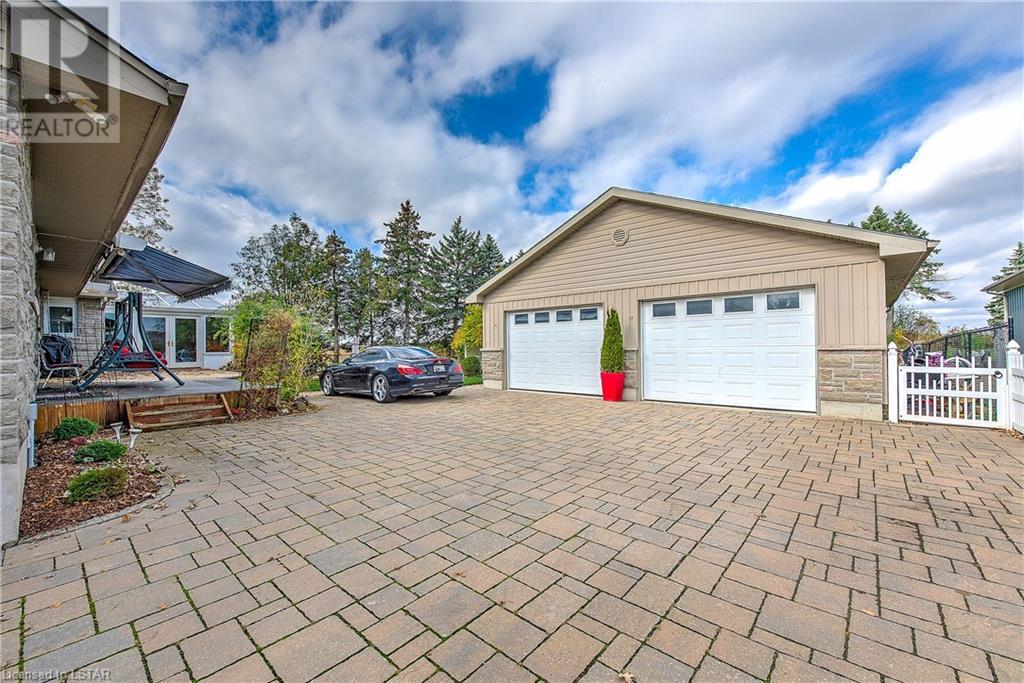 DO NOT MISS OUT ON THIS RARE OPPORTUNITY TO MOVE INTO YOUR DREAM HOME! Located In North London within the city limits. This Home Is Just Minutes From Shopping, Schools And Other Great Amenities. Situated On Approximately .60 of an Acre Of Land, 270 FT DEEP LOT WOW, This Home Gives You Endless Possibilities To Customize The Property To Become Your Next Haven. Arrive Home To A Country Style Ranch, With An Impressive Large Front Yard, Circular Driveway And 14 Car Parking All The Way To The Back. Once Inside And You Will Be Greeted With Neutral Paint Colour Selections To Fit Any Style Of Decor! This Home Is As Inviting As It Gets. A Spacious Front Foyer Leads To The Family Room With An Electric Fireplace. You Will Fall In Love With The Rustic Eat-In Kitchen Which Boasts Custom Cabinetry, Trendy Counters & Ample Storage!! There Is Enough Space In This Home To Entertain And Host With Comfort. Walk Out From The Dinette To Enjoy Your Backyard Oasis, On Your Rear Deck with Awning, And Fully Fenced Backyard...Perfect For Summer BBQ And Evening Teas. You Will Love Looking Out At The Nature And Trees That Surrounds You From Your Sunroom Which Boasts Heated floors, AC & Heat- Perfect for Year Round Use. Fall In Love With Your Large Fire Pit, Great For Entertaining And Summer Nights. Fish Pond, Sandbox, Above Ground Pool, Flagstone Pathways, This Home is Beautifully Landscaped Front to Back.You Will Also Find A Shed Out Back, Convenient For Tools And Extra Storage! Your 4 Car Detached Garage/Workshop is Perfect for The Hobby and Car Buffs. So Much Space For Your RVs, Multiple Vehicles, Boat, And Other Outdoor Gear. This Is The Perfect Family Home With 4+1 Generously Sized Bedrooms Complete With 3 Bathrooms In Total. Wow! This Home Also Comes With 2 Full Kitchens on Main Floor And Has The Option to Turn a Portion Into a Separate Unit or In Laws Suite! Additionally, Basement Also Has A Separate Entrance, Bedroom & Bathroom! * Septic Tank Was Pumped In 2022 (id:22211)