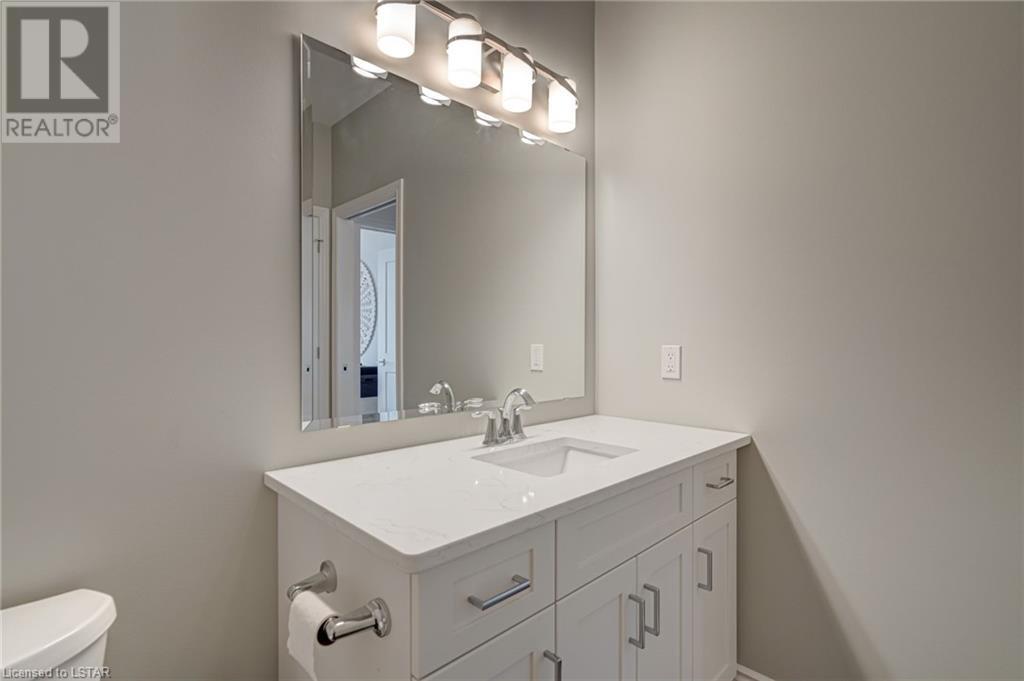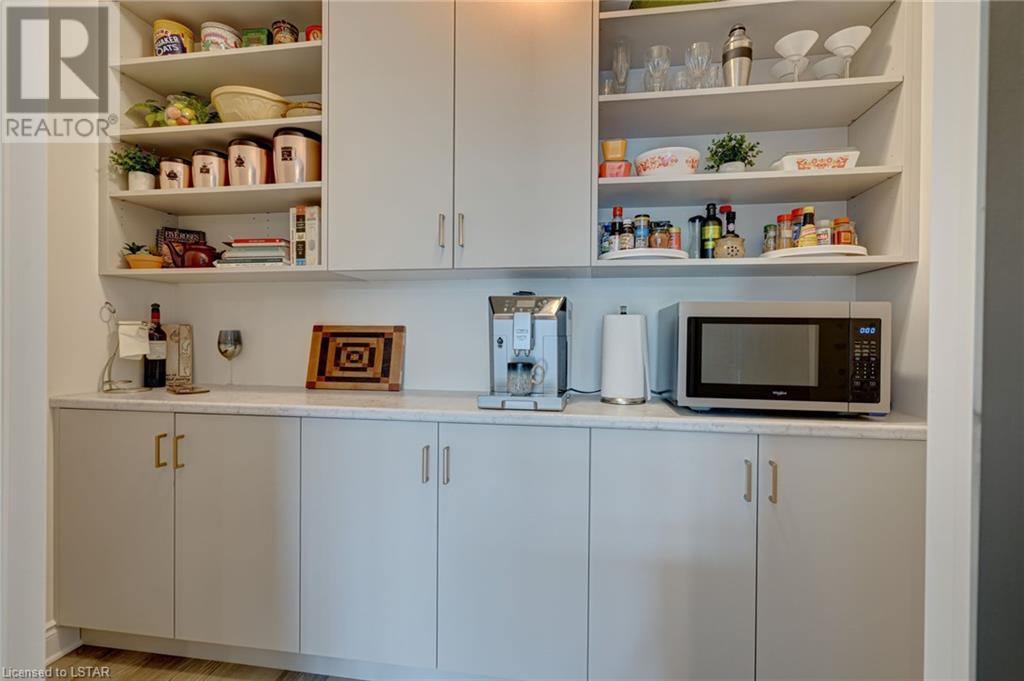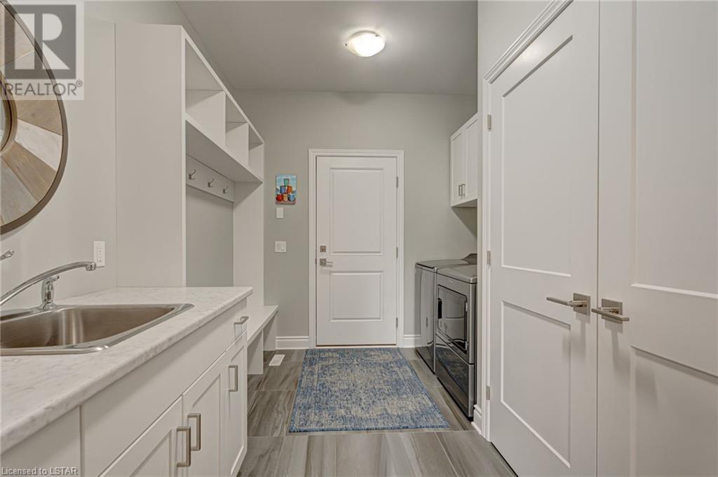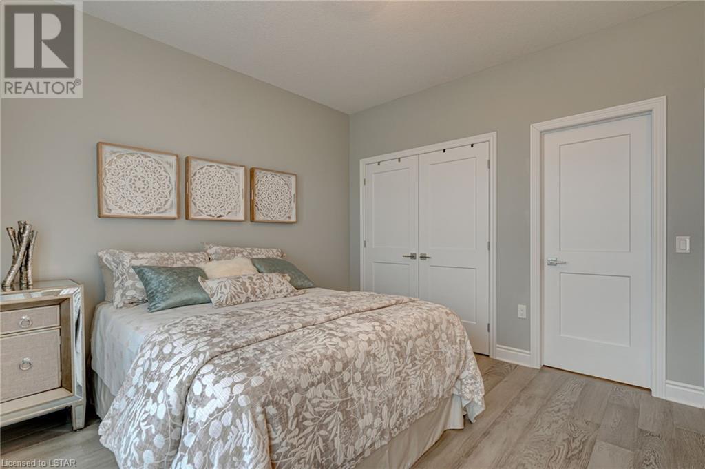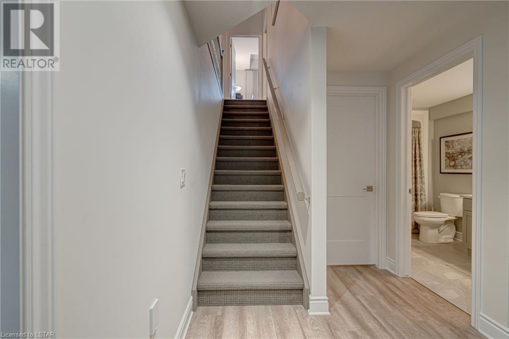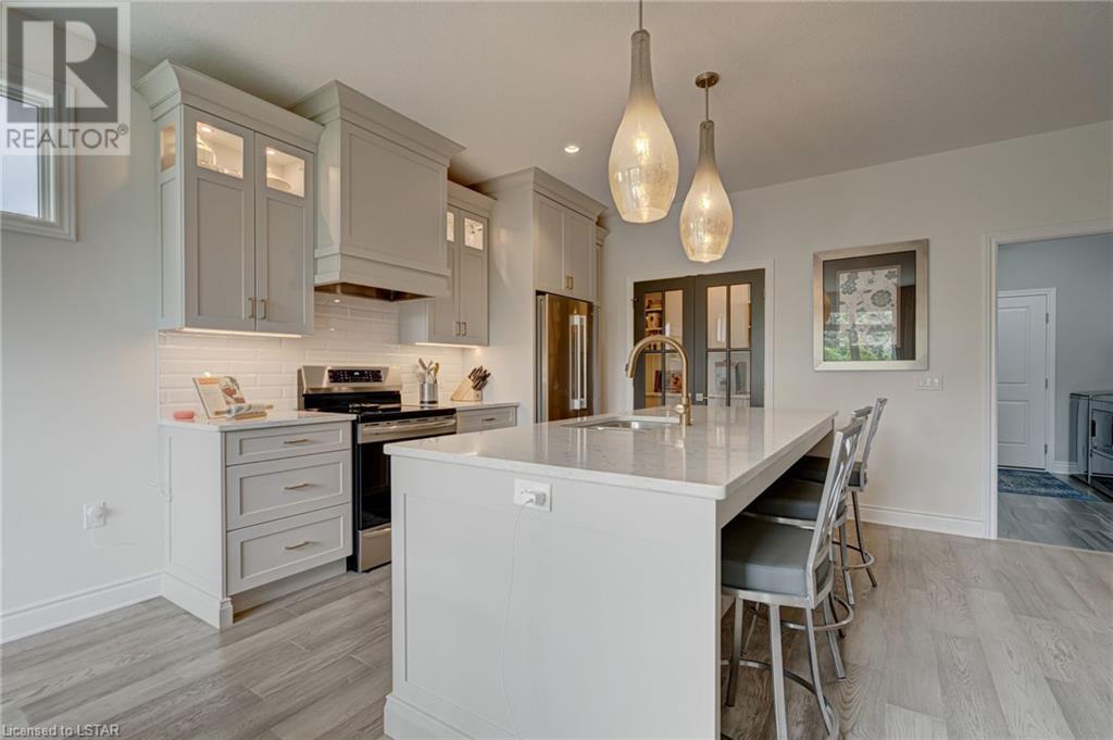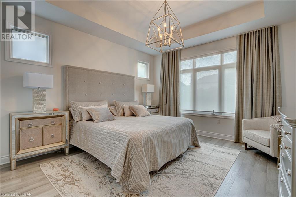 Resort living right here at home in exclusive 50 plus gated Riverbend Golf Community! Residents enjoy year round access to an incredible 28,000 sqft Clubhouse with 2 restaurants, exercise facility, indoor heated pool, lounges, party room and more. 5 year old, popular Inverness model backing onto Kains Woods Trail with loads of upgrades! 1807 sq. ft. one floor plan PLUS an additional 1400 sq.ft. of finished basement area. 2+1 bedrooms & 3 full baths. Spacious foyer leads to great room with 10 ft. ceilings and a gas fireplace with marble tile surround. The eat-in kitchen features quartz countertops, stainless steel appliances, a butler's pantry and a large island. Enjoy a generous 15’2x8’7 rear sunroom with vinyl enclosure located just off of the main living area. The Master Bedroom offers a tray ceiling, a walk-in-closet and a 4 piece ensuite with a custom tiled shower. Second bedroom with cheater ensuite access to the main bathroom. Convenient main floor laundry along with indoor parking for 2 vehicles plus golf cart. Partially finished basement with two large recreation rooms, a bedroom and a full bathroom. Monthly land lease $840.64; 2023 monthly maintenance $585.54 includes concierge at gate 24/7, lawn maintenance, snow removal, inground sprinkler system and clubhouse privileges. NO LAND TRANSFER TAX PAYABLE (id:22211)