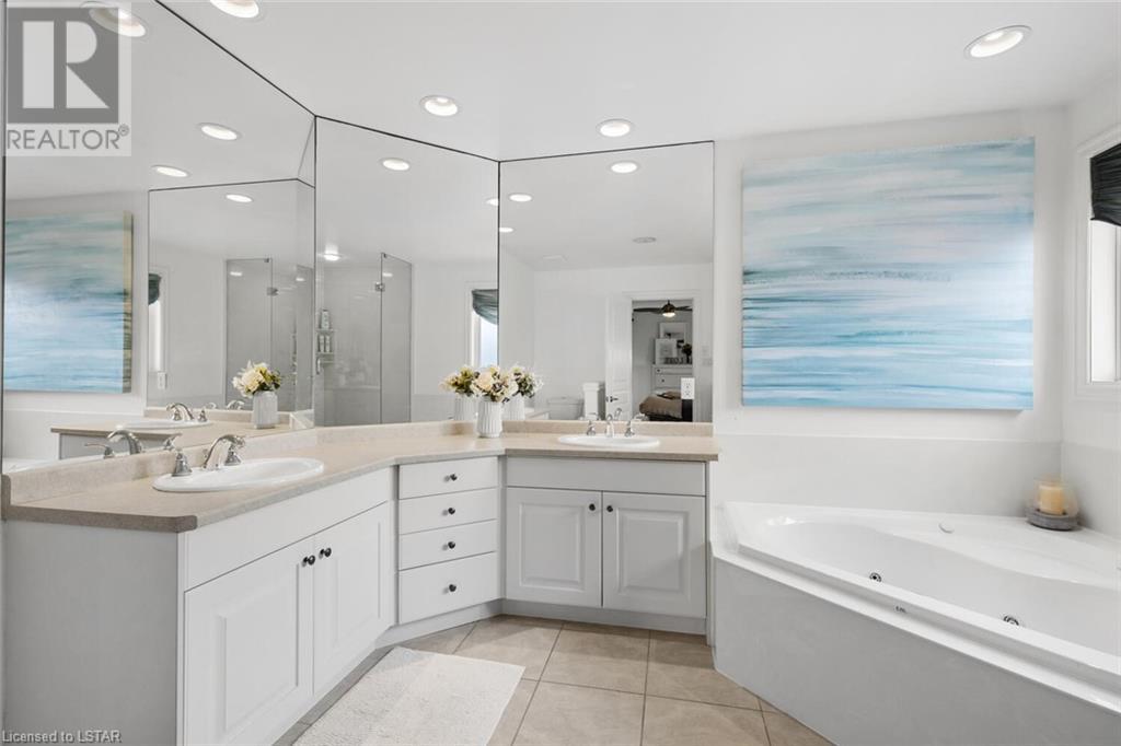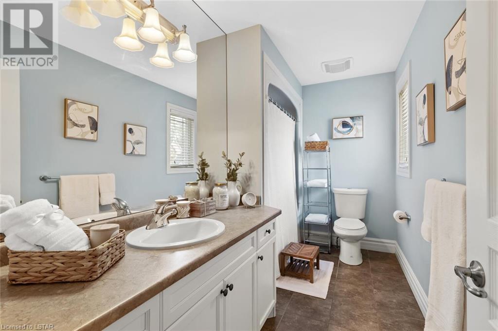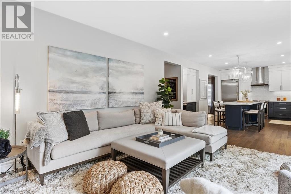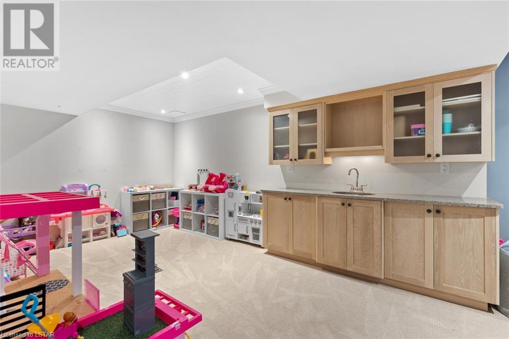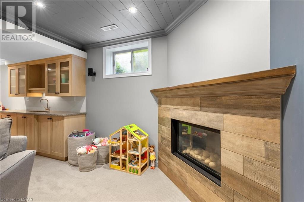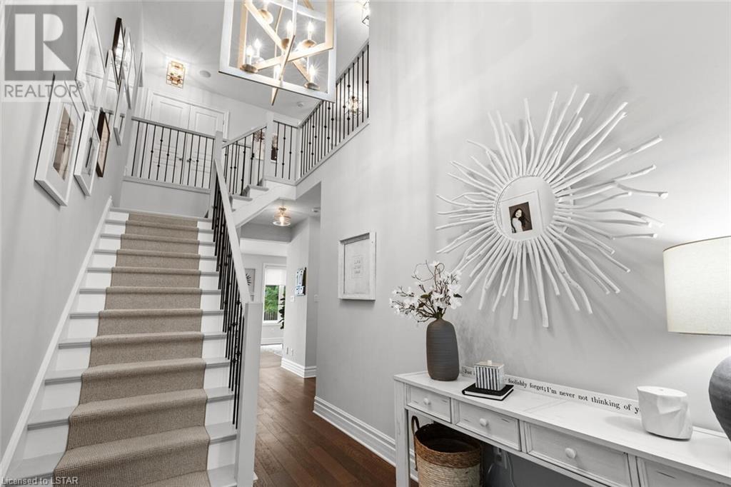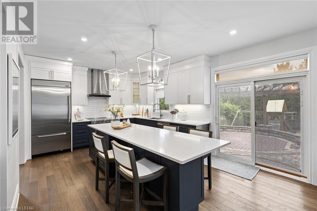 Beautifully updated home in desirable Warbler Woods. Enter through the front door into the spacious main level with hardwood flooring throughout featuring double height foyer; den/formal living room with vaulted ceilings; dining room with wainscoting; expertly designed custom kitchen with quartz countertops, wine fridge, open shelving, glass display cabinetry, generous island with breakfast bar and direct sliding door access to the backyard; Spacious open concept great room with cozy gas fireplace surrounded by custom built in shelving; mud room/laundry room with built in cabinetry and bench with cubbies; and convenient main floor two piece bathroom. The sprawling upper level boasts updated main bathroom and 4 generous bedrooms including primary suite with custom accent wall, walk in closet and generous 5-piece ensuite with double sinks, soaker tub and shower with glass surround. The fully finished lower level is perfect for family movie night or guests with gas fireplace, bar, 3-piece bathroom and bedroom. The landscaped rear garden has large interlock patio with pergola, hot tub, and plenty of grassy yard for the dog. Steps to new West Five featuring shopping, dining and more! Close to parks, trails and playground! (id:22211)