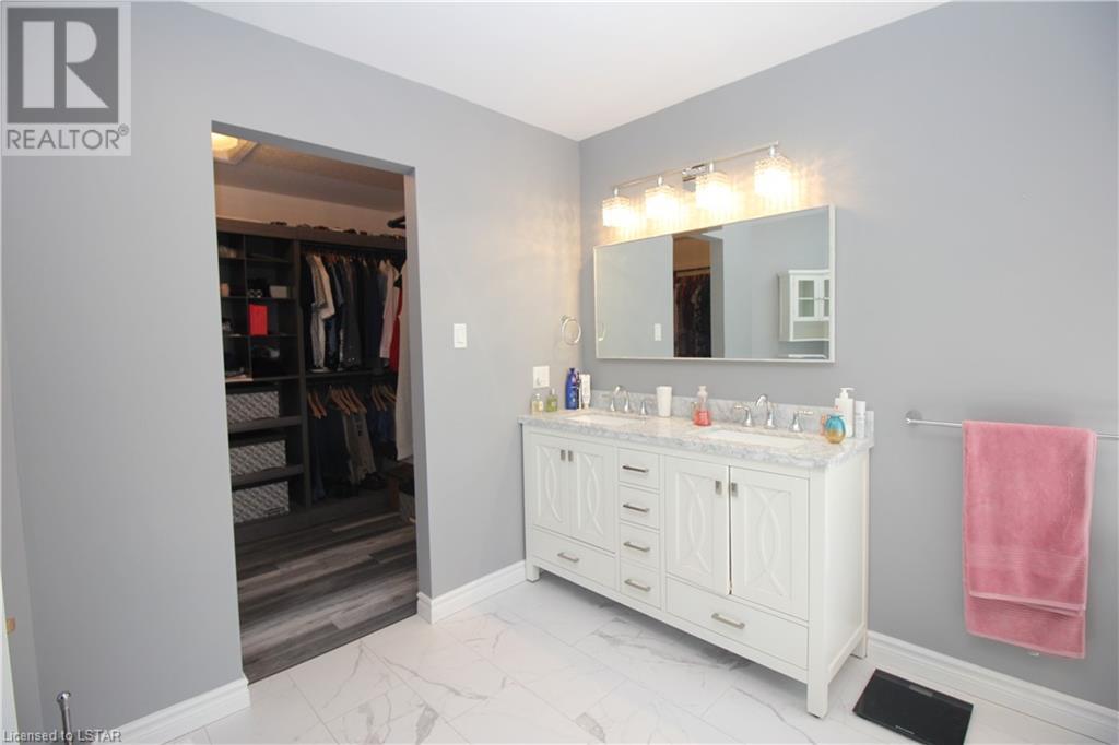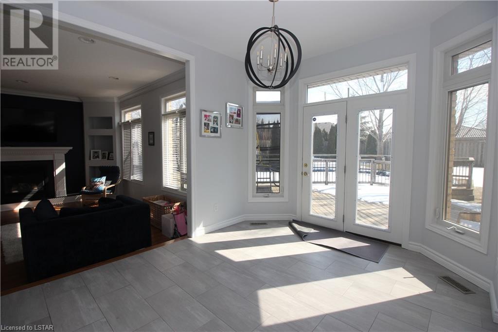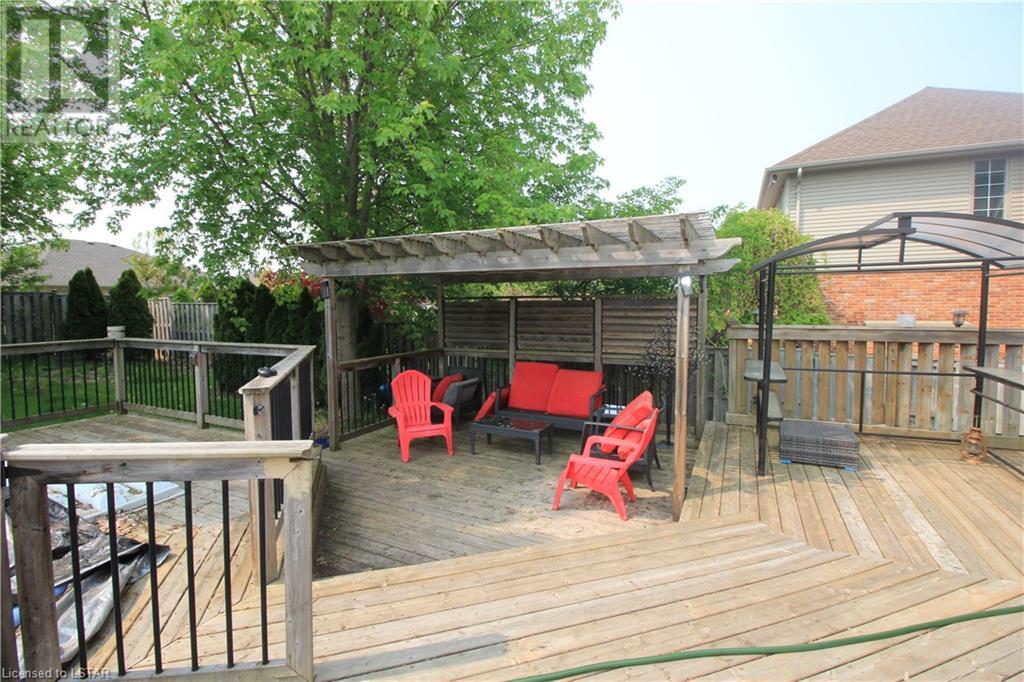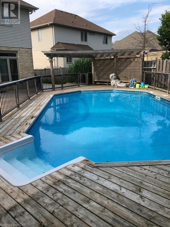 Welcome home! Gorgeous 4+1 bedroom, 3.5 bathroom executive home located on quiet Sunningdale area cul-de-sac! Beautifully landscaped, this south-facing property features a very private backyard with a heated saltwater pool, vast wood-clad decking, patios, kids' tree house, and pergolas-- perfect for a quiet retreat, entertaining, and summer fun! Step inside where gleaming hardwoods and vaulted ceiling await. Work in the main floor office complete with built-in shelving and hardwoods. Unwind in the front living room and feast in the spacious dining room, bathed in soft sunlight from large gracious windows. Upgrades include the spacious kitchen, laundry/mud room, carpets, and master bathroom. The gourmet chef's kitchen features crisp white cabinetry, quartz countertops, centre island with seating, and eat-in dining. Relax in your spacious sunken family room with gas fireplace, flanked built-in shelving, and views overlooking the lush backyard. 4 bedrooms beckon from the second floor: 3 roomy bedrooms (1 with vaulted ceiling) and the master suite, all with plush new carpet. The master bedroom features a beautiful 5 pc spa-like ensuite bathroom and large walk-in closet. Walk downstairs to the fully finished lower level which includes a huge bedroom with walk-in closet, 3 pc bathroom, open concept rec room/games room, and several auxiliary rooms for storage. Facilities include 2 car garage with storage, tankless water heater (id:22211)