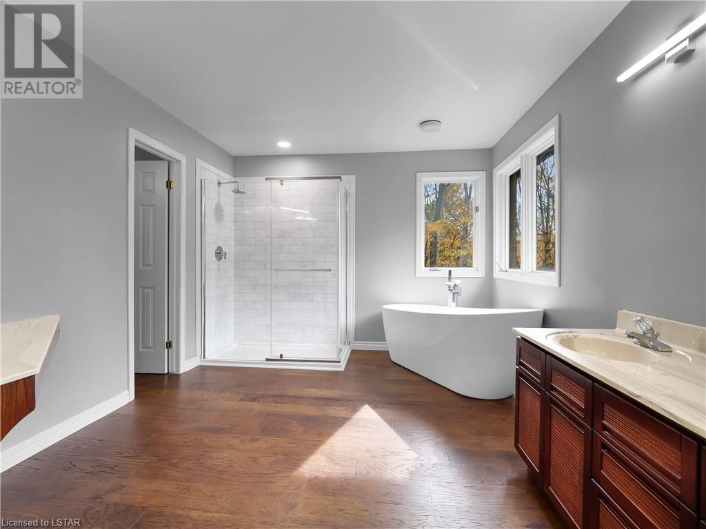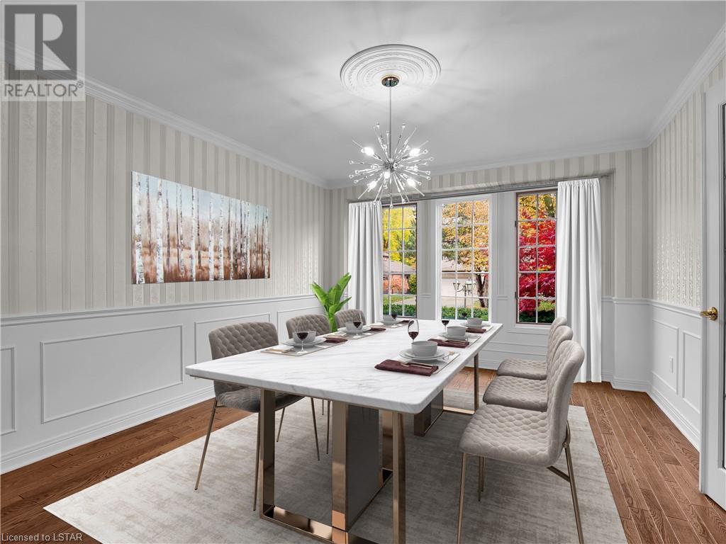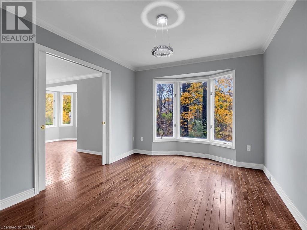 Opportunities like this do not come along that often. So don't miss this one! Ideally located in the premium and mature area of Masonville in North London. With some of the best of London's schools at all levels, public, secondary and Western University, University Hospital and a short drive to downtown London offers the perfect blend of value in an area that can’t be beat. Easy access to Masonville mall, shopping, amenities, and steps to trails is an added bonus. Step into over 3700 square feet of living space above ground with a welcoming entrance way and curved staircase, you know you will have arrived home! The main floor has a powder room, laundry and mudroom area conveniently located by the two car garage. A huge eat in family kitchen ideal for entertaining along with a separate dining room, a formal living room, an office and a family room. Upstairs there are updated hardwood floors and 4 exceptionally large bedrooms and 2 four piece bathrooms and even a den could be a TV room, study or library. There is no shortage of space for guests and/or a growing family. The sun-filled primary bedroom has over 450 square feet and an area large enough for a reading and relaxing area complete with an massive ensuite. The basement is ready with a roughed in bathroom and can easily be developed to wherever your imagination may take you! Most of the rooms have been freshly painted and has new light fixtures. The private backyard backs onto a wooded area, with an unground pool, new deck and 2 patio areas. There is also an easy access point to Helen Mott Shaw park complete with a children’s playground. You can feel the value this custom built Crown home offers and it’s ready for new owners! Do not delay booking your private showing today! You can feel the value this custom built Crown home offers and it’s ready for new owners! Do not delay booking your private showing today! (id:22211)