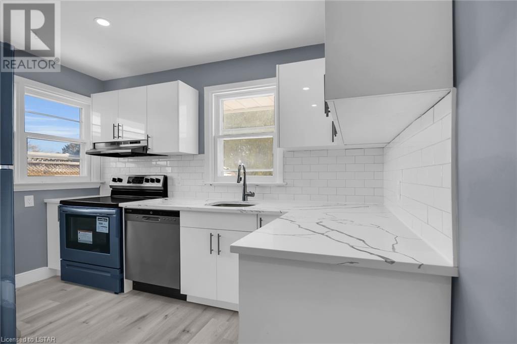 Investors, this is an incredible opportunity you won't want to miss. Presenting a stunningly renovated brick bungalow with an in-law suite in the highly sought-after East London neighborhood that is currently generating a monthly income of $3850.00 inclusive. The main floor features three bright and spacious bedrooms, a modern, upgraded kitchen with sleek appliances, a stylish four-piece bathroom, and a comfortable living and dining area. Downstairs, you'll find a generously sized family room, a brand-new kitchen with state-of-the-art appliances, a roomy den, a convenient three-piece bathroom, and two cozy bedrooms. The added bonus of laundry facilities on both floors makes this property an investor's dream. Step into the fully enclosed and charming backyard, providing the perfect backdrop for gatherings and entertainment. Beyond the property's superb interior, you'll discover its prime location, just a short distance from Fanshawe College, Argyle Mall, Highway 401, a variety of restaurants, parks, schools, entertainment options, and shopping. With its distinctive character and excellent visibility in a rapidly growing community, this property is poised to be a rewarding addition to your investment portfolio. Act quickly; this opportunity won't be available for long! (id:22211)