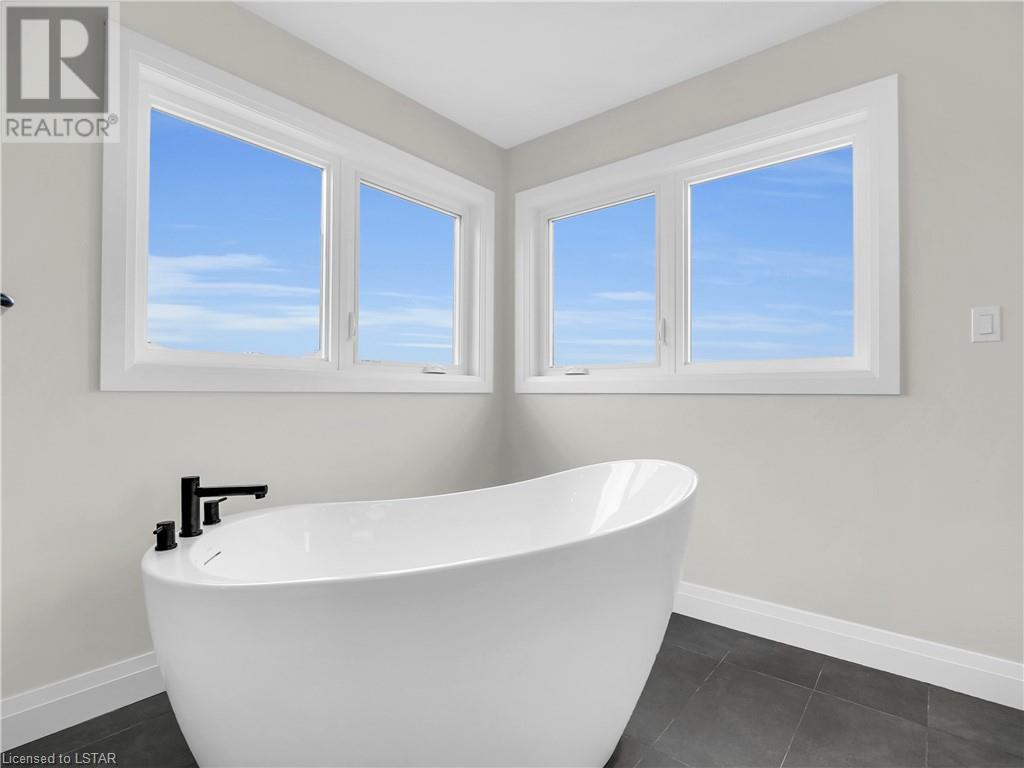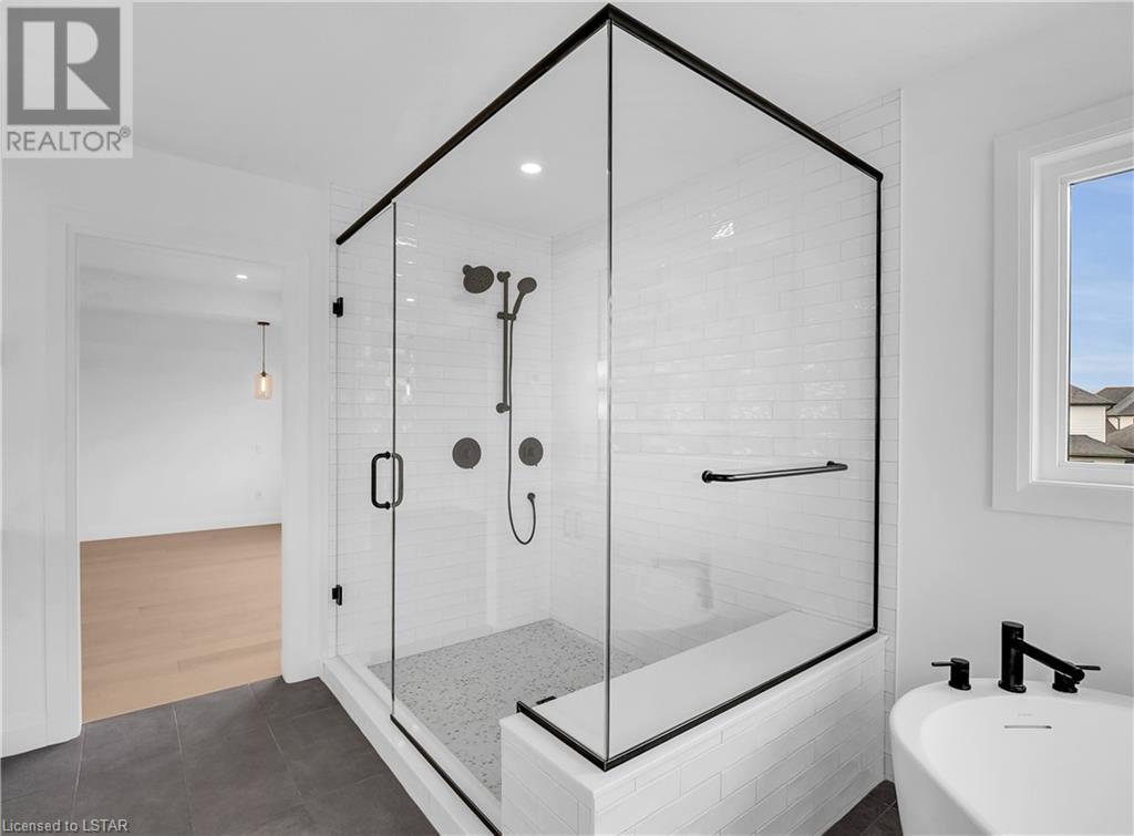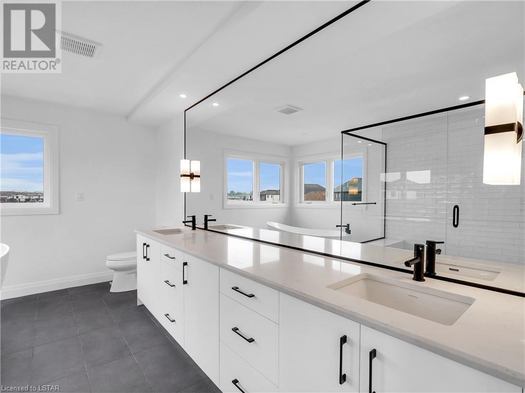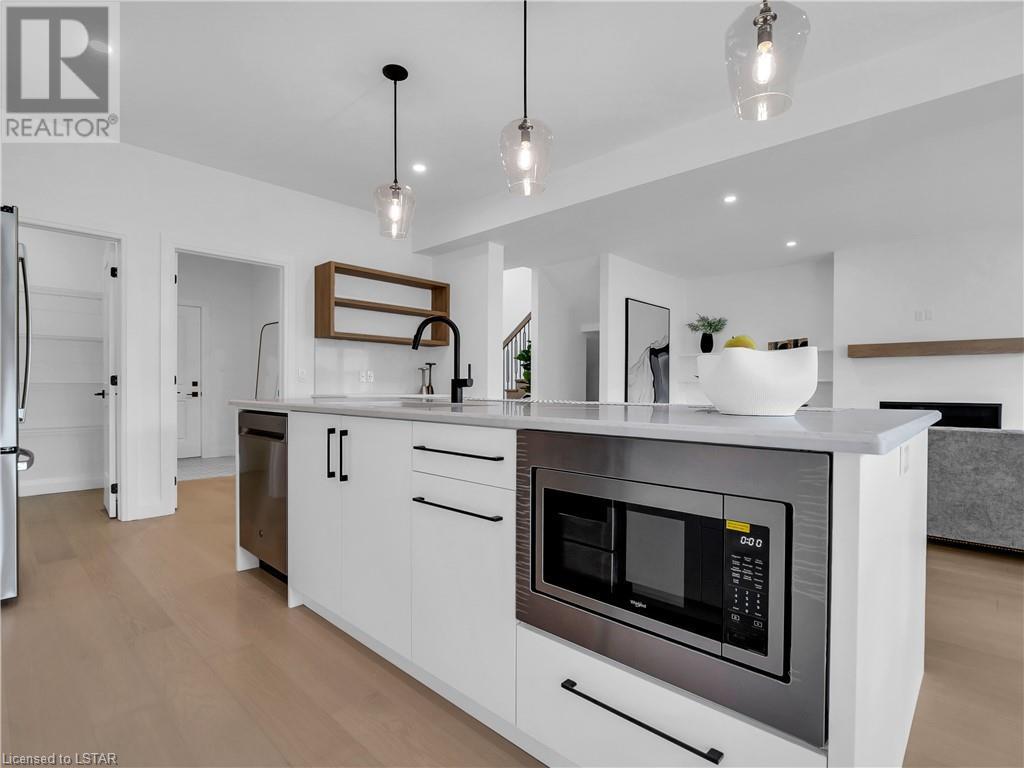 Massive pool size yard! Exquisite new model home! This stunning residence spans an impressive 2431 sq ft, boasting an array of desirable features. Verdi Avenue Developments, known for their commitment to excellence, has crafted this home to surpass the standards set by other builders. Step onto the wonderful covered front porch, leading you into the two-storey foyer. The attention to detail is evident throughout, with upgraded light fixtures adorning each space, creating an atmosphere of refined luxury. Prepare to be impressed by the magazine-worthy custom kitchen, complete with a massive centre island, valance lighting, soft-close doors and drawers & a spacious eating area perfect for family gatherings. The kitchen also features four stainless steel appliances, ensuring a seamless culinary experience. The impeccable design continues with quartz countertops & quartz backsplash, adding both elegance & practicality to the space. Oversized windows fill the great room with an abundance of natural light, highlighting the custom shelves & elongated fireplace with an exquisite mantle. The powder room offers a modern touch with a floating vanity, while the AMAZING mudroom, accessible from the garage, boasts a huge walk-in closet. Take note of the numerous WiFi light switches and strategically placed pot lights throughout, enhancing the home's ambiance. The bedrooms have been thoughtfully designed with USB plugs and a rough-in for wall-mounted TVs. The primary suite is a luxurious retreat, featuring heated floors, double shower heads & an upgraded tub faucet—an oasis of relaxation. The upper-level laundry room exudes style and functionality, with quartz countertops, an under-mount sink & a floor drain for added convenience. The basement of this remarkable home has been poured lower, providing an exceptionally high ceiling height and large basement windows, allowing for ample natural light. Additionally, this property has one of the deepest lots in the area. (id:22211)