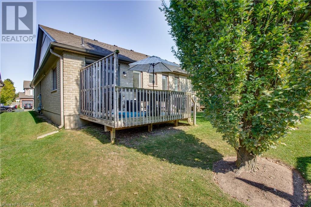 Welcome to 1672 Bayswater Cres, nestled in the tranquil Hyde Park neighbourhood in London's northwest corner located near parks, schools, shopping and and many other amenities. Pride of ownership is evident with this recently updated end unit that includes gas furnace with central air (2021), main floor broadloom (2021), main floor repainted throughout (2021), stainless steel range hood (2022), California shutters throughout main floor (2022). The main floor offers a bright Livingroom with a cozy gas fireplace, dining area with doors leading to the elevated wood deck. The kitchen features a breakfast bar, large pantry offering ample storage space and 4 appliances. The open concept boasts oversized windows with California blinds, creating a bright and inviting atmosphere. The main floor primary suite features a large walk-in closet and a 3-piece en-suite bathroom. The main floor also includes a bedroom and a 4-piece bathroom, a convenient main floor laundry area in the mud room off the 2 car garage. The finished lower level offers additional living space with a spacious recreational room, providing a versatile area for relaxation. There is an expansive bedroom and a 3 piece bathroom, as well as a ample space. This very desirable condo is the perfect fit for anyone looking to enjoy the benefits of one-floor living in a desirable location. (id:22211)