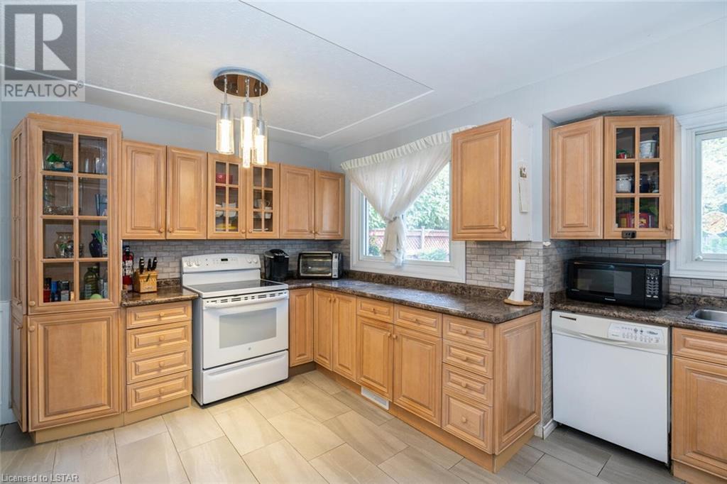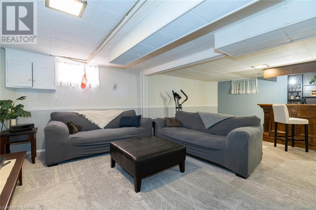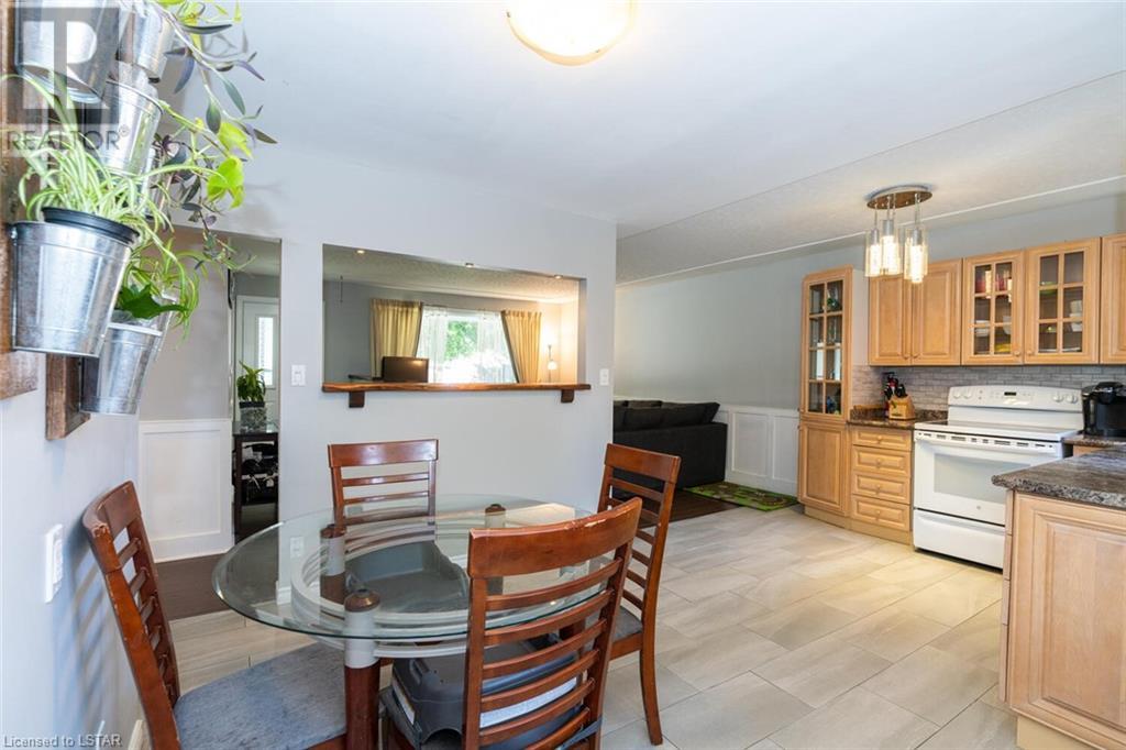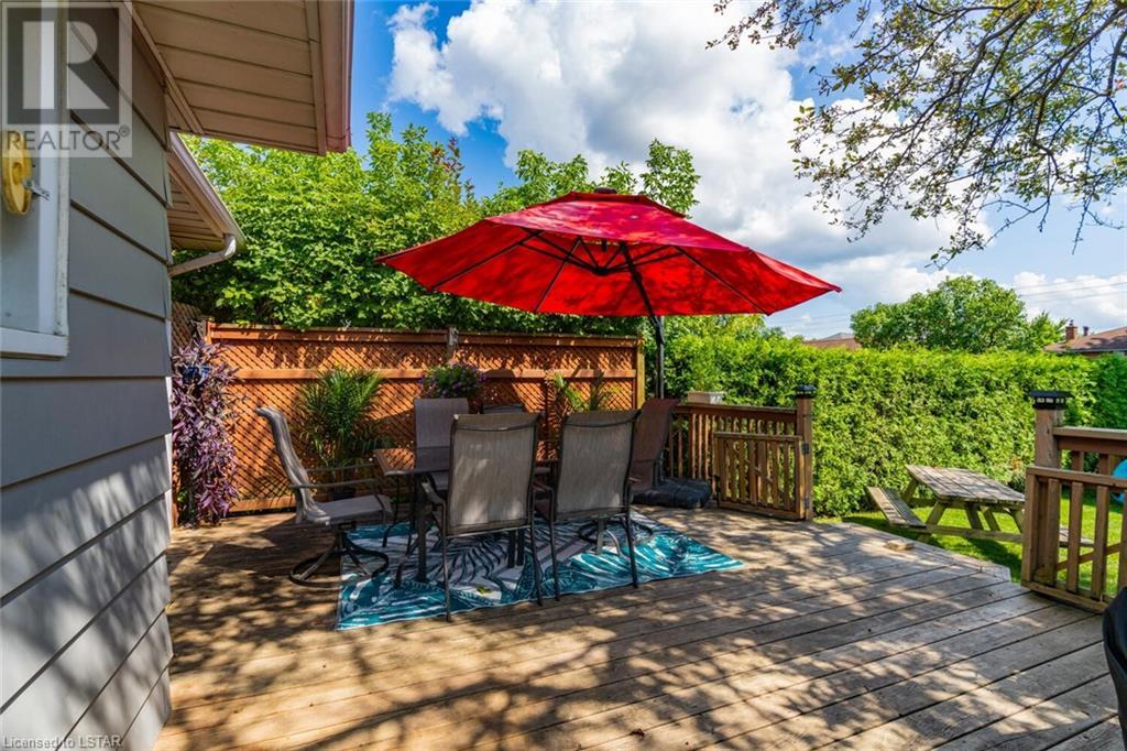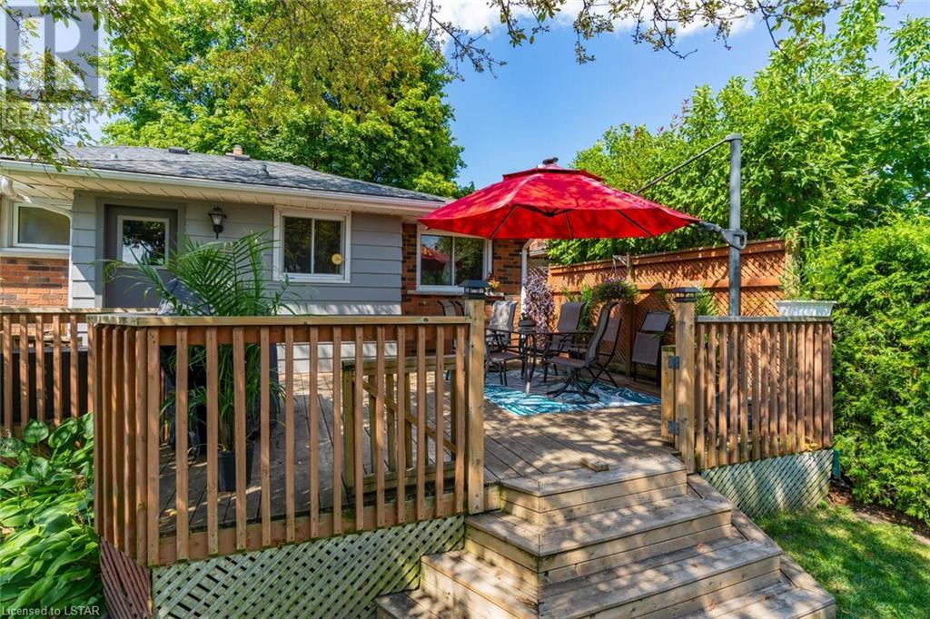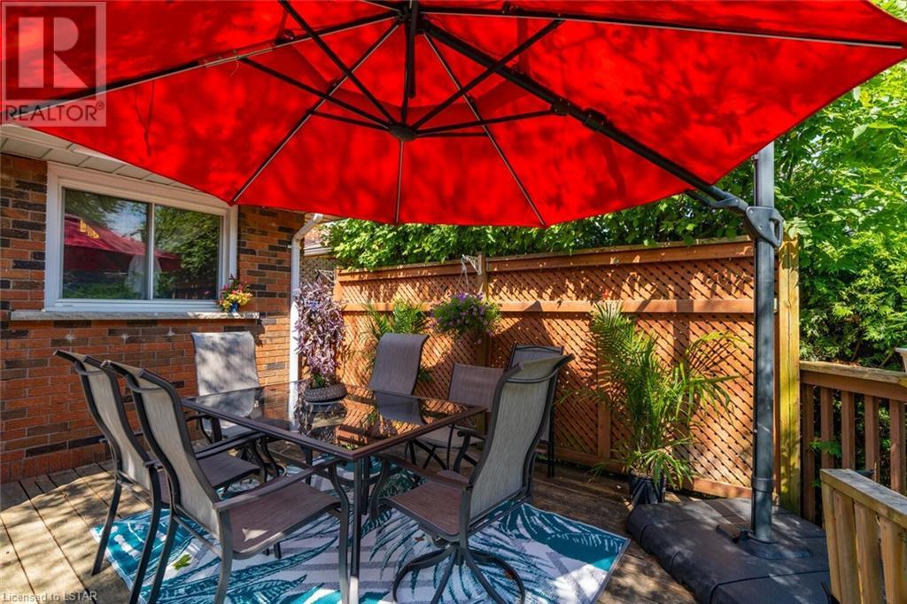 Located on one of the nicest and quietest streets in East London, feast your eyes on this charming all brick raised ranch home on this beautifully manicured lot featuring mature maple trees. As you approach the house, you’ll be drawn in immediately by the cozy front porch. Entering the main floor, you’re greeted by a large living and dining room, followed by a great eat-in kitchen and 4-piece bathroom, three very inviting bedrooms with vinyl clad windows bringing in lots of light, all upgraded and finished tastefully. On the lower level you’ll find the 4th bedroom, a large recreation room with bar area, a laundry room, and a large workshop. Note that the entire basement has been spray foam insulated for maximum dryness and high efficiency in hydro use. An oversized single car garage offering extra storage space sits on a great 4-car capacity driveway. The backyard is a virtual private oasis, professionally landscaped, mature trees, and a large deck ideal for lounging or entertaining. Access to this deck is both from the kitchen and from the basement. This home is situated in the ideal family location as the area has literally everything you desire by way of shopping, schools, and entertainment. (id:22211)