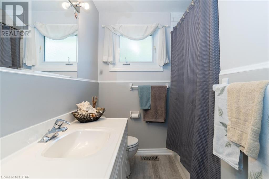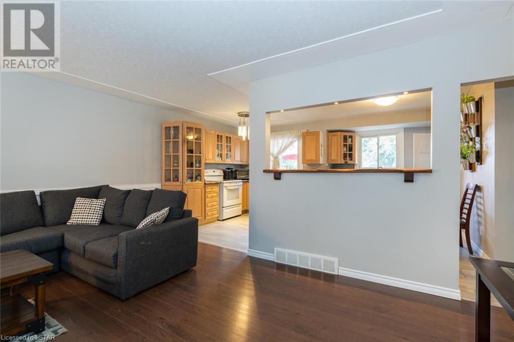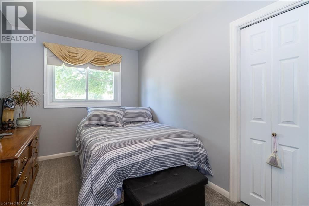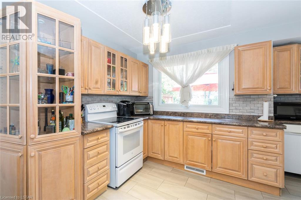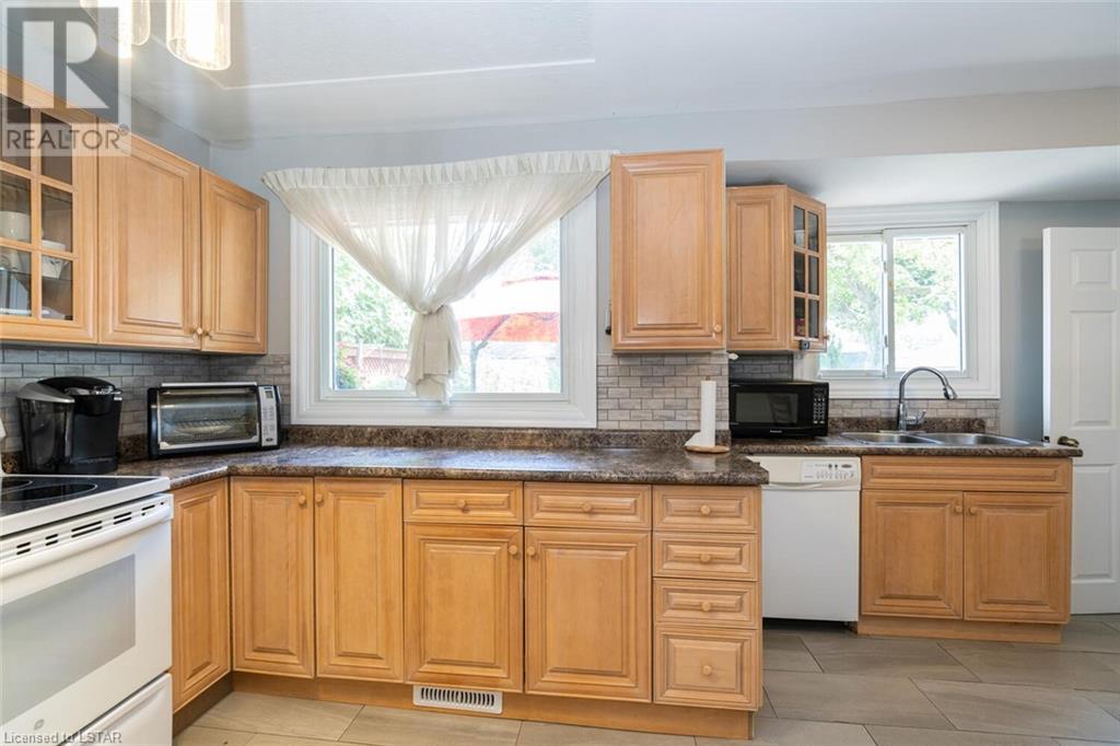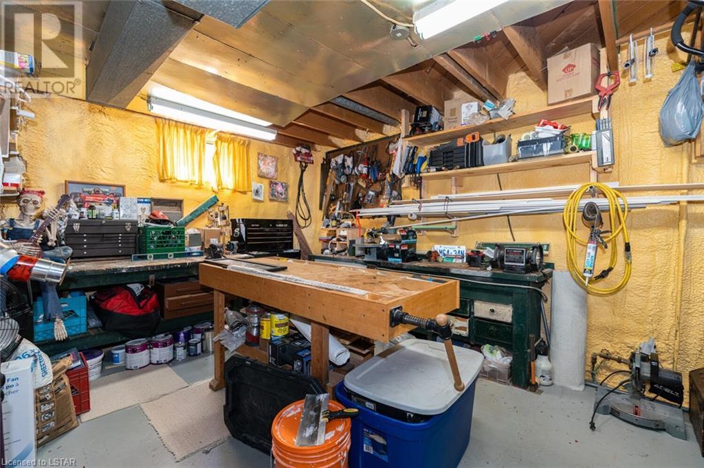 Located on one of the nicest and quietest streets in East London, feast your eyes on this charming all brick raised ranch home on this beautifully manicured lot featuring mature maple trees. As you approach the house, you’ll be drawn in immediately by the cozy front porch. Entering the main floor, you’re greeted by a large living and dining room, followed by a great eat-in kitchen and 4-piece bathroom, three very inviting bedrooms with vinyl clad windows bringing in lots of light, all upgraded and finished tastefully. On the lower level you’ll find the 4th bedroom, a large recreation room with bar area, a laundry room, and a large workshop. Note that the entire basement has been spray foam insulated for maximum dryness and high efficiency in hydro use. An oversized single car garage offering extra storage space sits on a great 4-car capacity driveway. The backyard is a virtual private oasis, professionally landscaped, mature trees, and a large deck ideal for lounging or entertaining. Access to this deck is both from the kitchen and from the basement. This home is situated in the ideal family location as the area has literally everything you desire by way of shopping, schools, and entertainment. (id:22211)