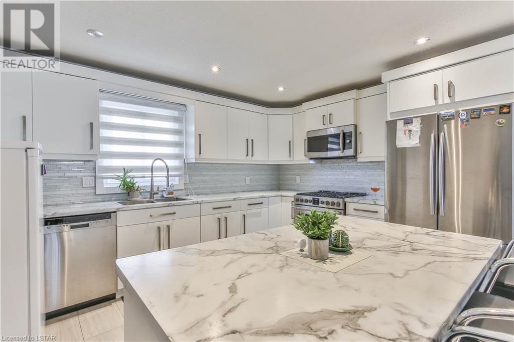 Welcome to this tastefully updated and well maintained rental unit on the main floor and upper level of this backsplit home (basement has seperate/private rental suite that is currently tenanted). This unit features an open concept kitchen, dining and living area and private insuite laundry and storage area. The upper level includes 3 good sized bedrooms and updated bathroom. 2 driveway parking spaces and a shared backyard in a quiet and family oriented neighbourhood. Close to shopping and lots of amenities that London has to offer, this home checks off all the boxes. Monthly utility fees are paid with an additional flat rate fee of $200/month. (id:22211)