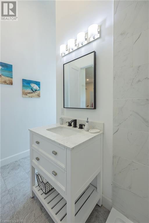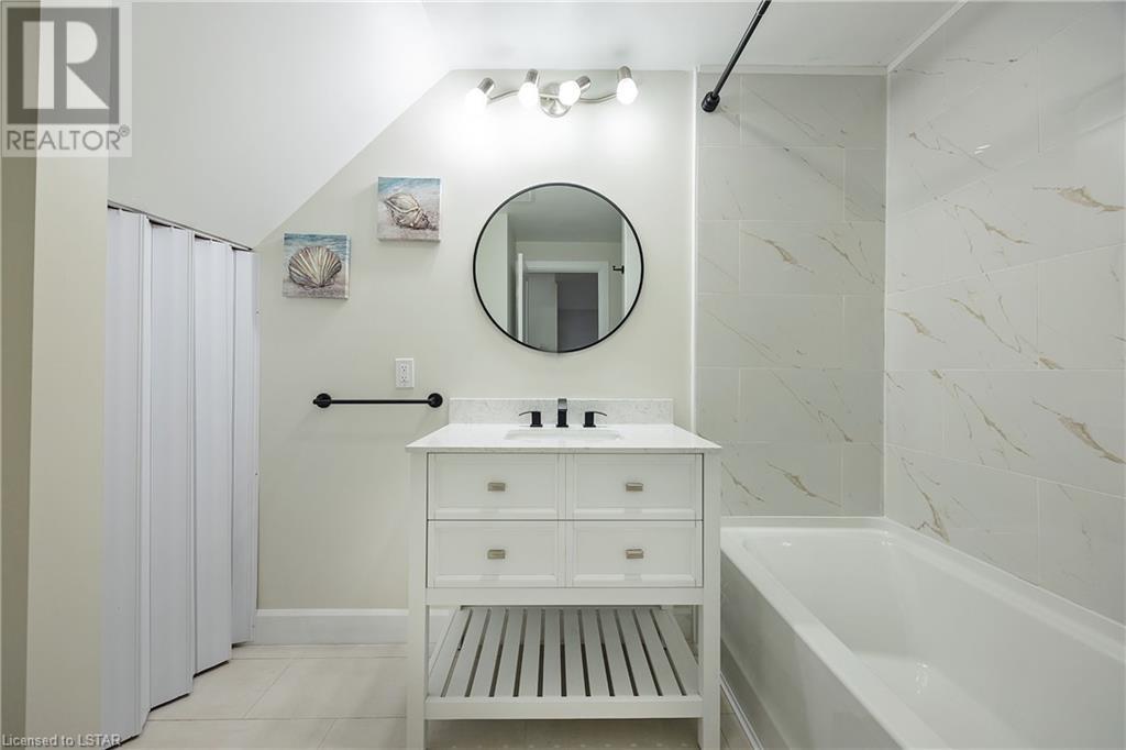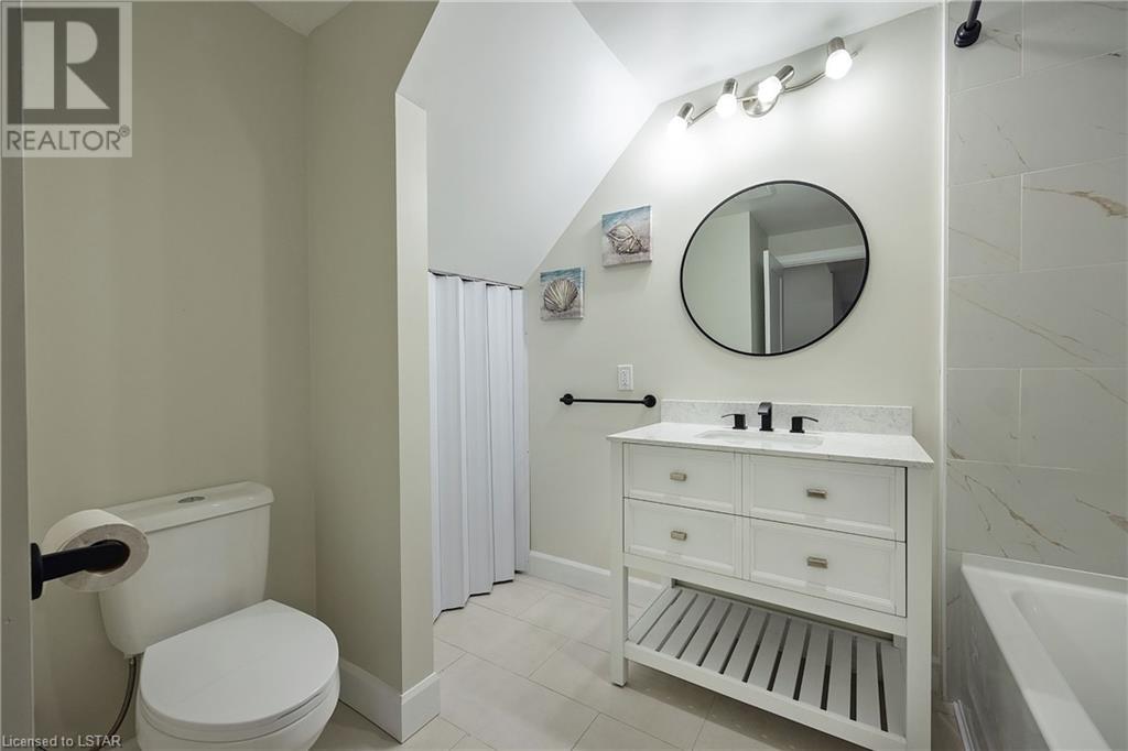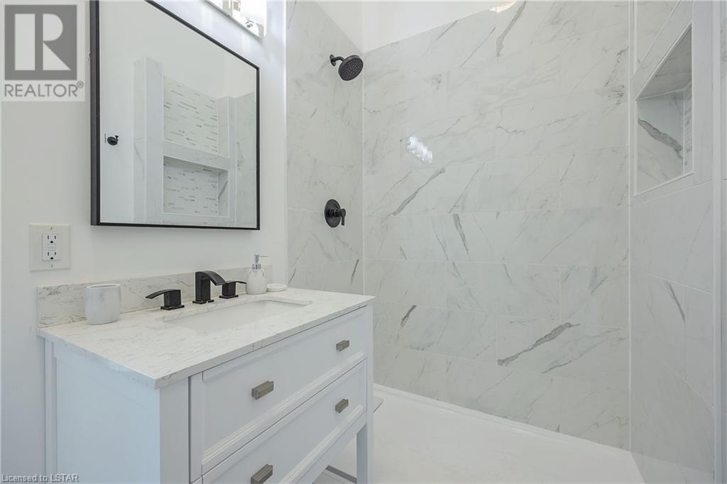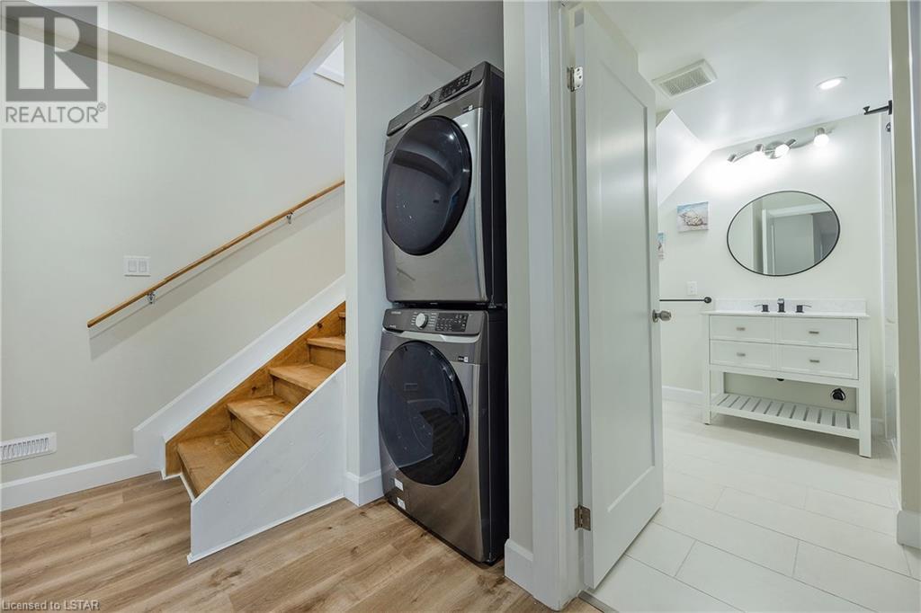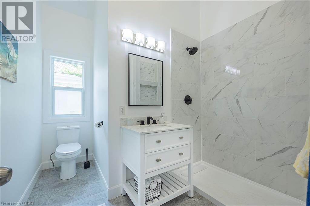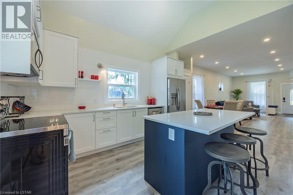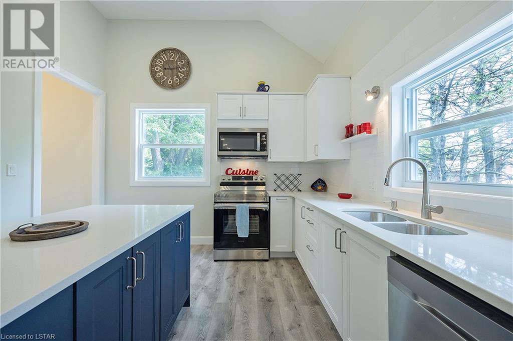 Welcome to a completely remodeled and renovated bungalow on small street in The Cove. Walking distance to Wortley Village and downtown London. This house is on the bus route and close to parks, trails, shops and restaurant. House professionally renovated with all city permits and has 1913.76 square foot living space. Main floor has 2 bedrooms, one bathroom, open concept dining, living room and kitchen with high ceiling from 10'-14'. Lower level also has high ceiling of 9', separate entrance so could be in law suite. This level has 2 more bedrooms, bathroom, laundry, living room and space where there could be another kitchen with connections. Lower level has big windows (40 inches). Outside walls are insulated with 2 inches of insulation and attic insulation is R-60. House has new furnace, central air, Life Breath and all appliances. Back part of the fence will be finished before closing. (id:22211)