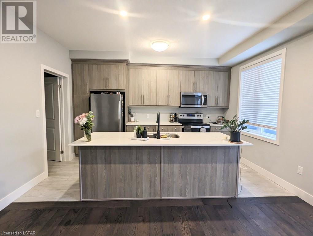 Spacious and modern townhouse in growing North East London. This is not only an end unit, but also features a coveted 2 car garage as well as low condo fees. The home is under 3 years old with very little maintenance needed! Inside, the neutral colouring appeals to all styles and you'll love the terrific floor plan. The main living area is open concept, with joined kitchen, dining room and living room, perfect for socializing. Prep and cook while still talking with family and friends, utilize your convenient walk-in pantry for all your storage needs, and entertain on the walkout large balcony right from the dining room. Truly a highly usable space! Upstairs, there are 3 great size rooms, and the primary bedroom has a walk-in closet and ensuite. Close to parks, shopping, restaurants, beautiful green space and walking trails. Also a short drive to Fanshawe College, Fanshawe Conservation area, London Regional Airport, and easy access to 401. (id:22211)
