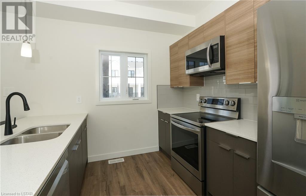 Modern finished townhome located at the Gates of Hyde Park. Walking to the Smart Centers mega shopping district. Short drive or direct bus to Western University and Masonville Mall. This bright south facing townhome features 4 spacious bedrooms and 3.5 bathrooms in total. Main floor offers the capability of an In law suite or a home office boasting a bedroom & a full 3-piece bathroom. 2nd floor offers kitchen with large island and eating counter area, glass railing balcony. 3rd floor features a primary bedroom with ensuite bathroom and 2 more bedrooms. Double garage and double driveway. Fantastic location for families or investors. (id:22211)