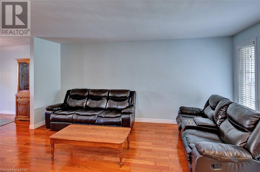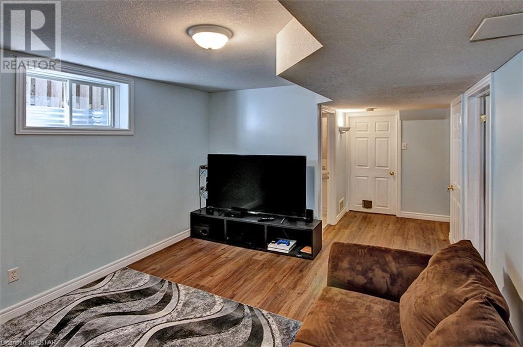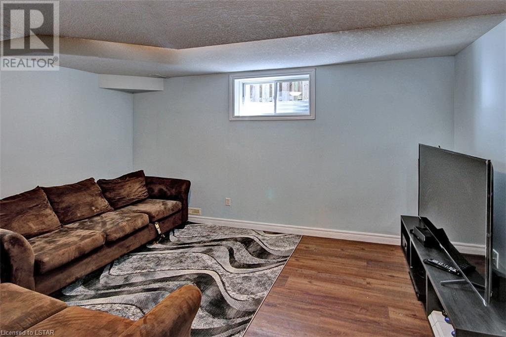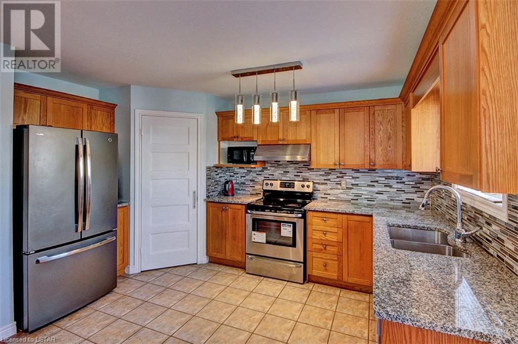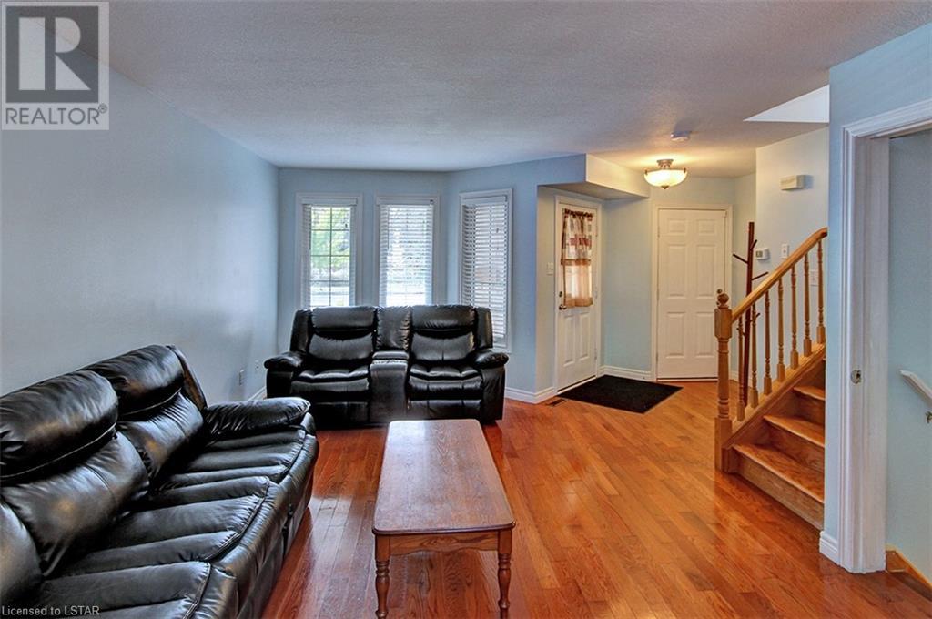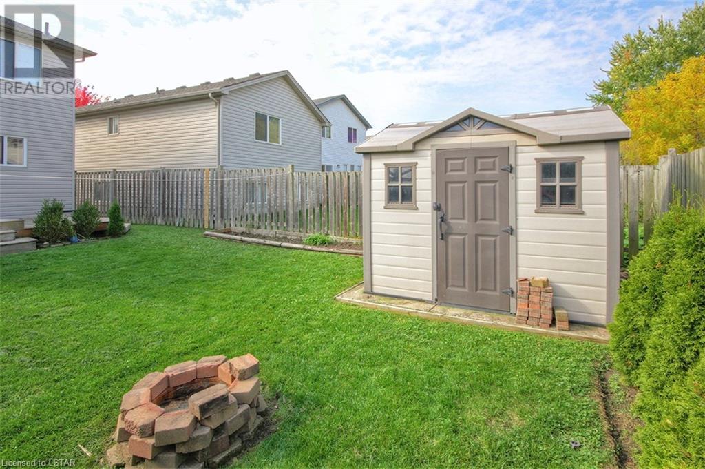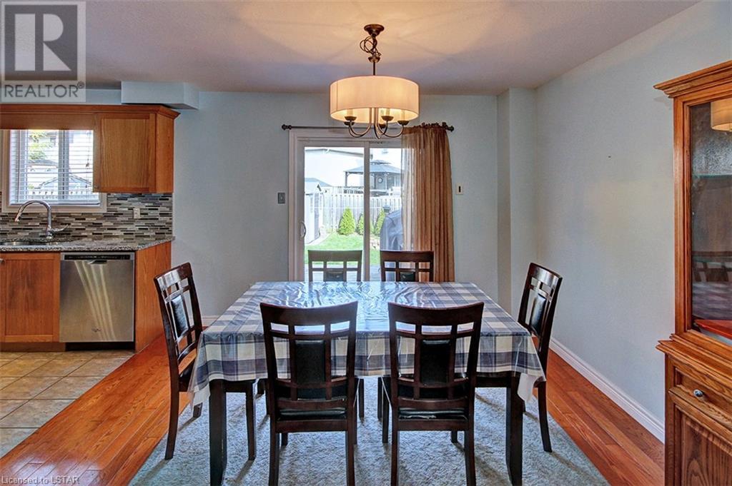 This stunning two-story home is situated in an appealing East end location which is close proximity to 401 access and amenities. Inside, the main level features an open concept design with gorgeous hardwood flooring throughout. The living room and dining room provides blinds and patio doors that lead to the deck creating a seamless indoor-outdoor flow. A French door leads to the lower level, adding a stylish element to the home. The kitchen is designed for convenience, with stainless steel appliances, granite countertops, a contemporary backsplash, and a well-placed corner pantry that maximizes storage space. The wooden stairs lead you to the upper level, where the primary bedroom boasts a spacious walk-in closet. Additionally, there are spacious closets throughout the home, offering ample storage solutions. The lower level is finished with large windows that allow natural light to flood the space. Recently completed, the lower level includes a 3-piece bathroom, adding functionality and value to the home. The attractive fenced-in backyard, two-tiered deck, and storage shed enhance the outdoors. (id:22211)