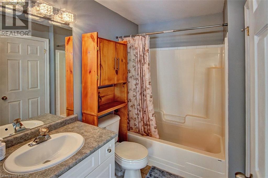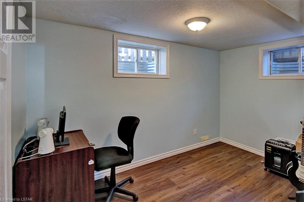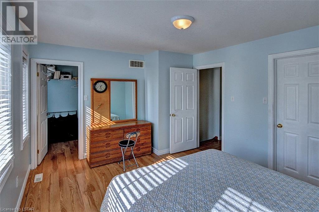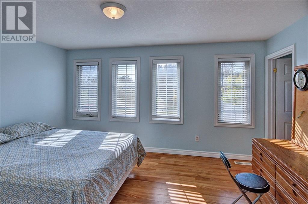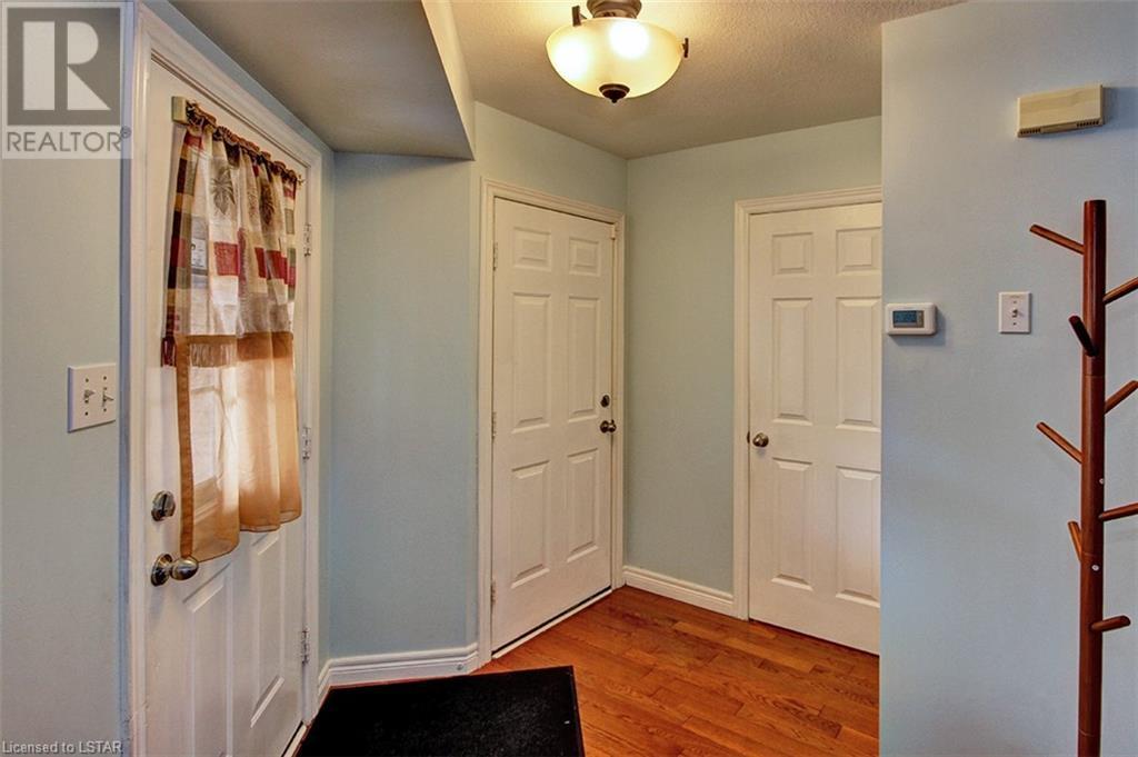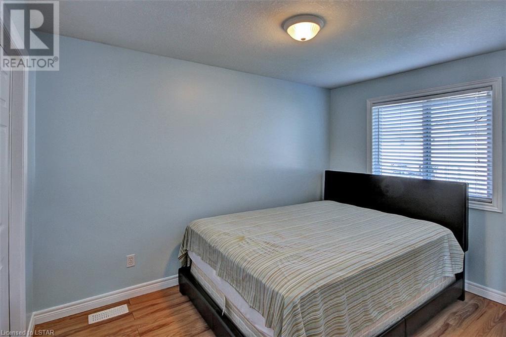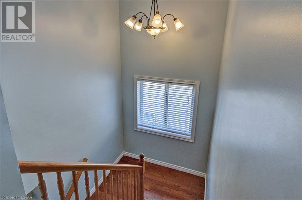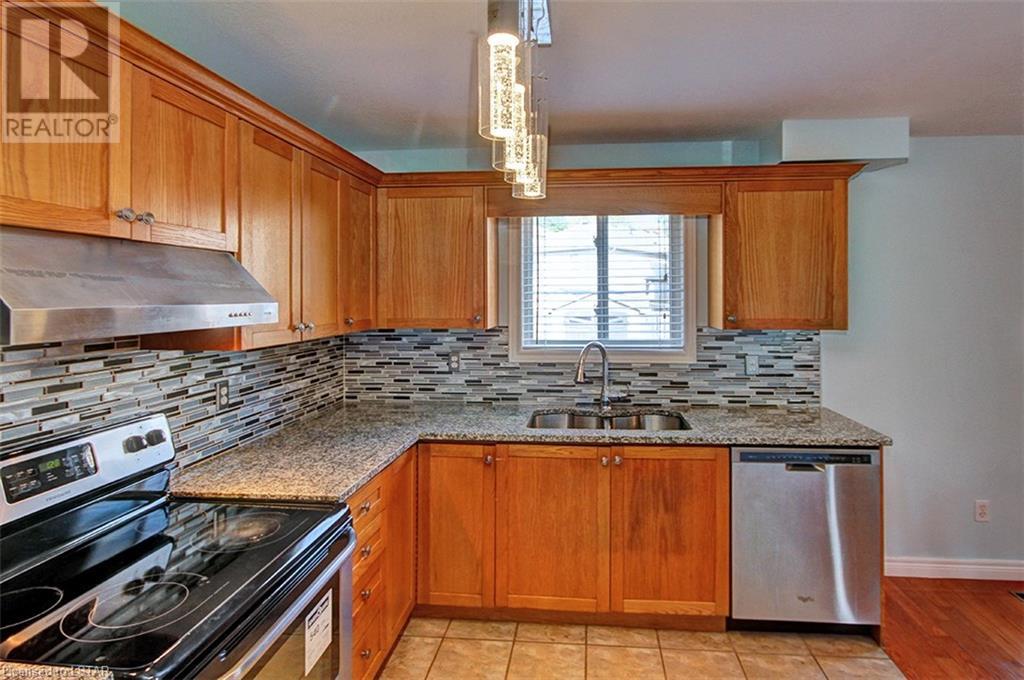 This stunning two-story home is situated in an appealing East end location which is close proximity to 401 access and amenities. Inside, the main level features an open concept design with gorgeous hardwood flooring throughout. The living room and dining room provides blinds and patio doors that lead to the deck creating a seamless indoor-outdoor flow. A French door leads to the lower level, adding a stylish element to the home. The kitchen is designed for convenience, with stainless steel appliances, granite countertops, a contemporary backsplash, and a well-placed corner pantry that maximizes storage space. The wooden stairs lead you to the upper level, where the primary bedroom boasts a spacious walk-in closet. Additionally, there are spacious closets throughout the home, offering ample storage solutions. The lower level is finished with large windows that allow natural light to flood the space. Recently completed, the lower level includes a 3-piece bathroom, adding functionality and value to the home. The attractive fenced-in backyard, two-tiered deck, and storage shed enhance the outdoors. (id:22211)