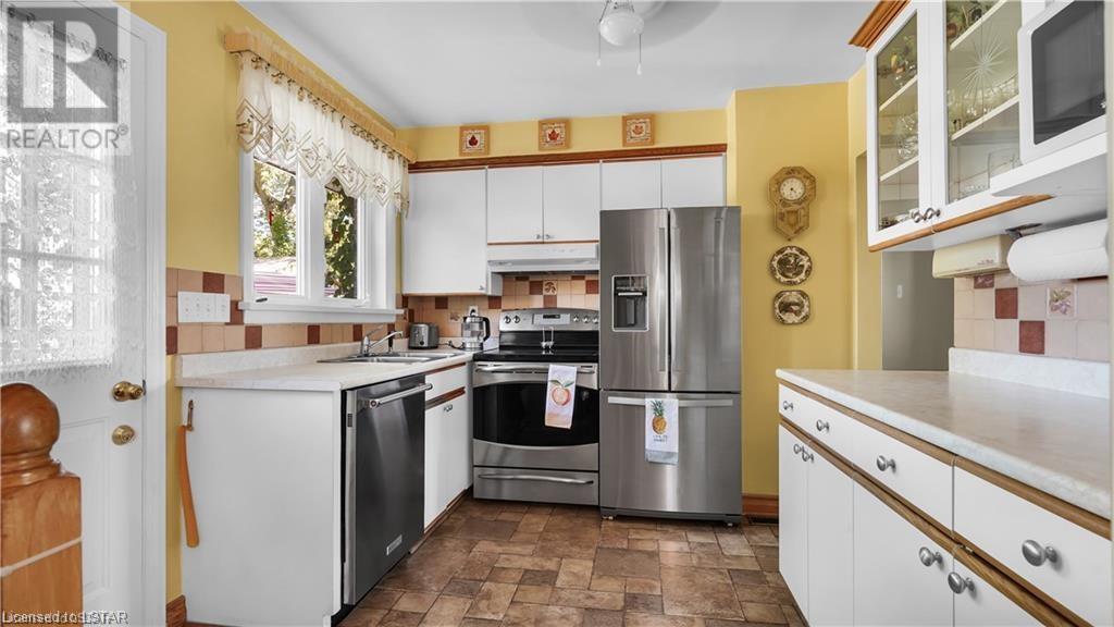 Tastefully decorated and well maintained 3 + 1 bedroom bungalow on quiet crescent with one and a half car detached garage. Finished lower level includes, 3 pc bath, bedroom and a spacious rec/games room with wood burning fireplace. Basement has been completely water-proofed with a membrane on walls and drainage done by a professional. Back flow preventer installed. 200 Amp service to house. Exterior 220 plug installed at front of house. Detached 1.5 car garage/workshop was constructed with solid wood as well as metal re-bar and mesh in the concrete foundation with a pony panel that includes a 240 plug for the hobby you've always wanted to start. 9' ceiling in garage/workshop with a water line and floor drain. Overhang on the front of the garage. Back yard sloped to the rain water drain which is hooked up to the storm sewers. Beautiful patio for quiet fall days/nights plus a deck off the kitchen with a gas hookup for BBQing. Gutter guards installed on the house. A/C replaced in 2022. Gas dryer included. Furnace is 2015 with Enerzone Hepa filter. This amazing property is ready to move in and start enjoying the peace and tranquility. Storage shed with hydro behind garage. (id:22211)