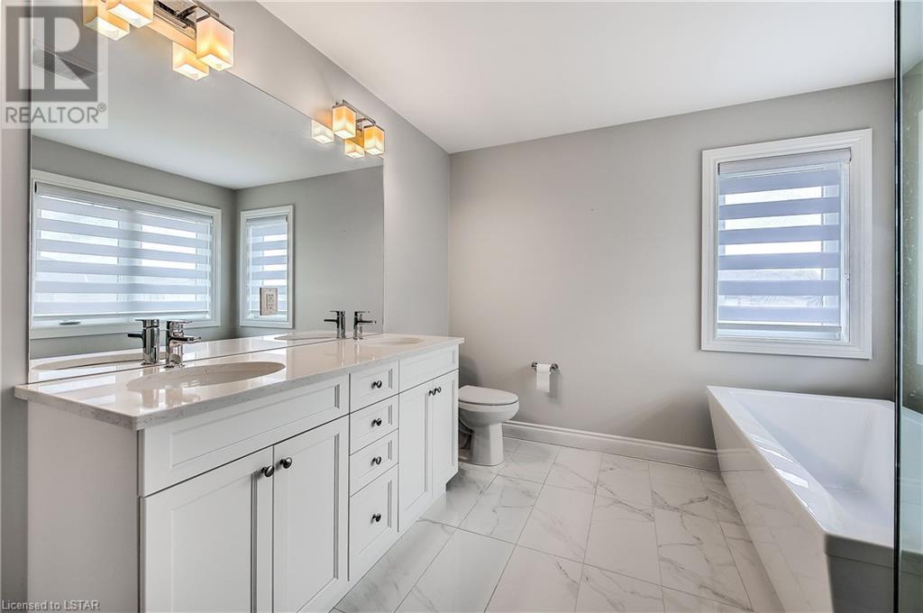 This Former Model Home Located At 1926 Jim Hebb Way Is Open To Offers At Any Time! This Gem Is Located In The Hyde Park Neighborhood, One Of North London’s Most Highly Desired Areas. The Contemporary Open Concept Two-Storey Home Features Approximate 1830 Sq.Ft 3 Beds & 2.5 Baths. The Main Floor Features A Grand Entry, 9’ Ceilings, Engineered Hardwood Floors, Large Windows & Upgraded Light Fixtures + Pot Lights. The Stunning Kitchen Comes With Upgraded Granite Counters, Subway Tile Backsplash, Double Sink, White Cabinetry & Stainless Steel Appliances. The Staircase Leads You To Your 2nd Floor Master Suite Featuring A Spacious Bedroom, A Walk-In-Closet & 5-Piece Ensuite With Oversized Glass Shower, Double Sink Vanities. 2nd Floor Also Includes 2 Additional Bedrooms, And An Additional Full 3-Piece Bathroom. The Basement Floor Has Been Fully Painted. The Oversized Lot Is Over 70ft Across The Rear And Offering A Fenced-In Backyard With A Concrete Patio. All Of The Energy Savings Systems, Tankless Hot Water Heater, Drainage Heat Recover System, HVAC Etc. Very Convenient Community, Hyde Park Shopping Mall, Walmart, Grocery Stores, Restaurants / Fast Foods, Lowes, Canadian Tire And More. Walking To Schools, Close To Clinics, Dentals, Direct Buses To Masonville Mall, Downtown, UWO, VIA Railway Station, Inter-City Bus Station. (id:22211)