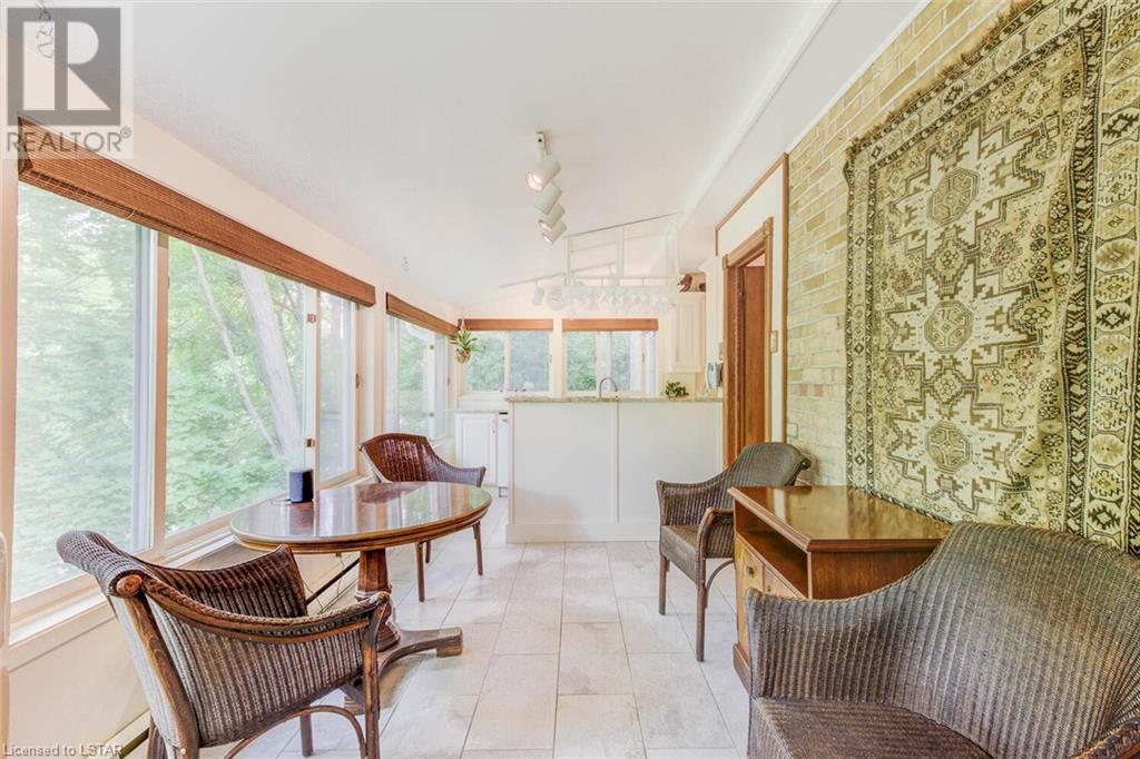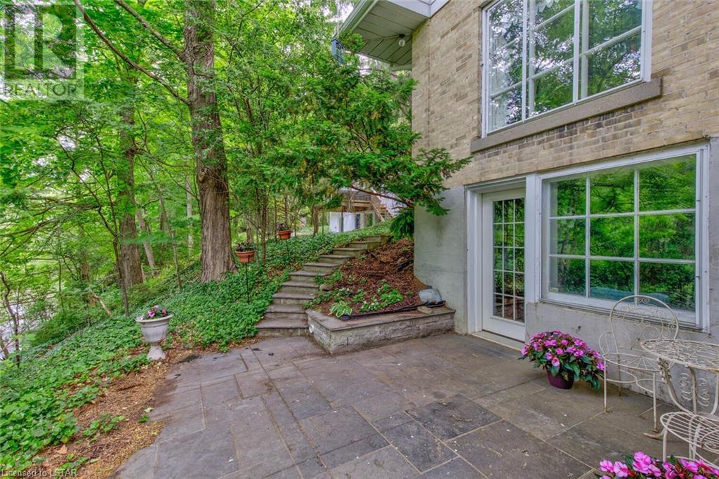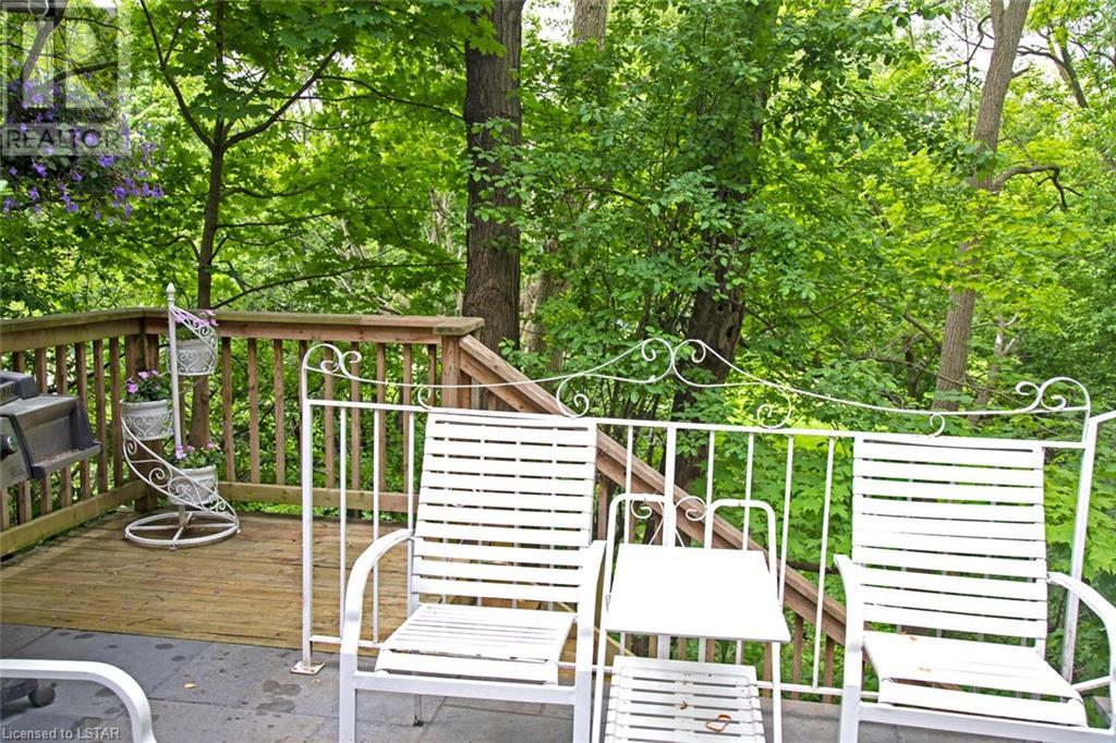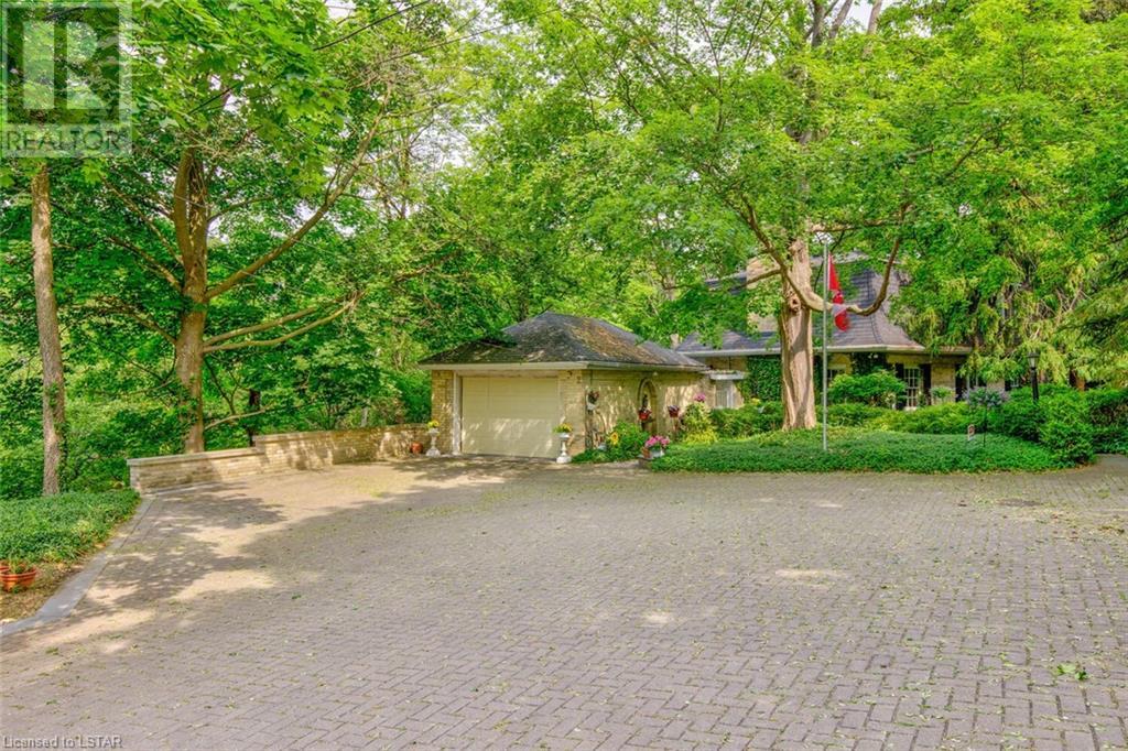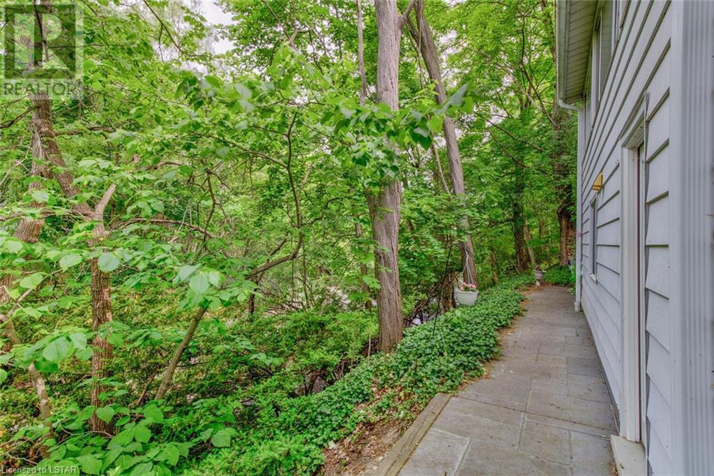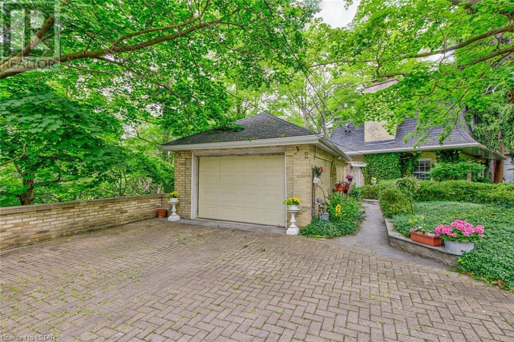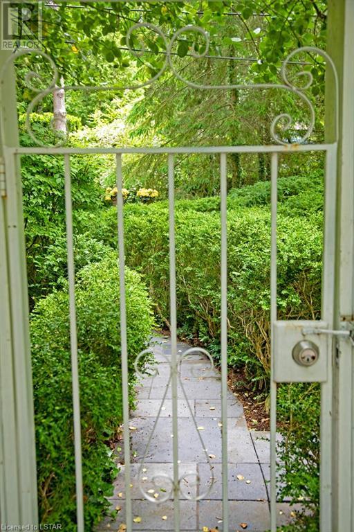 An incredible, rare opportunity to live in a park like setting in the heart of Old North London steps/walking distance from Western University, St. Joseph's Health Centre, Downtown London, walking trails & more! Unique 2 Storey home with full walkout lower level siding onto Gibbons Park, surrounded with incredible views of the woodland, its birds & wildlife, & Gibbons Creek from both the interior of home & two outdoor patio areas. Notable features include a classic centre hall plan with inviting foyer & generous principal rooms on main including a large, bright, functional living room with fireplace, a huge formal dining room for entertaining large numbers & striking combination L-shaped kitchen/eating area/sunroom with attractive off-white cabinetry, granite countertops & an array of glass & windows to welcome in both the natural light & the incredible views of the nature & landscape. 2nd Floor features an upper hall solarium, 4 piece main bath with jacuzzi tub & shower & 2 exceptional sized bedrooms, including Primary with 2 piece ensuite. Super bright walkout lower is ideal for personal use, extended family or income (could easily rent in the $1700-$1800 month or more range) with a very large living area/den with fireplace, additional bedroom, kitchenette/pantry with microwave (refrigerator, freezer in adjacent unfinished area) & striking 3 piece bath with glass & tile walk-in shower. Two exceptionally private patio areas (one off kitchen & the other off the lower level living/den room) provide a peace & serenity in the woods that totally belie an urban location in the heart of the City. Low maintenance landscaping-all ivy & periwinkle-no grass cutting. Single garage & extensive interlock drive-parking for 10+. Newer Furnace/Air & Gutter Guards on eavestroughs. Be sure to view extensive video/multi-media/matterport at: https://t-rex-photography.seehouseat.com/public/vtour/display/2091109#!/ (id:22211)