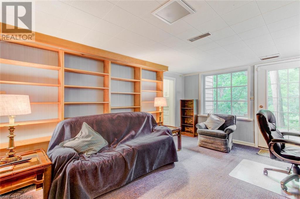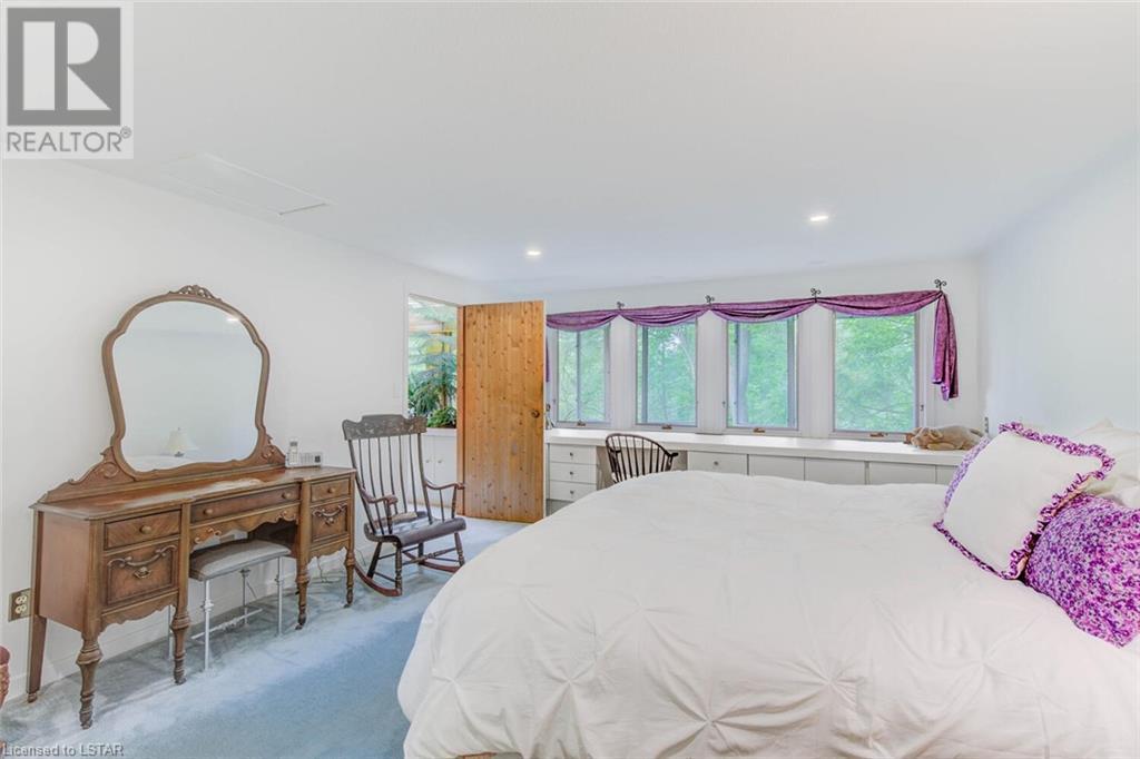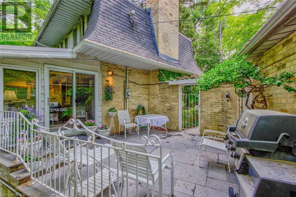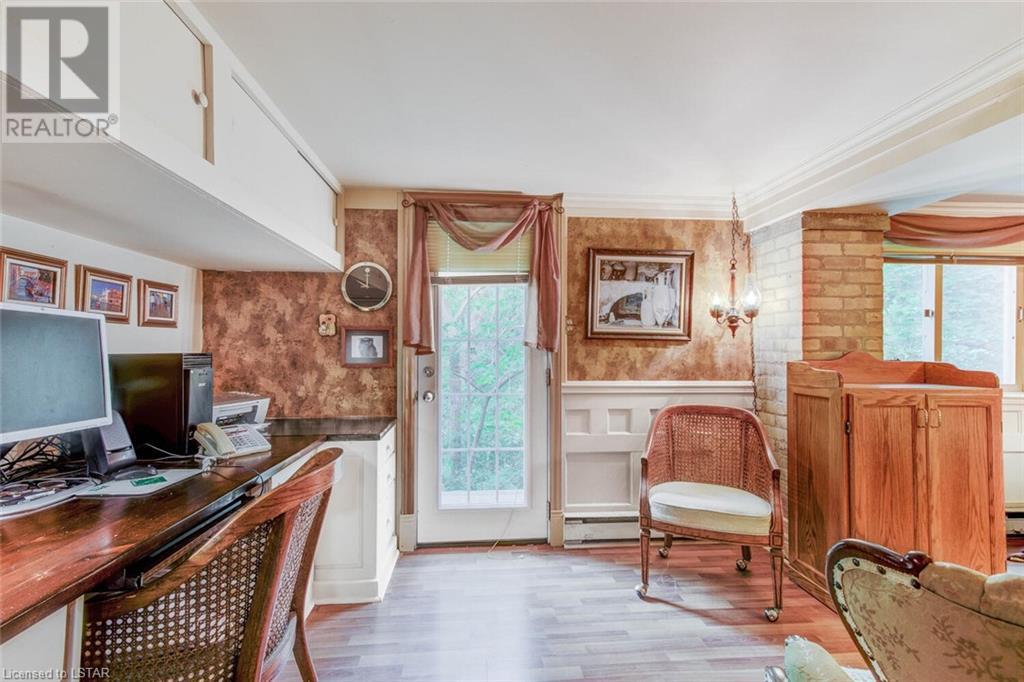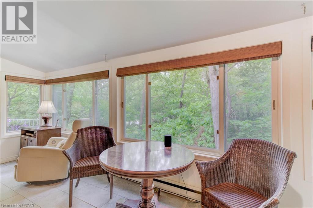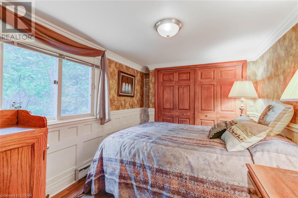 An incredible, rare opportunity to live in a park like setting in the heart of Old North London steps/walking distance from Western University, St. Joseph's Health Centre, Downtown London, walking trails & more! Unique 2 Storey home with full walkout lower level siding onto Gibbons Park, surrounded with incredible views of the woodland, its birds & wildlife, & Gibbons Creek from both the interior of home & two outdoor patio areas. Notable features include a classic centre hall plan with inviting foyer & generous principal rooms on main including a large, bright, functional living room with fireplace, a huge formal dining room for entertaining large numbers & striking combination L-shaped kitchen/eating area/sunroom with attractive off-white cabinetry, granite countertops & an array of glass & windows to welcome in both the natural light & the incredible views of the nature & landscape. 2nd Floor features an upper hall solarium, 4 piece main bath with jacuzzi tub & shower & 2 exceptional sized bedrooms, including Primary with 2 piece ensuite. Super bright walkout lower is ideal for personal use, extended family or income (could easily rent in the $1700-$1800 month or more range) with a very large living area/den with fireplace, additional bedroom, kitchenette/pantry with microwave (refrigerator, freezer in adjacent unfinished area) & striking 3 piece bath with glass & tile walk-in shower. Two exceptionally private patio areas (one off kitchen & the other off the lower level living/den room) provide a peace & serenity in the woods that totally belie an urban location in the heart of the City. Low maintenance landscaping-all ivy & periwinkle-no grass cutting. Single garage & extensive interlock drive-parking for 10+. Newer Furnace/Air & Gutter Guards on eavestroughs. Be sure to view extensive video/multi-media/matterport at: https://t-rex-photography.seehouseat.com/public/vtour/display/2091109#!/ (id:22211)