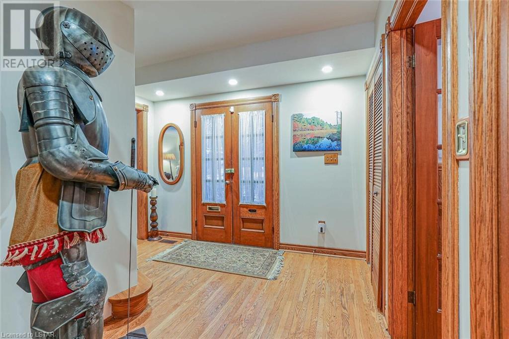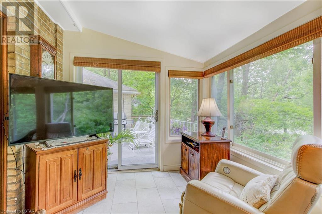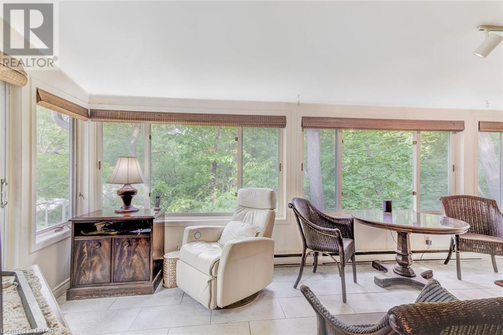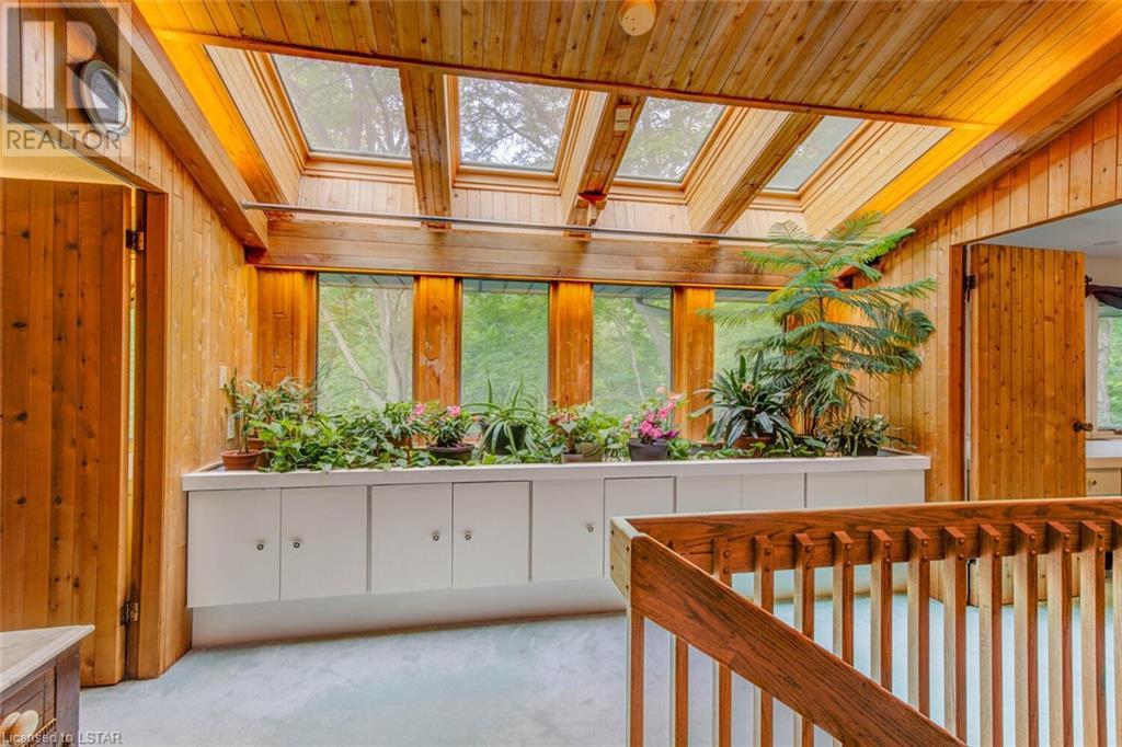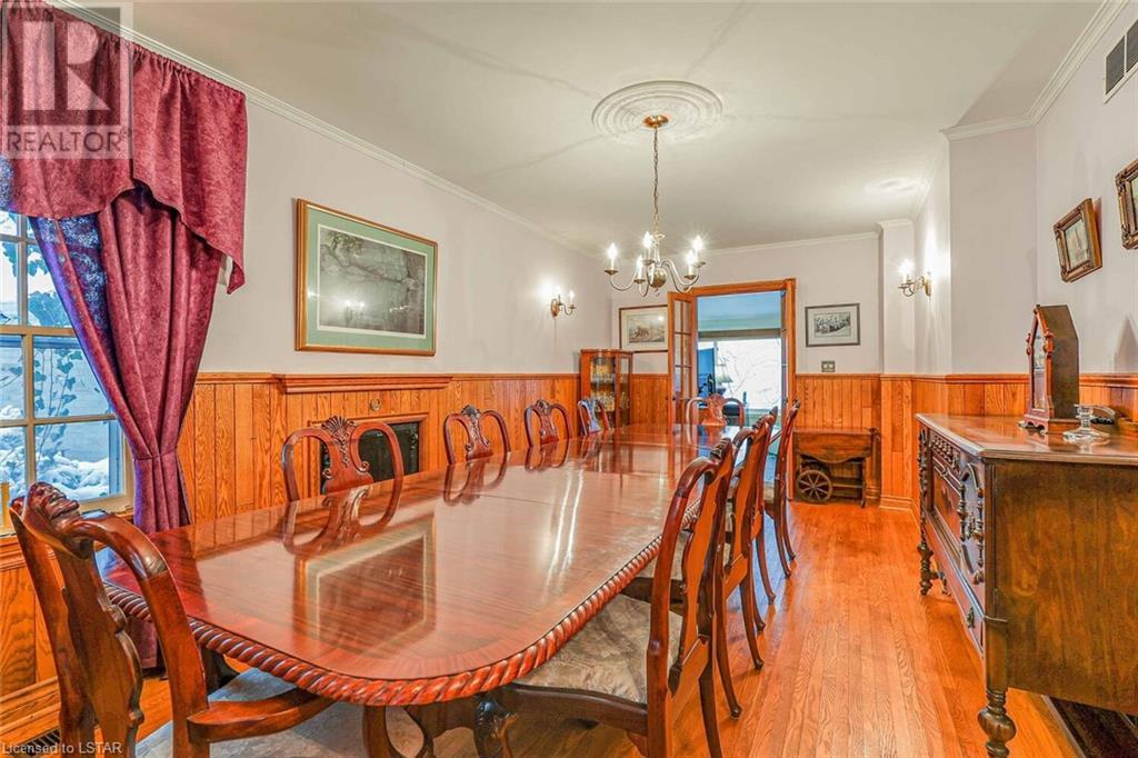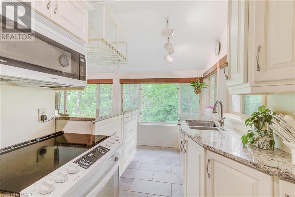 An incredible, rare opportunity to live in a park like setting in the heart of Old North London steps/walking distance from Western University, St. Joseph's Health Centre, Downtown London, walking trails & more! Unique 2 Storey home with full walkout lower level siding onto Gibbons Park, surrounded with incredible views of the woodland, its birds & wildlife, & Gibbons Creek from both the interior of home & two outdoor patio areas. Notable features include a classic centre hall plan with inviting foyer & generous principal rooms on main including a large, bright, functional living room with fireplace, a huge formal dining room for entertaining large numbers & striking combination L-shaped kitchen/eating area/sunroom with attractive off-white cabinetry, granite countertops & an array of glass & windows to welcome in both the natural light & the incredible views of the nature & landscape. 2nd Floor features an upper hall solarium, 4 piece main bath with jacuzzi tub & shower & 2 exceptional sized bedrooms, including Primary with 2 piece ensuite. Super bright walkout lower is ideal for personal use, extended family or income (could easily rent in the $1700-$1800 month or more range) with a very large living area/den with fireplace, additional bedroom, kitchenette/pantry with microwave (refrigerator, freezer in adjacent unfinished area) & striking 3 piece bath with glass & tile walk-in shower. Two exceptionally private patio areas (one off kitchen & the other off the lower level living/den room) provide a peace & serenity in the woods that totally belie an urban location in the heart of the City. Low maintenance landscaping-all ivy & periwinkle-no grass cutting. Single garage & extensive interlock drive-parking for 10+. Newer Furnace/Air & Gutter Guards on eavestroughs. Be sure to view extensive video/multi-media/matterport at: https://t-rex-photography.seehouseat.com/public/vtour/display/2091109#!/ (id:22211)