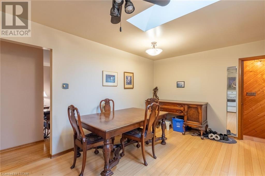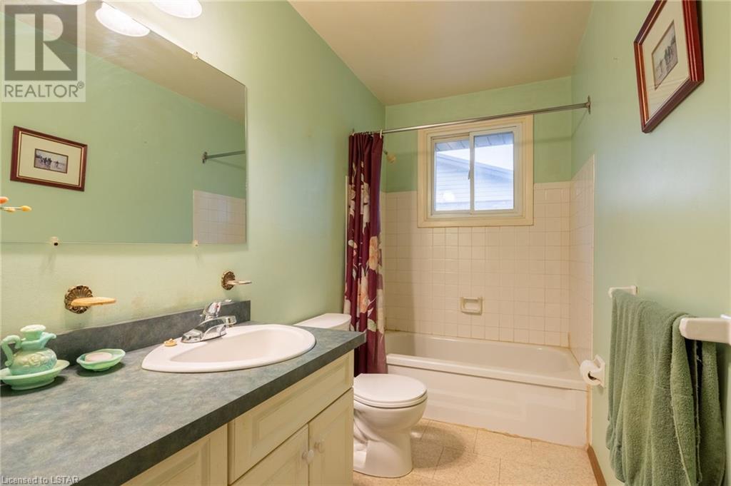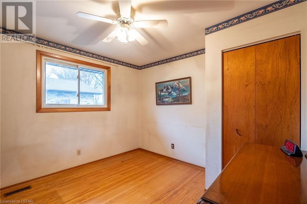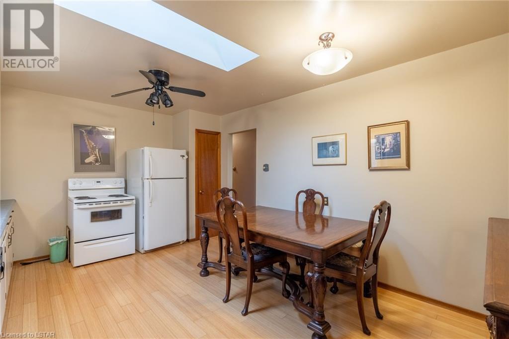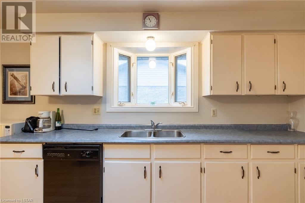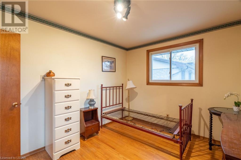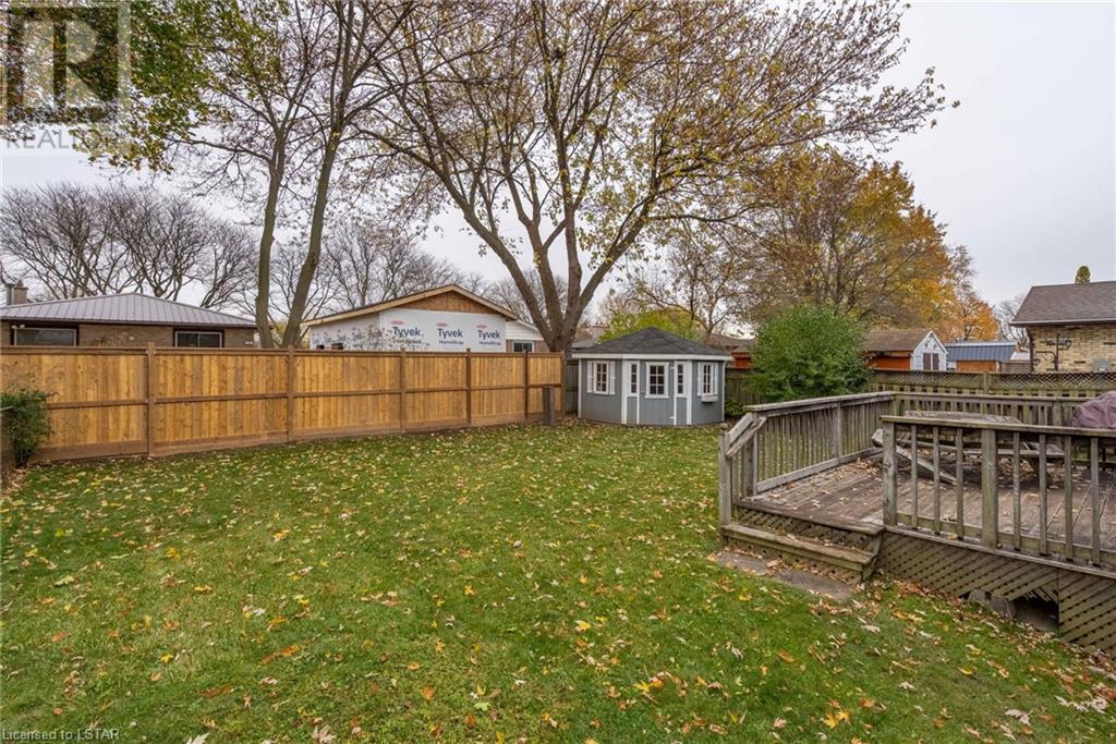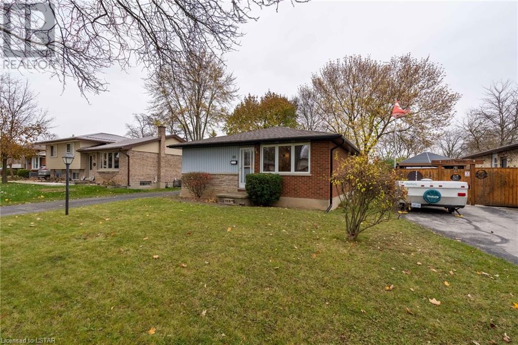 Welcome to this well maintained bungalow nestled in the heart of South London! The 967sqft main floor features a nice eat-in kitchen, and a large living room, 3 bedrooms, and 1 full bathroom. The basement contains another 528sqft of finished living space which is currently developed as a large rec room with a functional gas fireplace, another bedroom, and a full bathroom and there's an additional 440sqft of undeveloped basement. This is a perfect home for a growing family or first time buyers looking to put their touch on an incredible home. Outside, this 50'x100' lot leaves you with a large flat backyard, mature trees, and a large functional shed. The asphalt shingles were redone in 2012. The home is tucked away on a quiet crescent in a mature neighbourhood while still remaining conveniently close to parks, schools, and other amenities including highway access to the 401. This home has a lot of potential to make it your own! (id:22211)