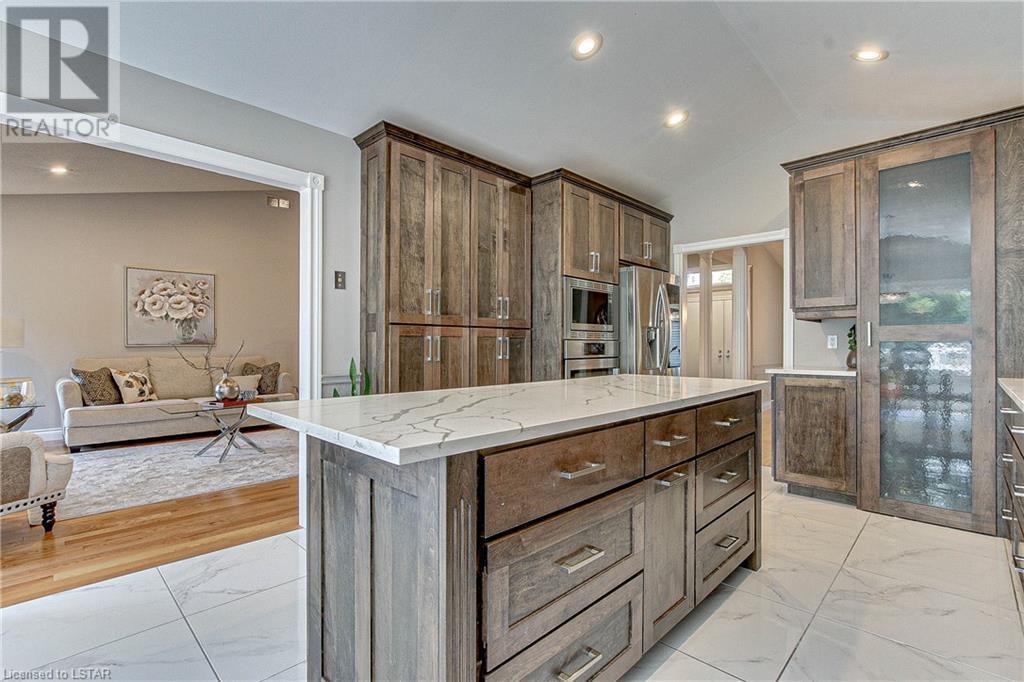Escape to a luxurious bungalow retreat on an expansive acre lot in London's sought-after Riverbend - West 5 neighborhood. This stunning property boasts 6 spacious bedrooms, 4.5 bathrooms, and spans 5,056 sq. ft. The open-concept design, vaulted ceilings, and large windows create a bright and inviting atmosphere, flooded with natural light. Indulge in the elegant dining room and entertain with ease in the well-equipped kitchen, featuring a chef's kitchen for culinary enthusiasts. The walkout basement offers versatile space, including a bedroom, recreational and games rooms, a gym, a small kitchen, and a luxurious bathroom. With a triple car garage and ample parking, this serene property provides both convenience and space. The rock-solid construction of this elegant custom home, is built to the highest standards. Don't miss the opportunity to own this exceptional retreat - schedule your viewing today! (id:22211)
