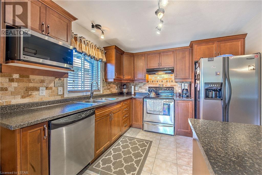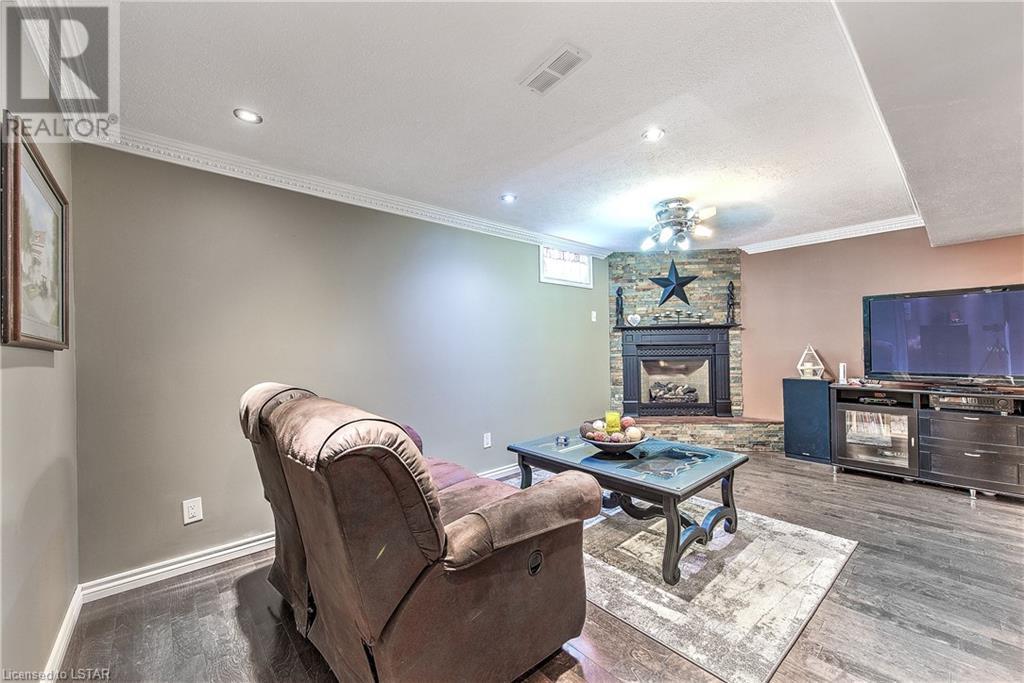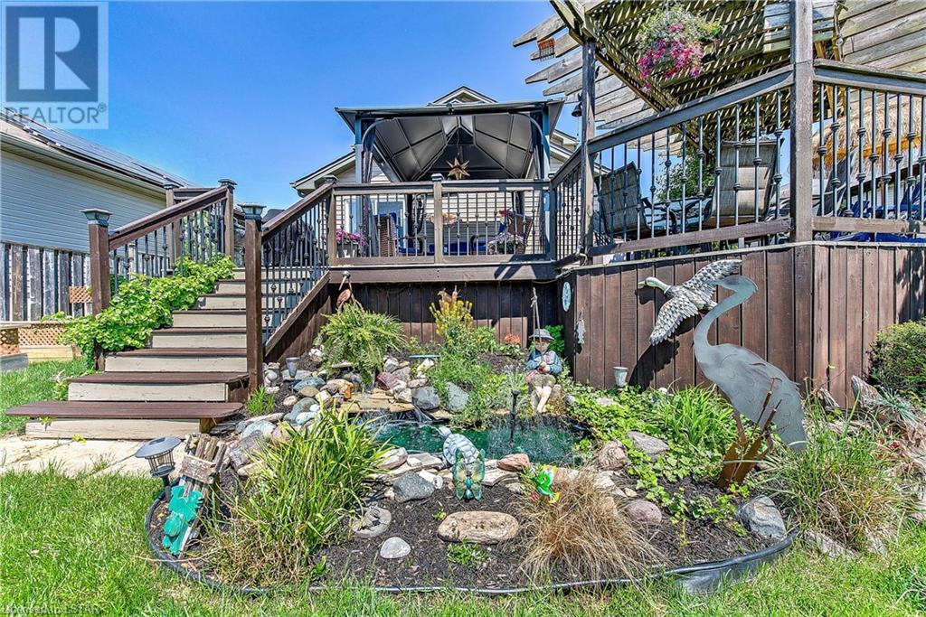 Welcome to 213 Baxter St. This meticulously maintained 3 bed, 2+2 bath family home is move-in ready and nestled on a generous sized pie shaped lot. Main floor features a gorgeous kitchen with oversized wall pantry, breakfast bar and stainless steel appliances. Vaulted ceiling highlight the formal dining and family room with sliders that invite you to the fully fenced backyard oasis. The beautiful, large landscaped lot features a custom designed deck and outdoor entertainment space, perfect for that morning coffee while listening to water cascading into your pond. The upper level boasts an oversized master bedroom with a custom designed walk-in closet, elegant ensuite and jetted tub. Two more tastefully decorated bedrooms and a second full bathroom are sure to please its occupants. Completing this magnificent home is the finished basement that offers plenty of additional living space. The spacious rec room features a cozy gas fireplace, 3 piece bathroom, laundry and lots of storage space. Only minutes to Veterans Memorial Parkway and the 401, perfect for commuters. Don't miss out on your opportunity to own this impressive home! (id:22211)