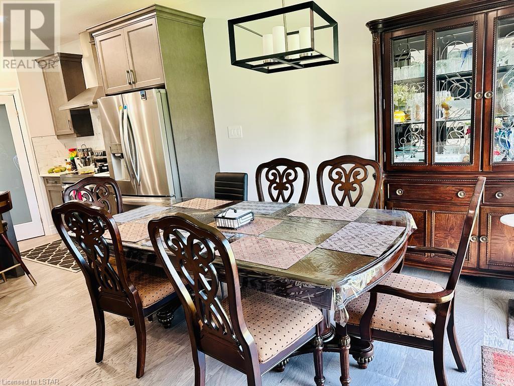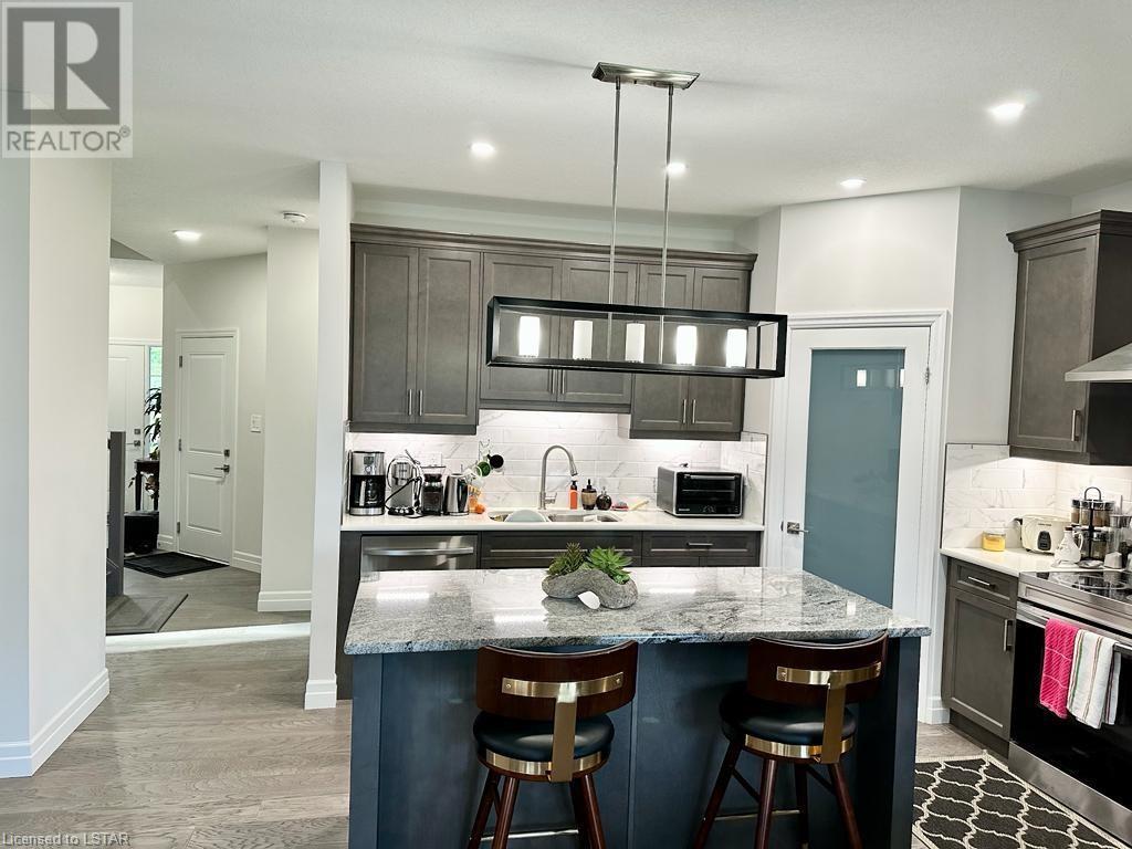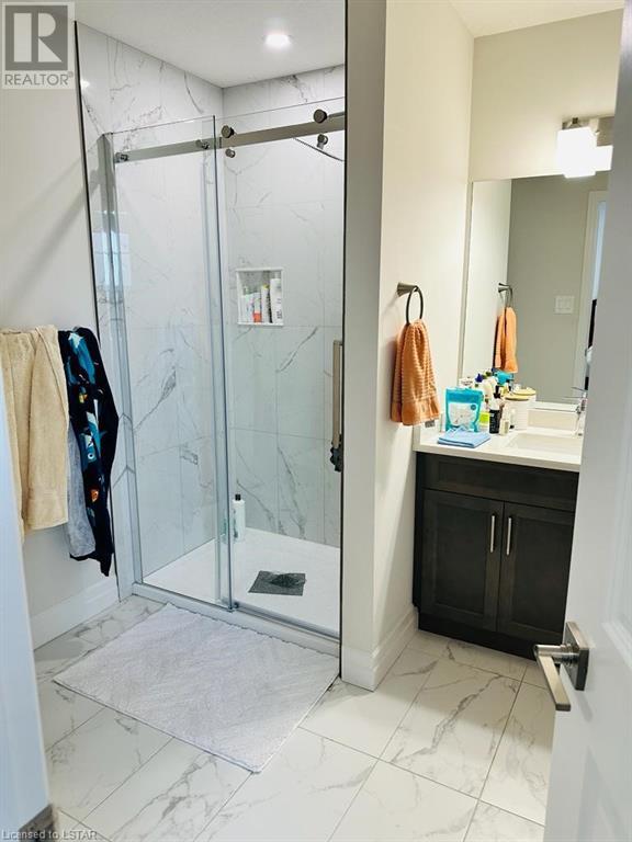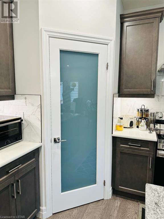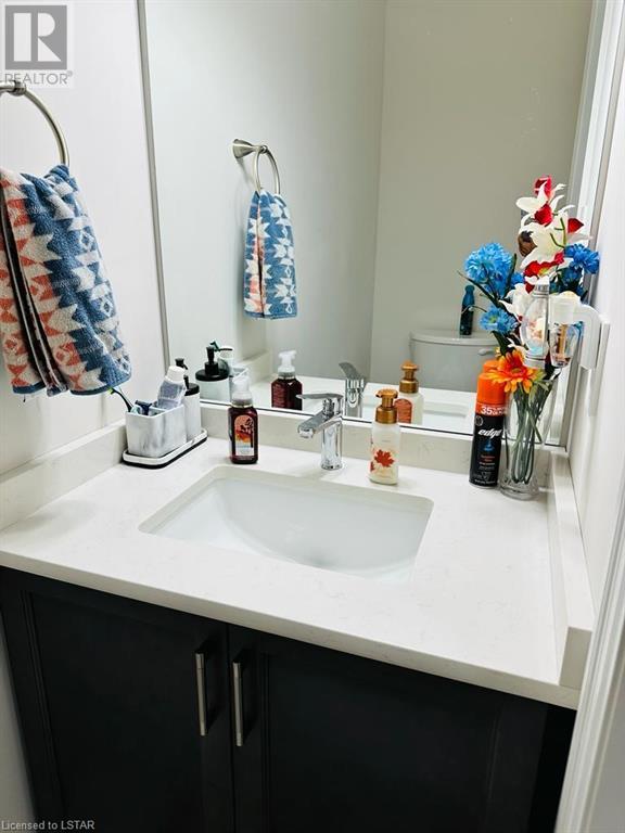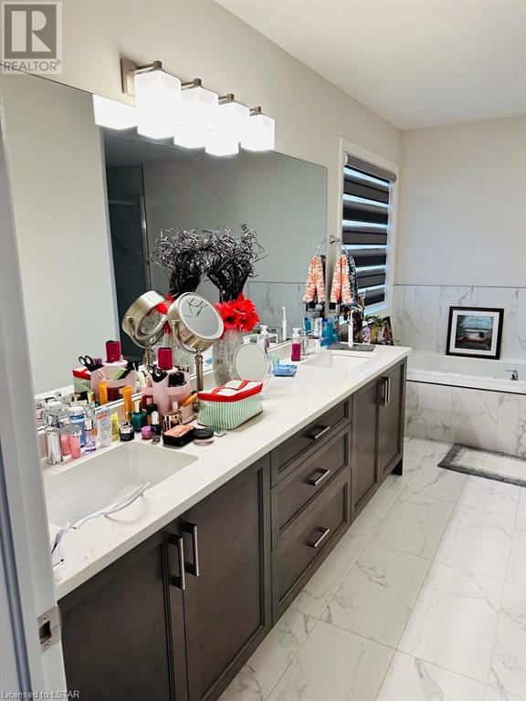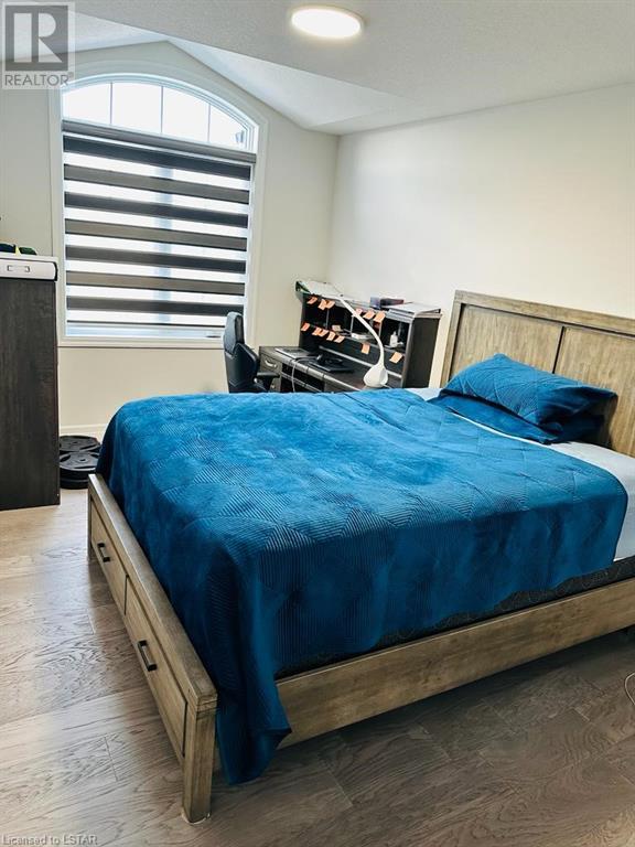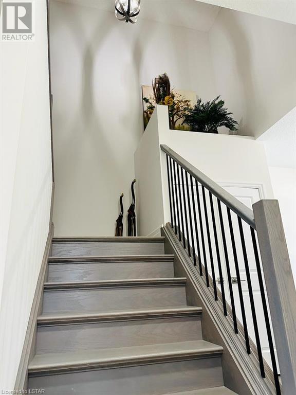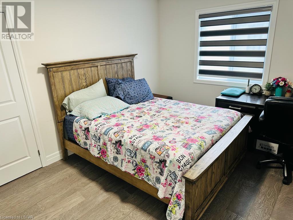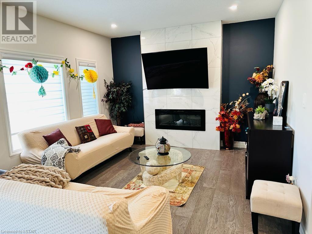 In desirable North London(Hydepark and Fanshawe), brand new custom designed home featuring 4 bedrooms with 4 washrooms including 9 ft ceilings on main floor, upgraded hardwood floor on all levels( no carpet in whole house), granite and quartz counters in the kitchen and upstairs vanity's, extra large window in family room, kitchen cabinets to the ceiling with valance trim, tiled wall in family room, with electric fireplace, wood stained stringers, metal spindles and stained poplar wood stairs, central A/C, tiled glass shower in the ensuite. Large kitchen island with quartz counters, includes kitchen appliances, and washer dryer, and all blinds. All Measurements are approximate. Walking distance to primary and secondary Schools, Wal-Mart, Costco, CanadianTire, Lowes, HomeDepo, Banks, Medical & more. (id:22211)