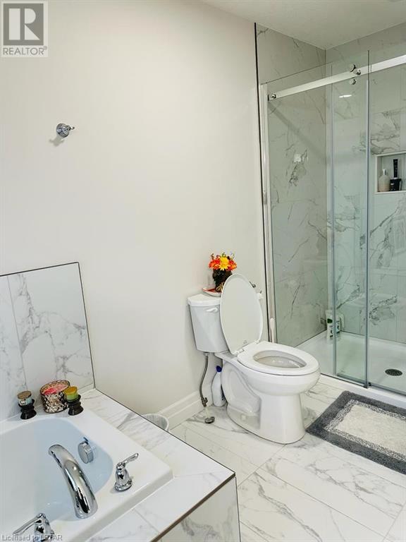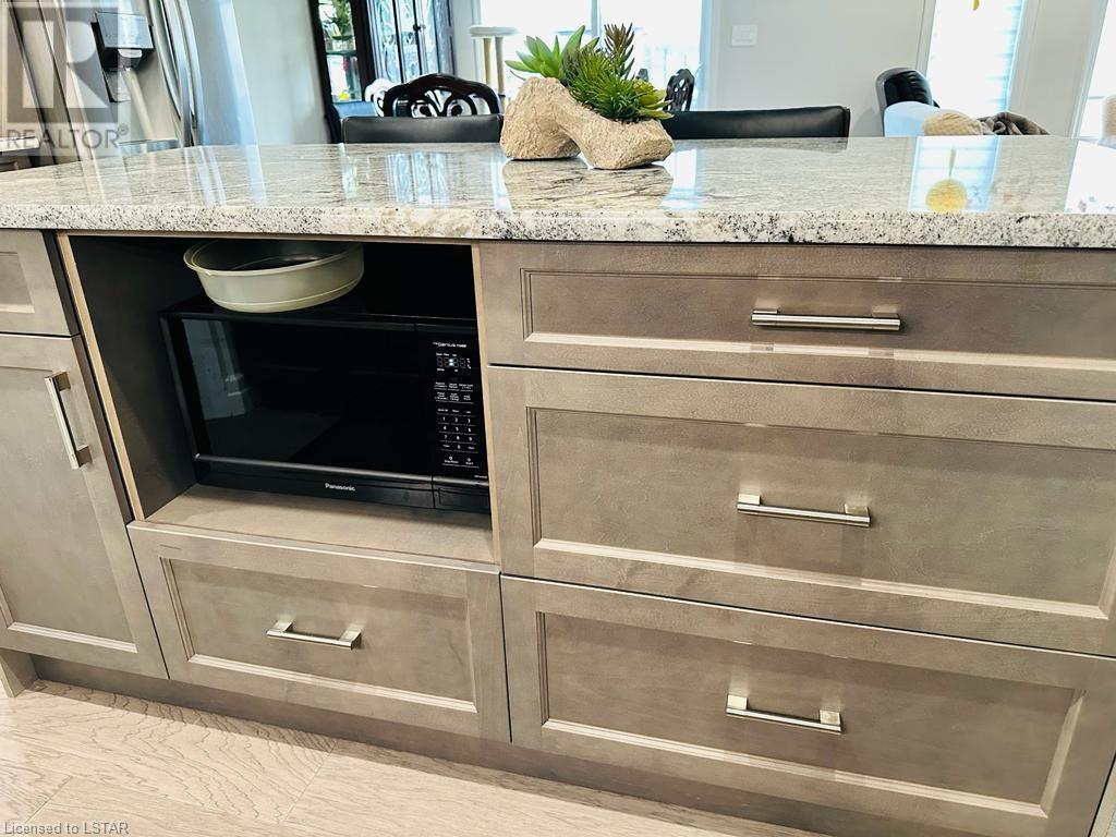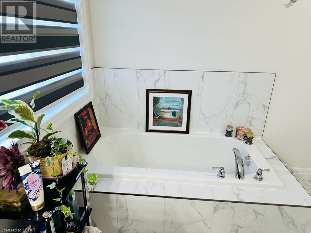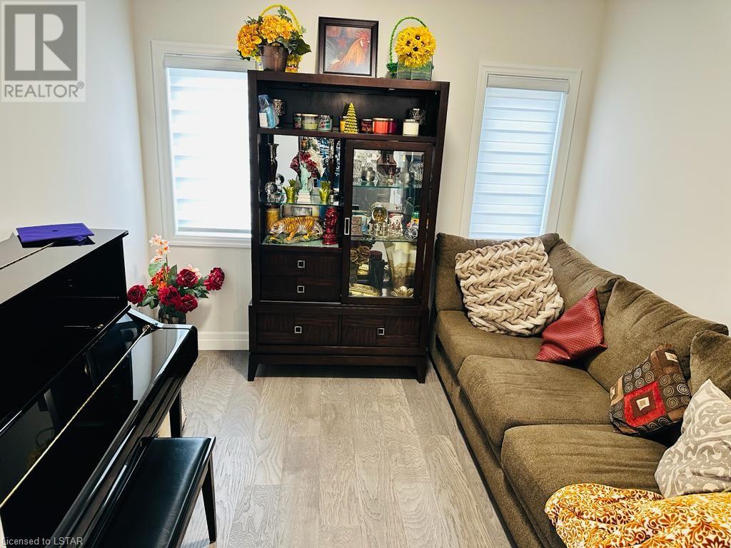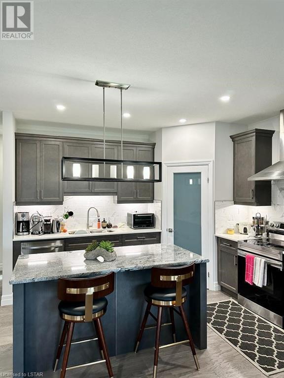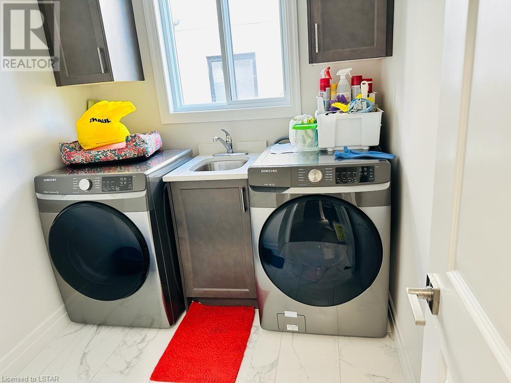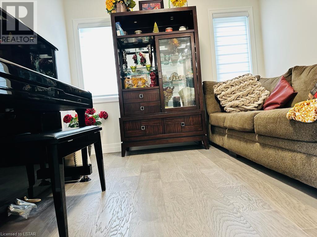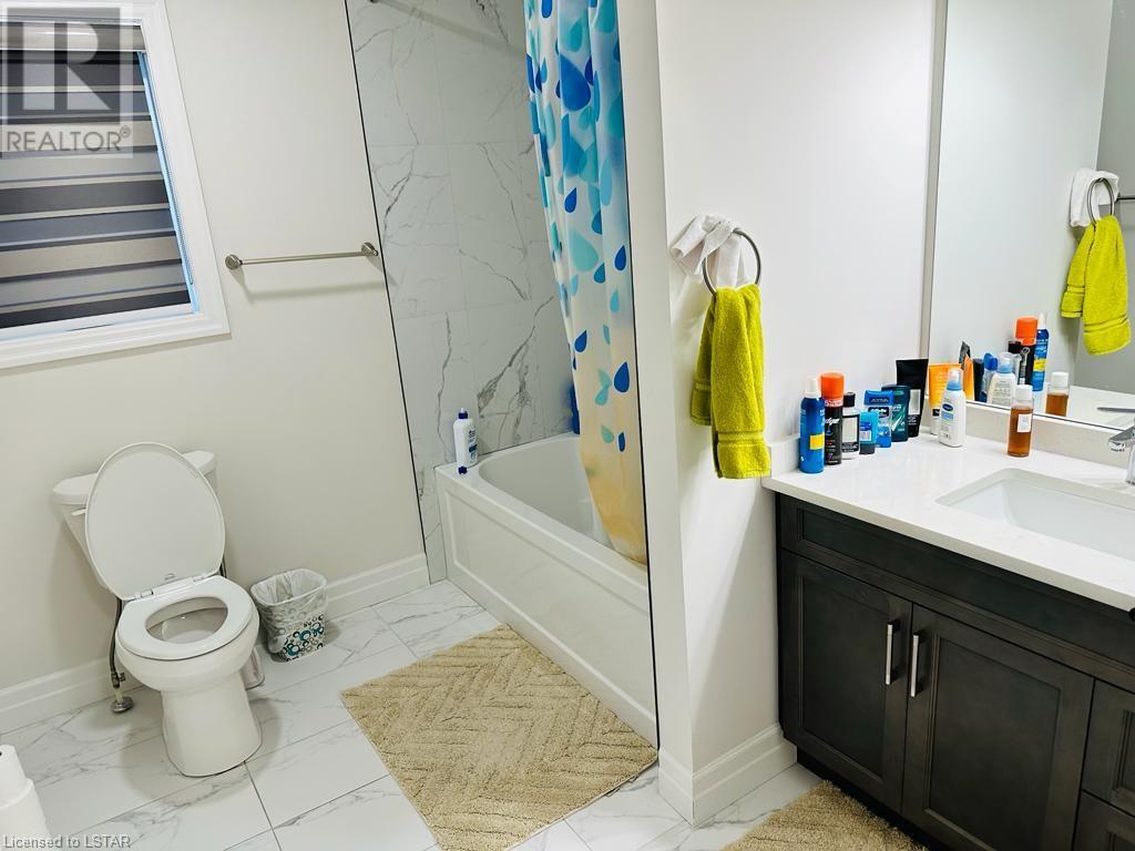 In desirable North London(Hydepark and Fanshawe), brand new custom designed home featuring 4 bedrooms with 4 washrooms including 9 ft ceilings on main floor, upgraded hardwood floor on all levels( no carpet in whole house), granite and quartz counters in the kitchen and upstairs vanity's, extra large window in family room, kitchen cabinets to the ceiling with valance trim, tiled wall in family room, with electric fireplace, wood stained stringers, metal spindles and stained poplar wood stairs, central A/C, tiled glass shower in the ensuite. Large kitchen island with quartz counters, includes kitchen appliances, and washer dryer, and all blinds. All Measurements are approximate. Walking distance to primary and secondary Schools, Wal-Mart, Costco, CanadianTire, Lowes, HomeDepo, Banks, Medical & more. (id:22211)