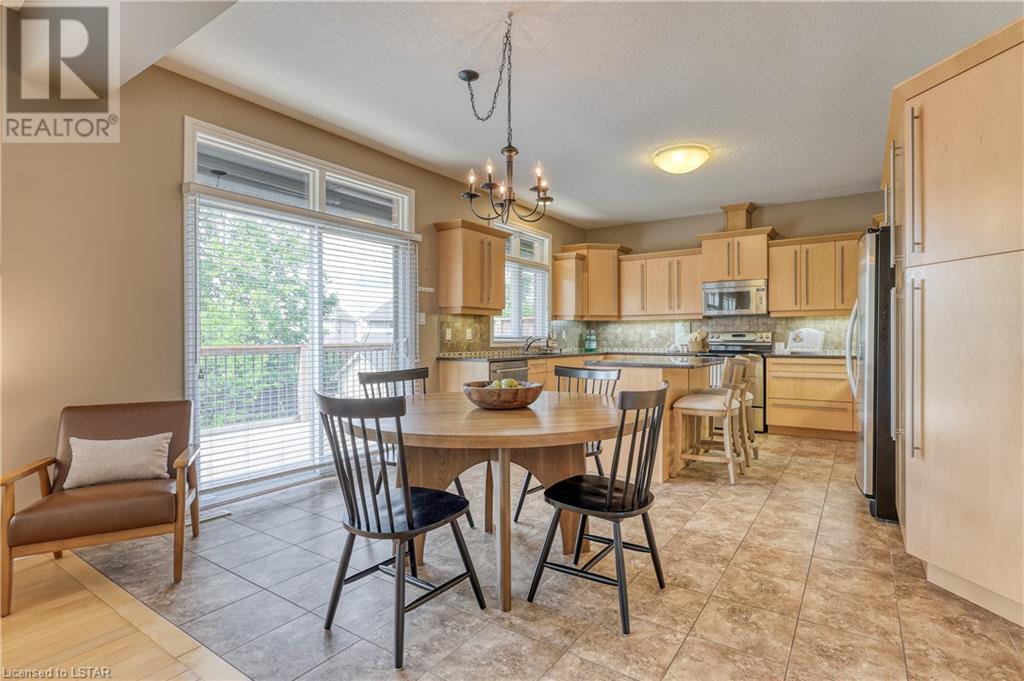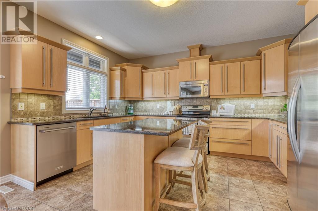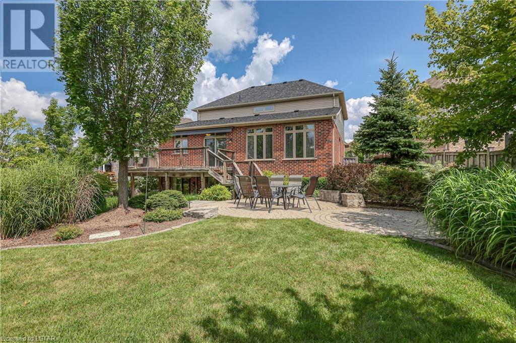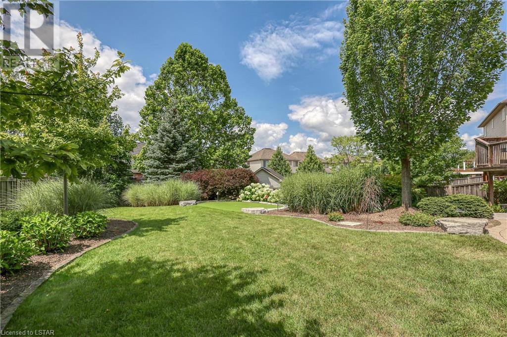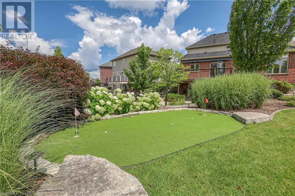 This red brick home has great curb appeal with a professionally landscaped front & backyard. Located on a quiet crescent with one of the largest lots on the street. Built in 2007 with a single owner who has meticulously maintained this 4-bedroom home. The main floor offers a ton of living space. A large open office, separate formal dining, spacious living room with plenty of picture windows, a dinette with access to the back deck and a roomy kitchen with quartz counters and ample cabinetry. The main floor also offers a mudroom/ laundry off the oversized 2 car garage (23 x 31 ft). The primary bedroom features a generous ensuite with a separate shower, whirlpool tub, heated floors and quartz vanity counter, as well as a walk-in closet. Upstairs also includes 3 spacious bedrooms and a 4-piece bathroom. The lower level includes a walkout basement with a separate entrance. A huge rec room with built-in cabinets and a speaker system. There is a plumbing rough-in for a bar or in-law suite kitchen. The basement has a second office or optional bedroom and a full 3-piece bathroom. The backyard is pie shaped and 158 ft deep. Plenty of mature trees and multiple patio areas. A 10x20 ft putting green was added in 2021. There is also a 12x10 wood shed on a concrete slab. Extensive stone retaining walls and stairs, in-ground sprinkler system, board on board cedar fence. This house offers so much value and is close to skiing, endless trails, parks, great schools and all the amenities of Byron. (id:22211)