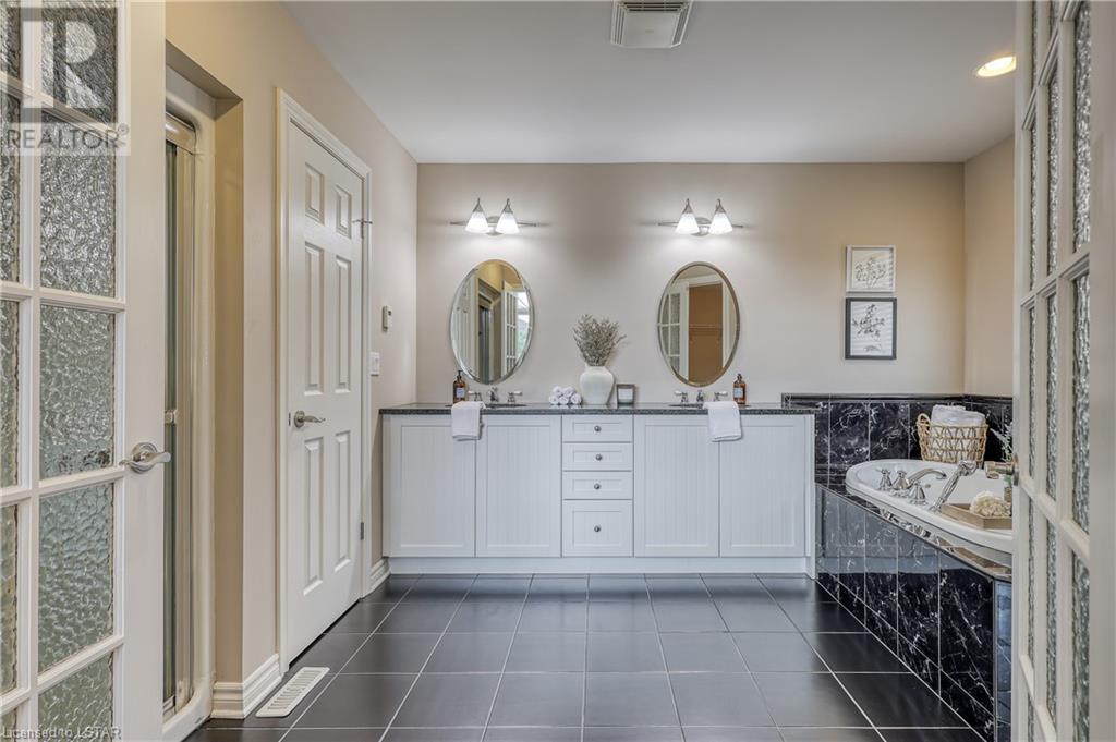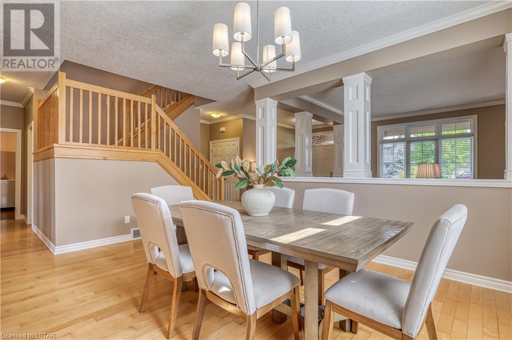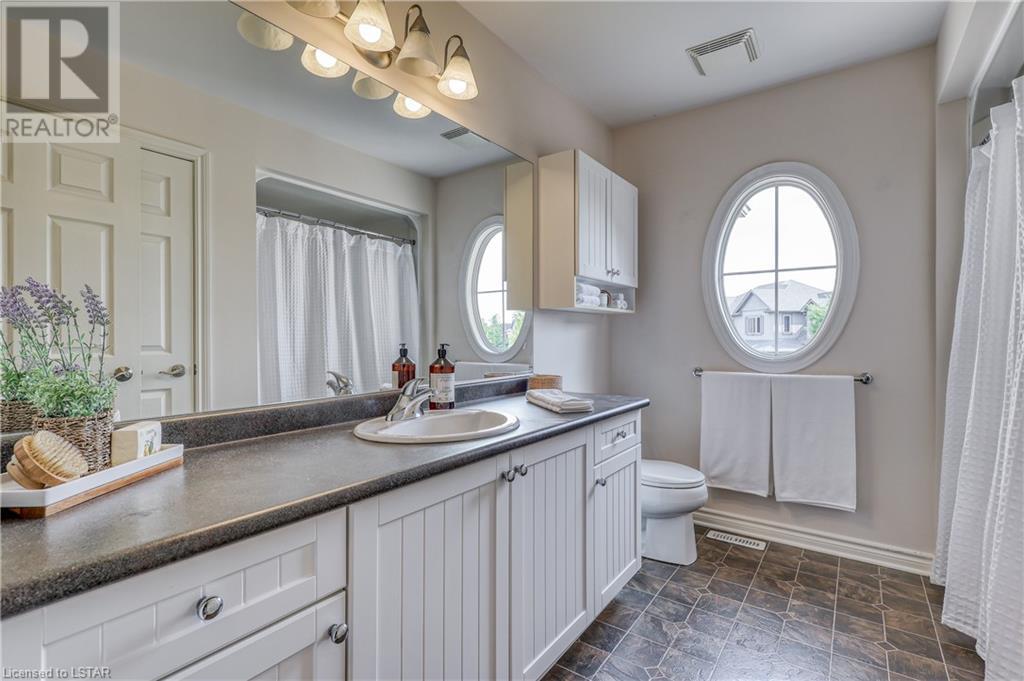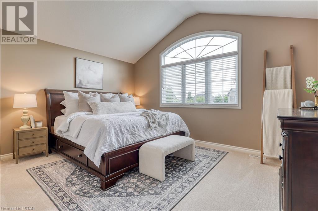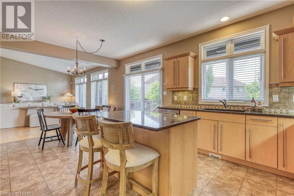 This red brick home has great curb appeal with a professionally landscaped front & backyard. Located on a quiet crescent with one of the largest lots on the street. Built in 2007 with a single owner who has meticulously maintained this 4-bedroom home. The main floor offers a ton of living space. A large open office, separate formal dining, spacious living room with plenty of picture windows, a dinette with access to the back deck and a roomy kitchen with quartz counters and ample cabinetry. The main floor also offers a mudroom/ laundry off the oversized 2 car garage (23 x 31 ft). The primary bedroom features a generous ensuite with a separate shower, whirlpool tub, heated floors and quartz vanity counter, as well as a walk-in closet. Upstairs also includes 3 spacious bedrooms and a 4-piece bathroom. The lower level includes a walkout basement with a separate entrance. A huge rec room with built-in cabinets and a speaker system. There is a plumbing rough-in for a bar or in-law suite kitchen. The basement has a second office or optional bedroom and a full 3-piece bathroom. The backyard is pie shaped and 158 ft deep. Plenty of mature trees and multiple patio areas. A 10x20 ft putting green was added in 2021. There is also a 12x10 wood shed on a concrete slab. Extensive stone retaining walls and stairs, in-ground sprinkler system, board on board cedar fence. This house offers so much value and is close to skiing, endless trails, parks, great schools and all the amenities of Byron. (id:22211)