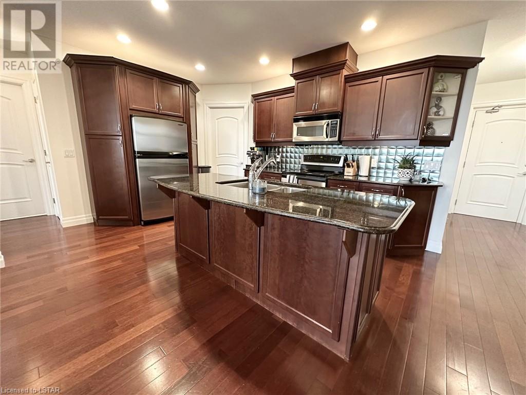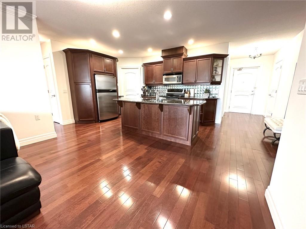 Welcome to 250 Pall Mall! Fabulous 2 bed + Den, 2 full bath in one of London’s Premiere downtown locations. Bright and Spotless unit featuring 1435 sq ft featuring open concept with gleaming hardwood, timeless kitchen with centre island w/ breakfast bar, stainless appliances, backsplash, granite, crown mould and more. The unit features a handy laundry room with excellent storage. Large Primary room with dual closets and 5 pc luxury ensuite. Other features include a spacious covered balcony overlooking the park and downtown. Condo comes with 2 underground parking spaces and note that condo fees include ALL utilities! The building also features games room, exercise room, guest suite, and library and is walking distance to all amenities. VTB or Private financing a possibility with this purchase. Call today to find out more! (id:22211)