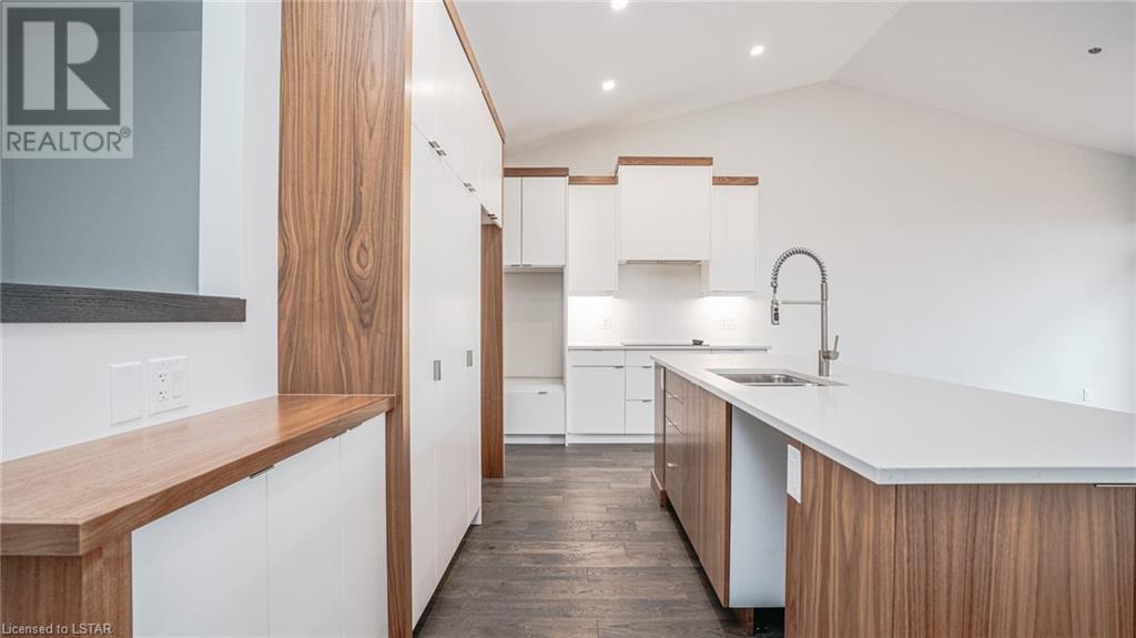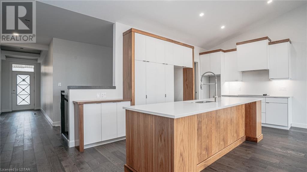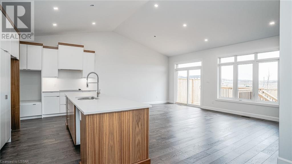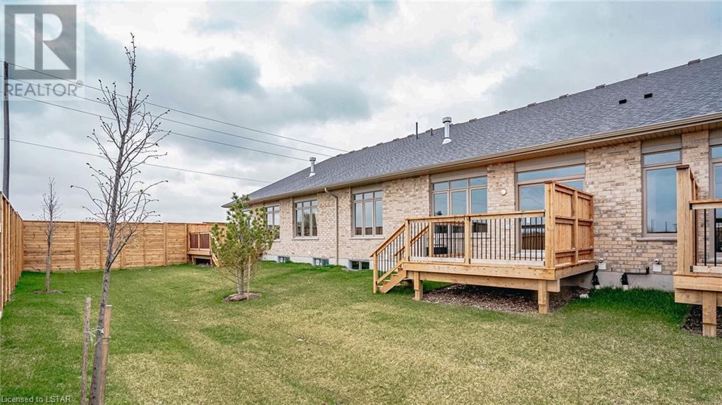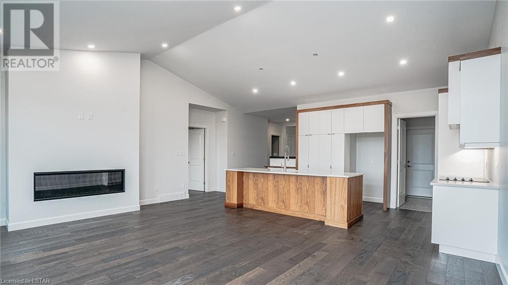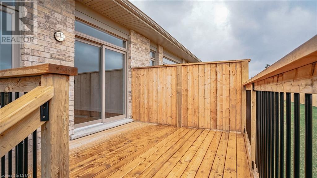 Half priced Basements for a Limited Time! Move in ready one level condo in highly sought after North West London! This open concept Sheffield floor plan boasts 1407 sq ft of finished living space and features a gorgeous kitchen with quartz countertops, walnut style island and cabinet perimeter, soft close cabinets, and pantry. Large and bright living room with vaulted ceilings, modern pot lights, and linear gas fireplace. The main level includes hardwood throughout with 2 bedrooms and 2 full bathrooms including a luxury ensuite with makeup desk and large tiled shower with glass doors. Convenient main floor laundry, double car garage with inside entry, private 12x10 deck and covered front porch. This is a premium unit that does not back onto other units at the site and is open to a large common area guarded by a private wood fence. Inclusive condo fee includes snow removal from driveways and walkways, landscaping/grass cutting, in-ground sprinkler system, plus so much more. Easy one floor living and a community you will be proud to call home! (id:22211)