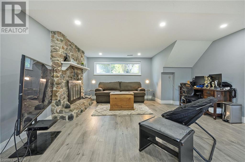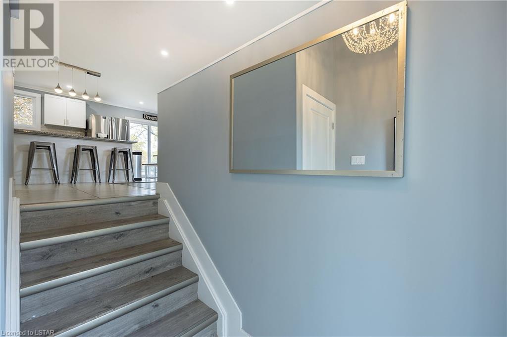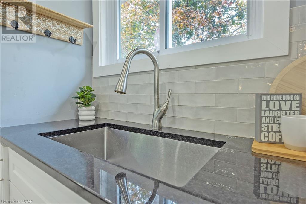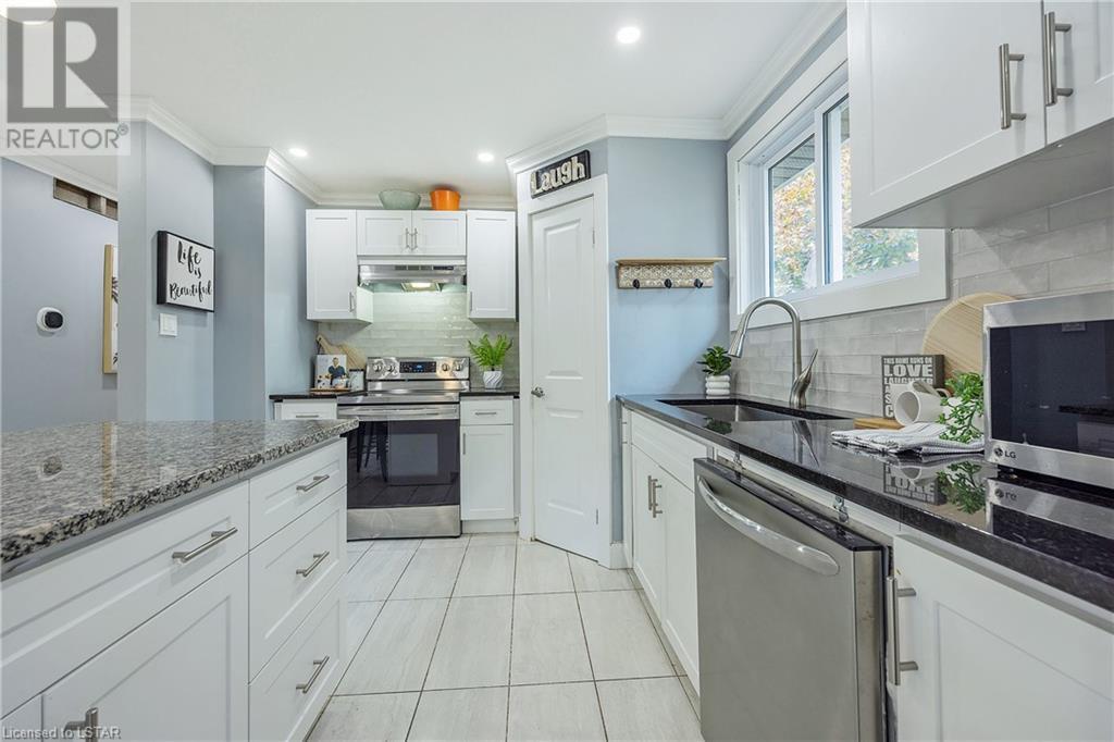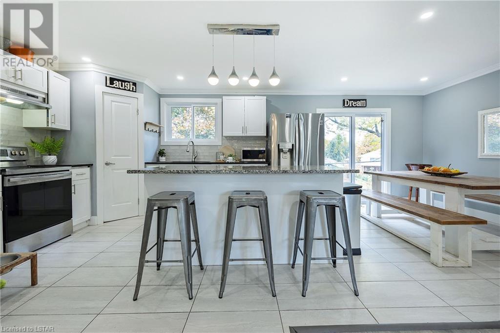 Byron single detached, raised ranch home, with garage and 2 lower level inside entries, perfect for duplex conversion or intergenerational mortgage helpers for multiple families to live together with privacy. Situated on a large, pie shaped lot, one of the largest lots in the neighbourhood, located in the heart of the lovely community of Byron Village. On the edge of the West side of London, Byron residents enjoy the upscale community with an abundance of amenities such as the ski hill, shopping strip, top rated schools, Springbank Park with trails connected throughout the city, the gorgeous Thames River and a quick drive to the beaches of Huron shores or Lake Erie, as well as close to the Highway 402 connecting to the main 401 highway, making traveling to the GTA quick and convenient. The entire house was fully updated in 2021, with almost all newer windows, roof 2021, newer front door 2021, sliding glass door 2021, newer fully-fenced in backyard, Furnace and AC 2019, siding (2021), Granite kitchen countertops, all stainless steel appliances (2021), walk-in glass shower in lower level. With the house being a raised ranch style, the lower level has a lot of light as well as a wood burning fireplace. Lower level 3-pi8ece bathroom has granite countertops. The furnace and air conditioner contract will be paid out on the closing of the sale. (id:22211)