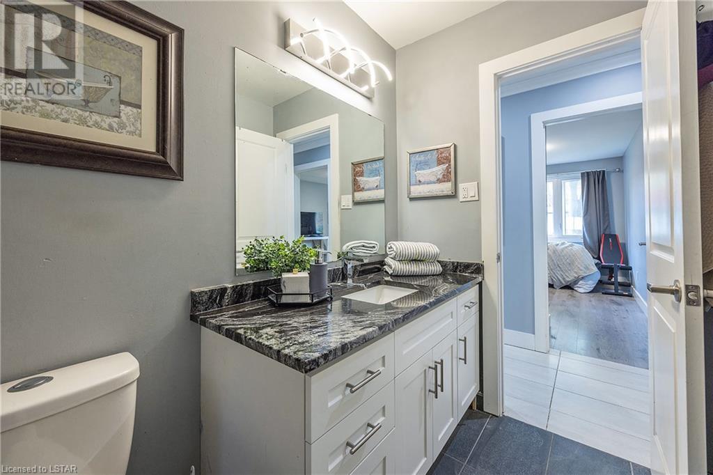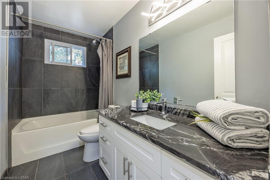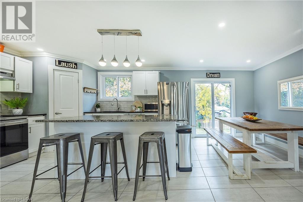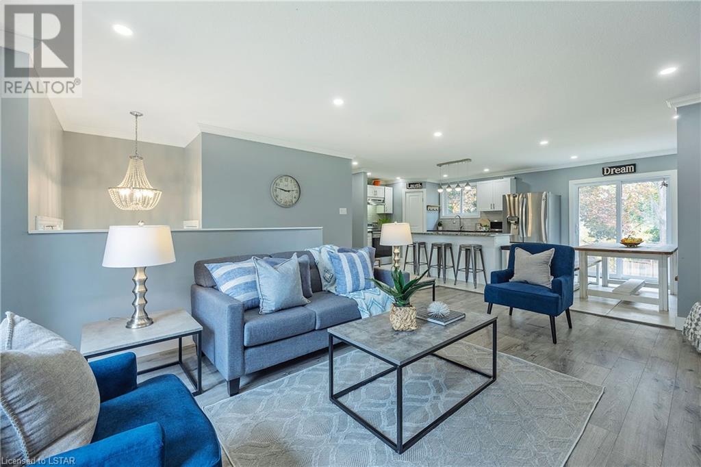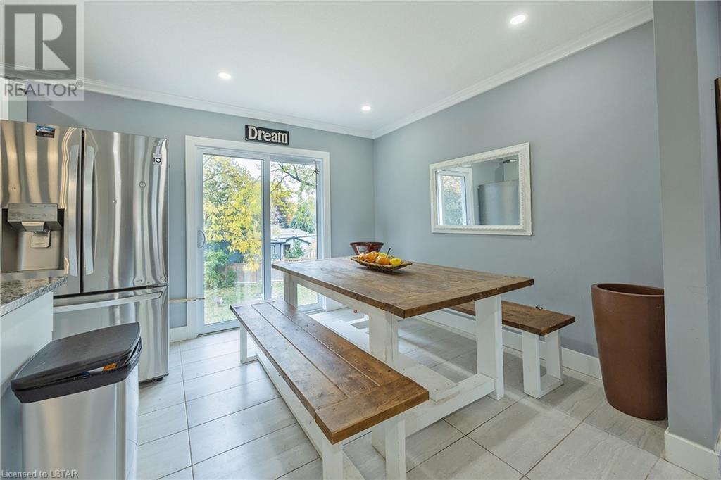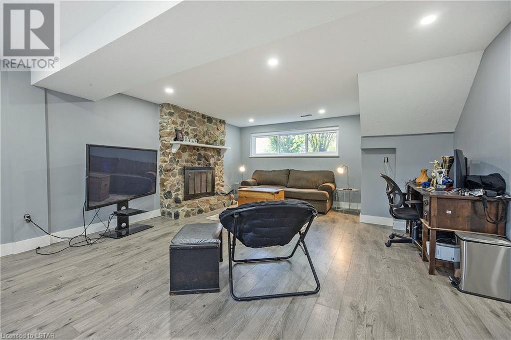 Byron single detached, raised ranch home, with garage and 2 lower level inside entries, perfect for duplex conversion or intergenerational mortgage helpers for multiple families to live together with privacy. Situated on a large, pie shaped lot, one of the largest lots in the neighbourhood, located in the heart of the lovely community of Byron Village. On the edge of the West side of London, Byron residents enjoy the upscale community with an abundance of amenities such as the ski hill, shopping strip, top rated schools, Springbank Park with trails connected throughout the city, the gorgeous Thames River and a quick drive to the beaches of Huron shores or Lake Erie, as well as close to the Highway 402 connecting to the main 401 highway, making traveling to the GTA quick and convenient. The entire house was fully updated in 2021, with almost all newer windows, roof 2021, newer front door 2021, sliding glass door 2021, newer fully-fenced in backyard, Furnace and AC 2019, siding (2021), Granite kitchen countertops, all stainless steel appliances (2021), walk-in glass shower in lower level. With the house being a raised ranch style, the lower level has a lot of light as well as a wood burning fireplace. Lower level 3-pi8ece bathroom has granite countertops. The furnace and air conditioner contract will be paid out on the closing of the sale. (id:22211)