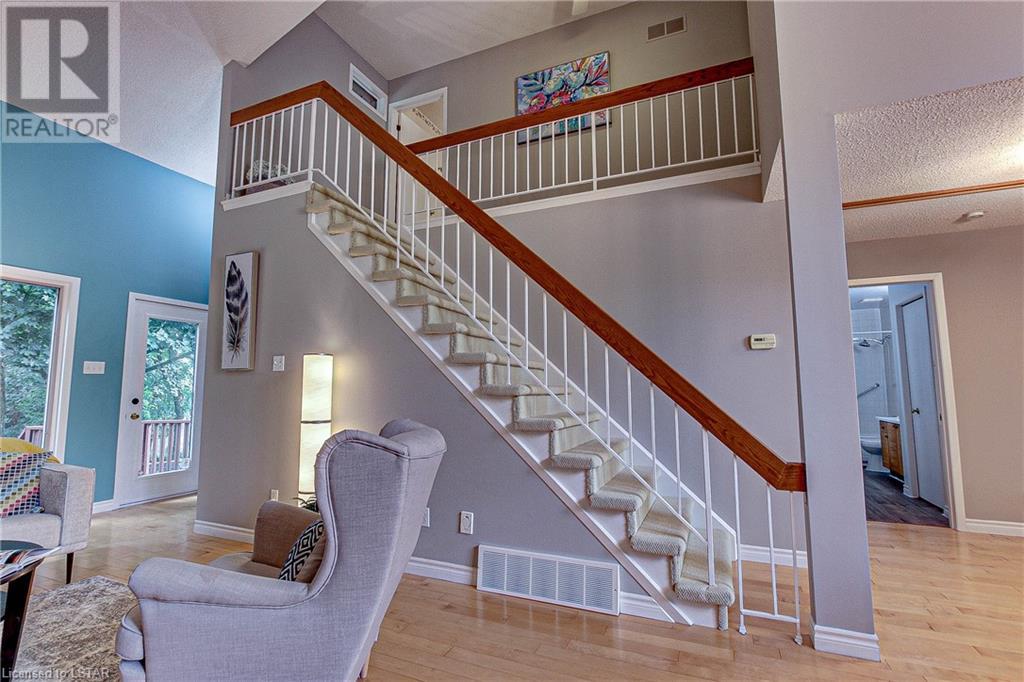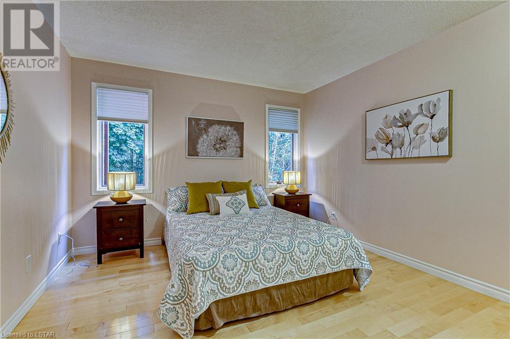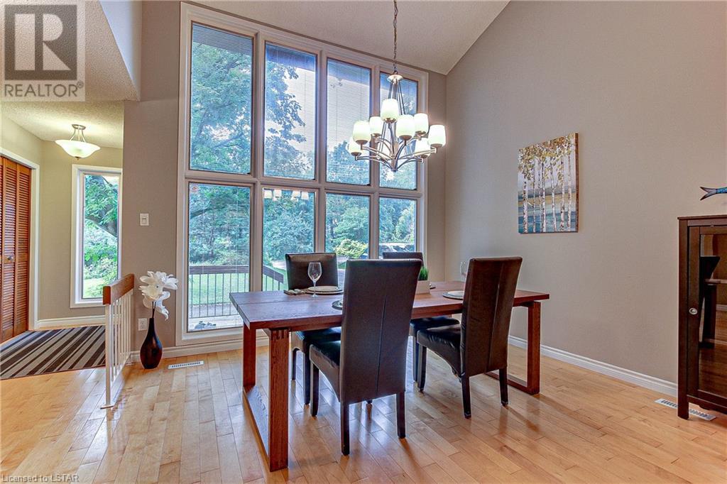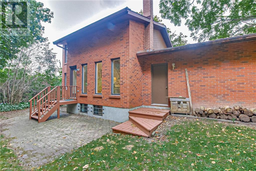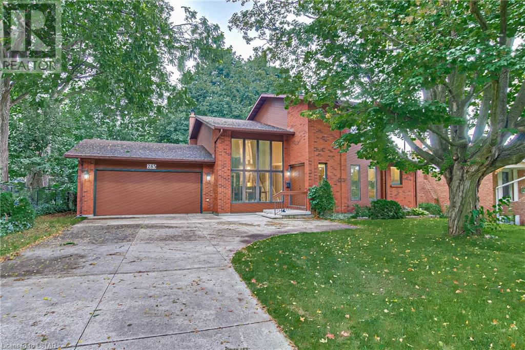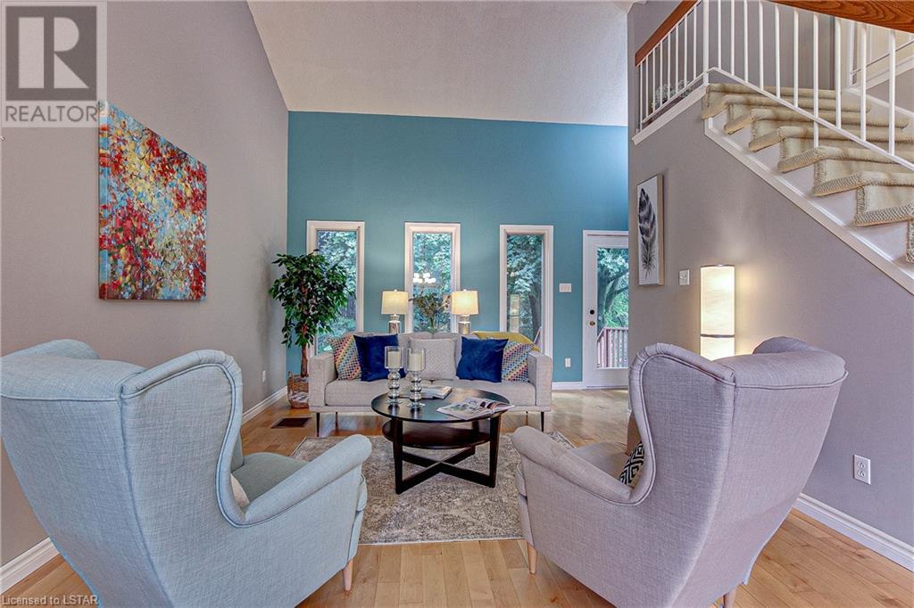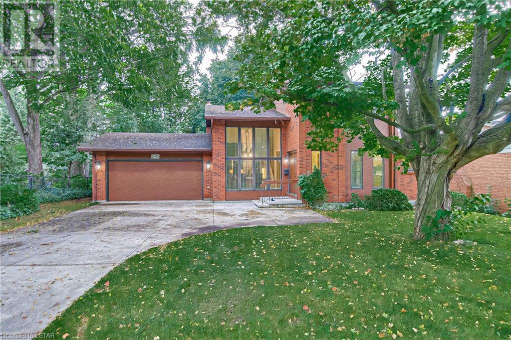 Don't miss out this Architectural Design Inspiration home. Unique, tasteful 2 storey all brick home on a mature private treed lot. Enter this made-to-order home with open concept dining room and living room featuring a vaulted soaring ceiling with custom hardwood finishes and large bright Pella windows that bring the outdoors in. Enjoy the cozy bright retro eat-in kitchen with its custom designed cabinetry, plus a main floor master and full bathroom. The second-floor features 2 other bedrooms plus a full bath. The lower level is partially finished with a generous sized recreation room, bathroom, and laundry room. There is an oversized attached double car garage, and the 4-car driveway with turning pad, that has enough parking for more. Relax in a nature lovers dream with woodland gardener yard areas both front and back that block out the sounds of the city and ensuring your privacy. Just a short walk to downtown London with all its shopping, restaurants, and entertaining amenities, close to walking and nature trails, and minutes to schools and city transit. Freshly painted, new floors from top to bottom. Come and enjoy this one-of-a-kind home. (id:22211)