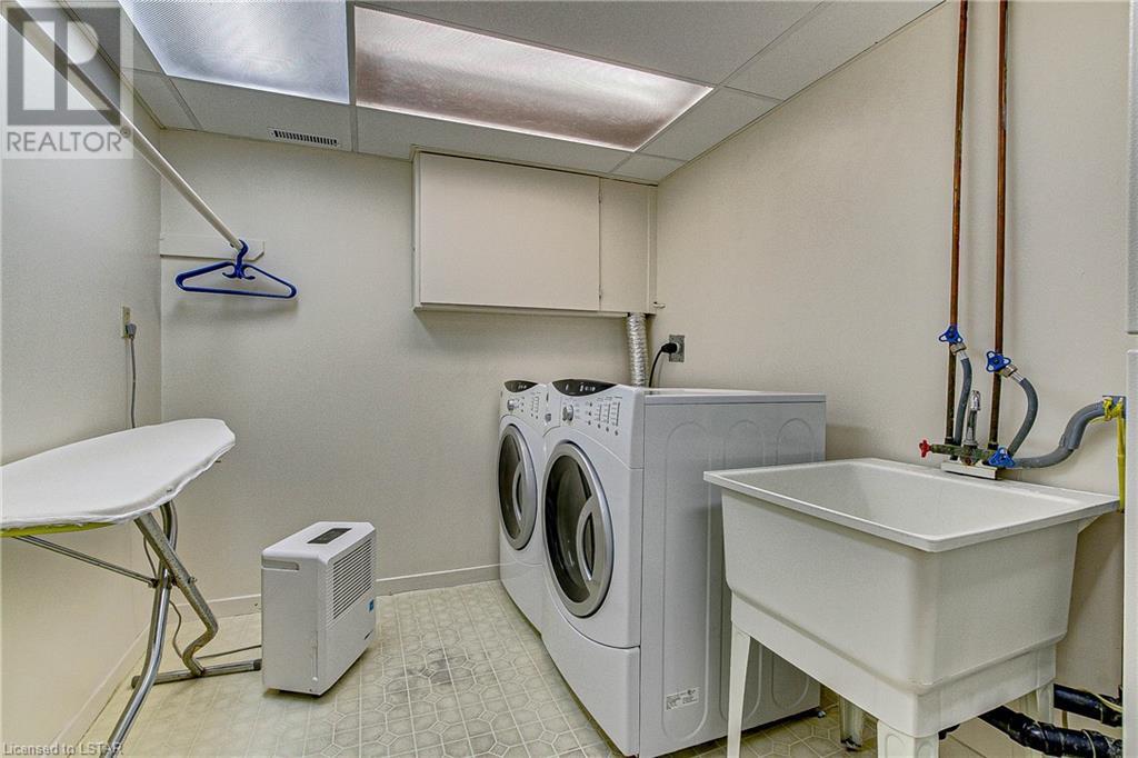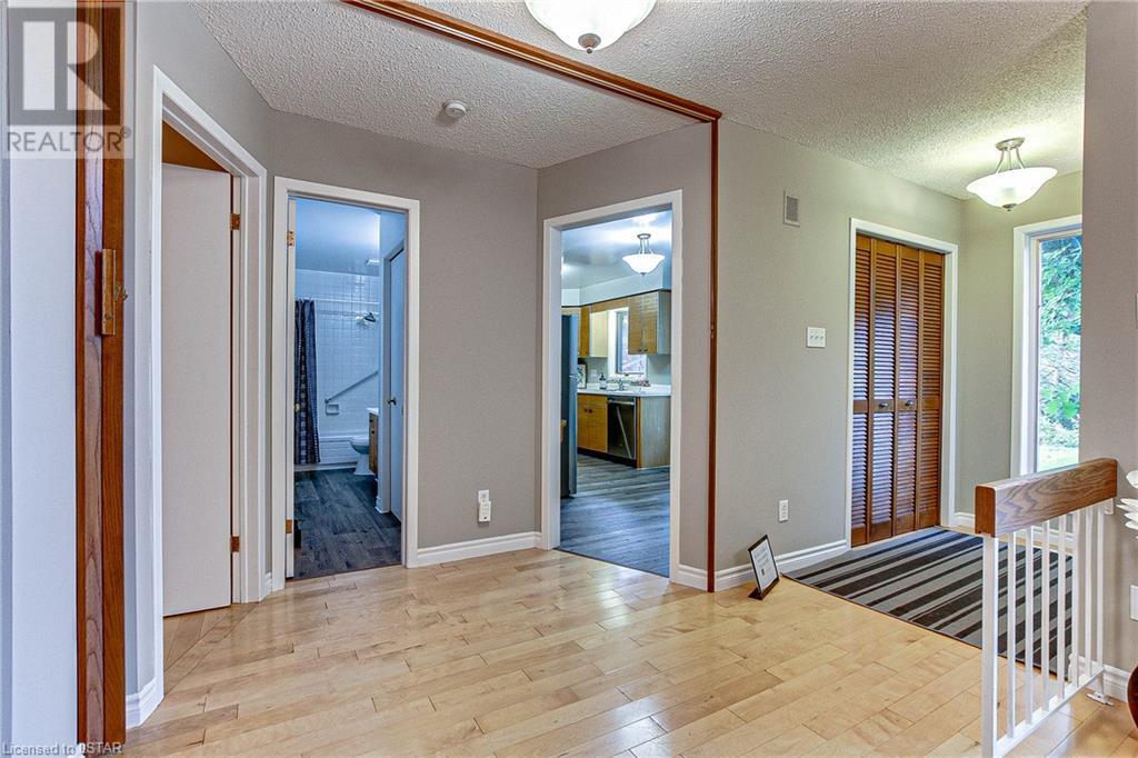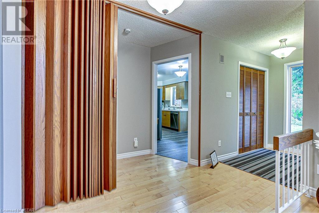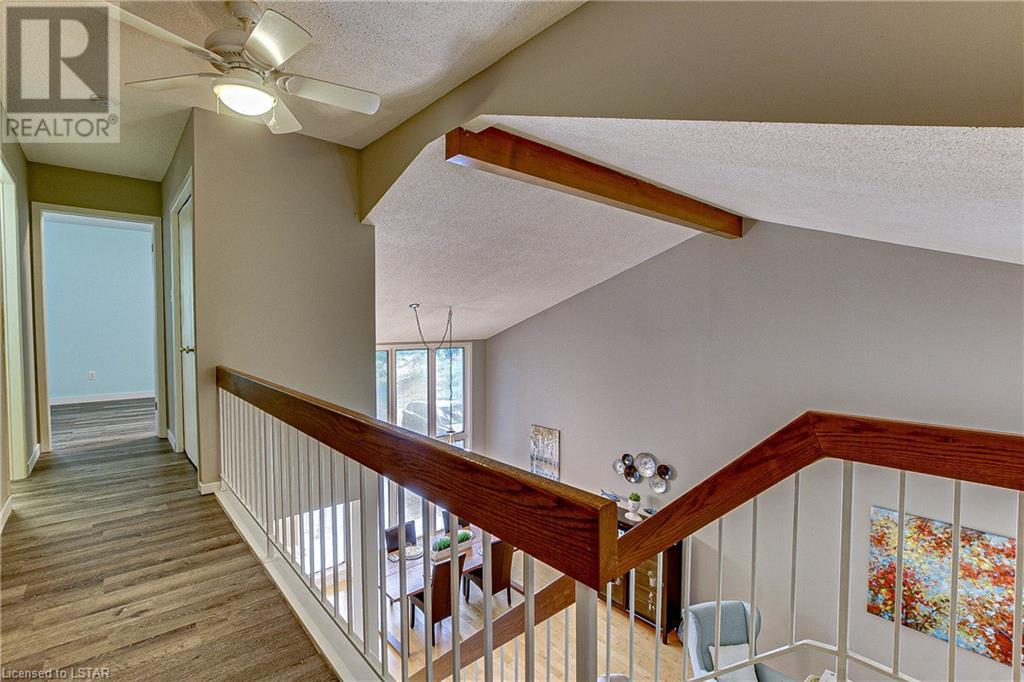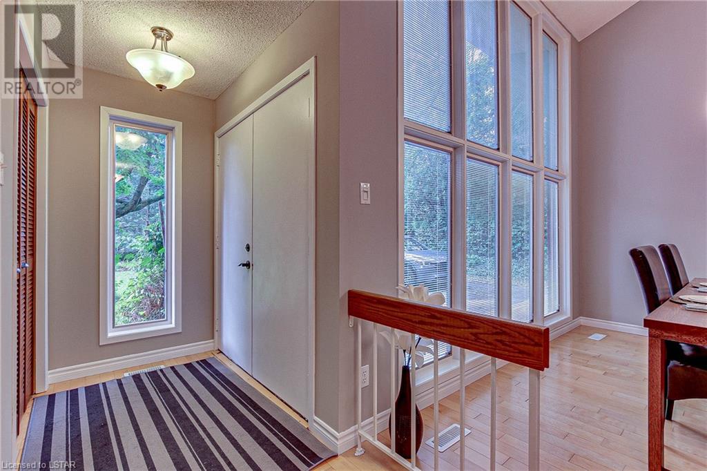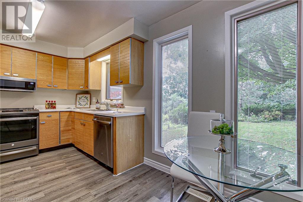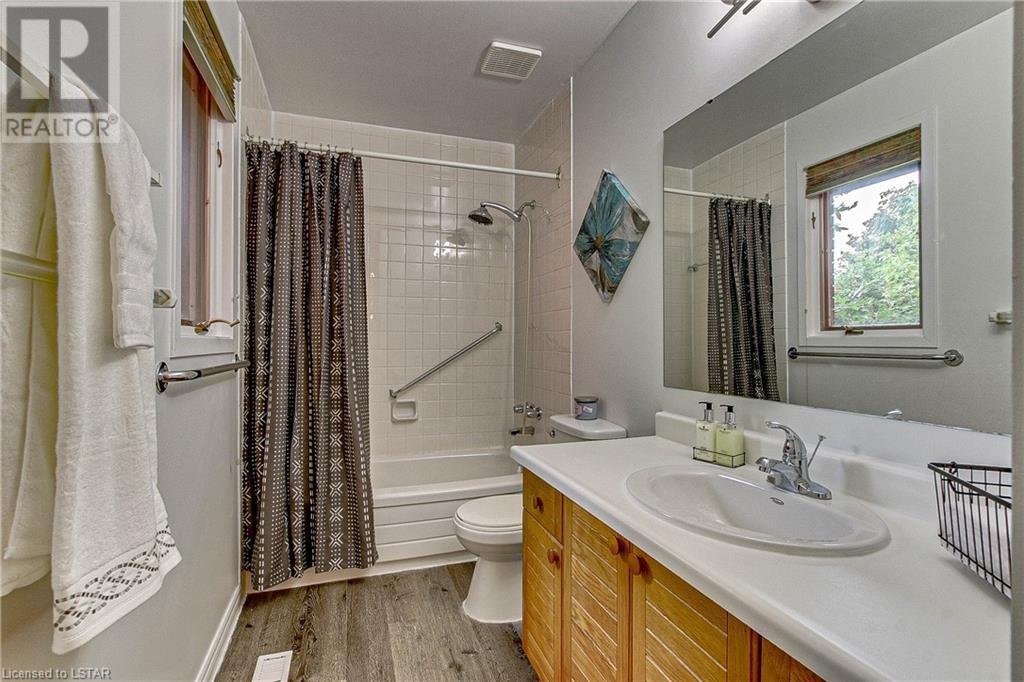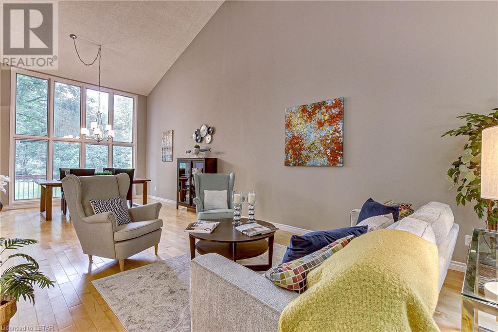 Don't miss out this Architectural Design Inspiration home. Unique, tasteful 2 storey all brick home on a mature private treed lot. Enter this made-to-order home with open concept dining room and living room featuring a vaulted soaring ceiling with custom hardwood finishes and large bright Pella windows that bring the outdoors in. Enjoy the cozy bright retro eat-in kitchen with its custom designed cabinetry, plus a main floor master and full bathroom. The second-floor features 2 other bedrooms plus a full bath. The lower level is partially finished with a generous sized recreation room, bathroom, and laundry room. There is an oversized attached double car garage, and the 4-car driveway with turning pad, that has enough parking for more. Relax in a nature lovers dream with woodland gardener yard areas both front and back that block out the sounds of the city and ensuring your privacy. Just a short walk to downtown London with all its shopping, restaurants, and entertaining amenities, close to walking and nature trails, and minutes to schools and city transit. Freshly painted, new floors from top to bottom. Come and enjoy this one-of-a-kind home. (id:22211)