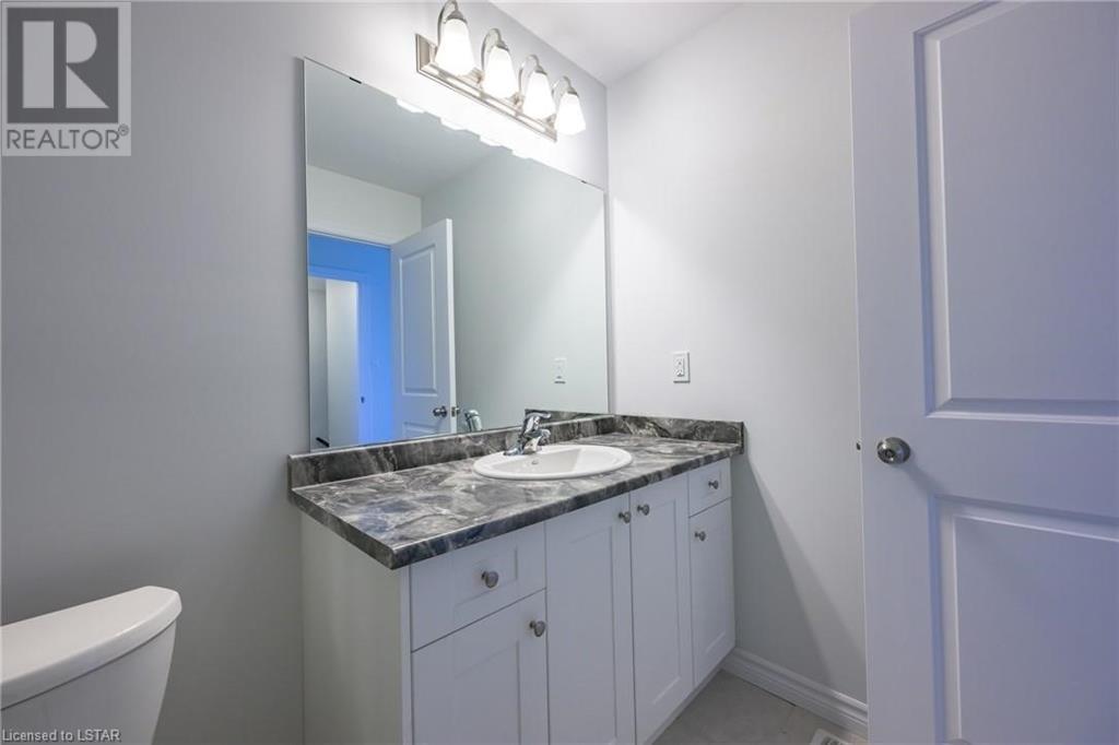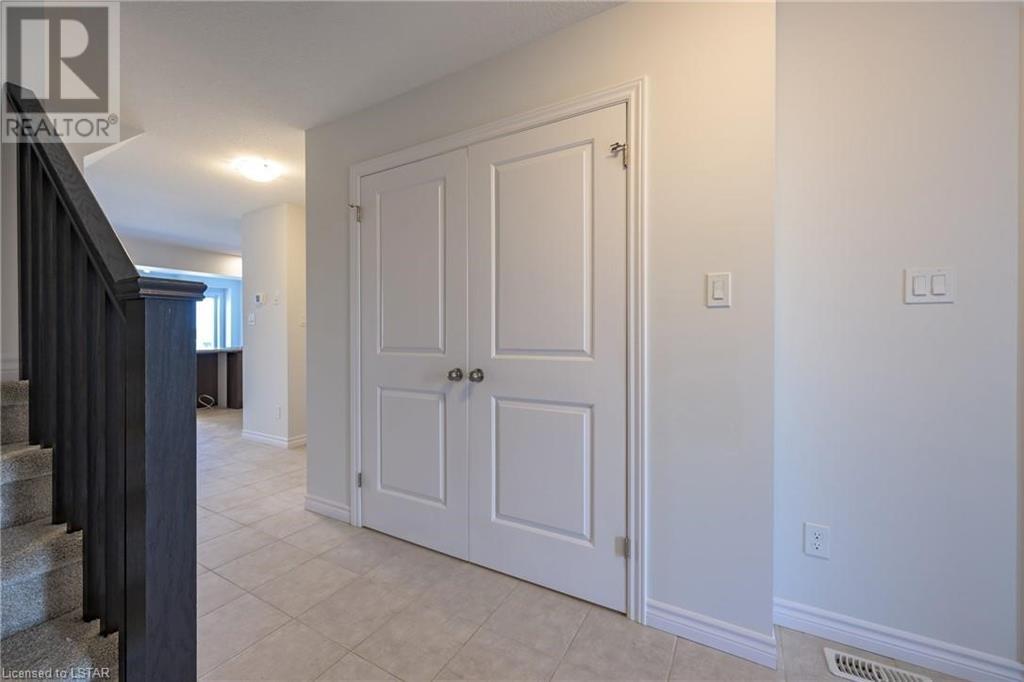 This Two Storey 1582 SqFt Freehold Row Townhome has NO Condo Fees! Welcome Home to the Rockport model this 3 bed, 2.5 bath townhome is an interior unit with open concept main floor living plan that is highly sought after. At the front entry you have a coat closet and a 2 piece guest bath, enclosed laundry room set up for side by side pair, then a few steps into the heart of the home. A larger table will fit in the Dinette for family meals or sit up at the Kitchen breakfast bar, the Great Room upgraded to include laminate flooring, is bright with 2 windows & a large patio door facing south rear-yard. Upstairs Master retreat offers a north view of the street, a large walk-in closet and private 3pc bath with a 5' shower. Upstairs hall has good sized linen closet, a 4 pc bath shared between bedrooms 2 & 3 each fairly equal in size with south facing windows. This basement is roughed-in for a future 3 pc bath, & has a large egress window for future development. Utilities, laundry sink, water heater, furnace are all neatly organized in one area close to rough-in. Entry door from the private 10x20' garage into the main floor hall as well a rear man-door to access the backyard breezeway shared for your back-lawn maintenance. These townhomes have natural gas heat, are located in desirable south-west London Close to all amenities and quick access to the highway south of the city. All offers must me on builer forms. (id:22211)