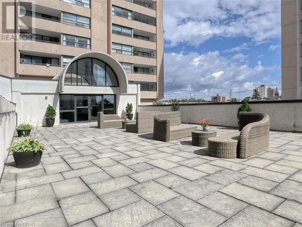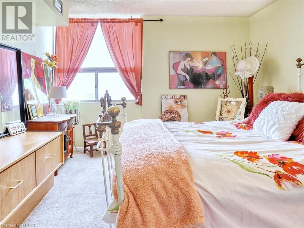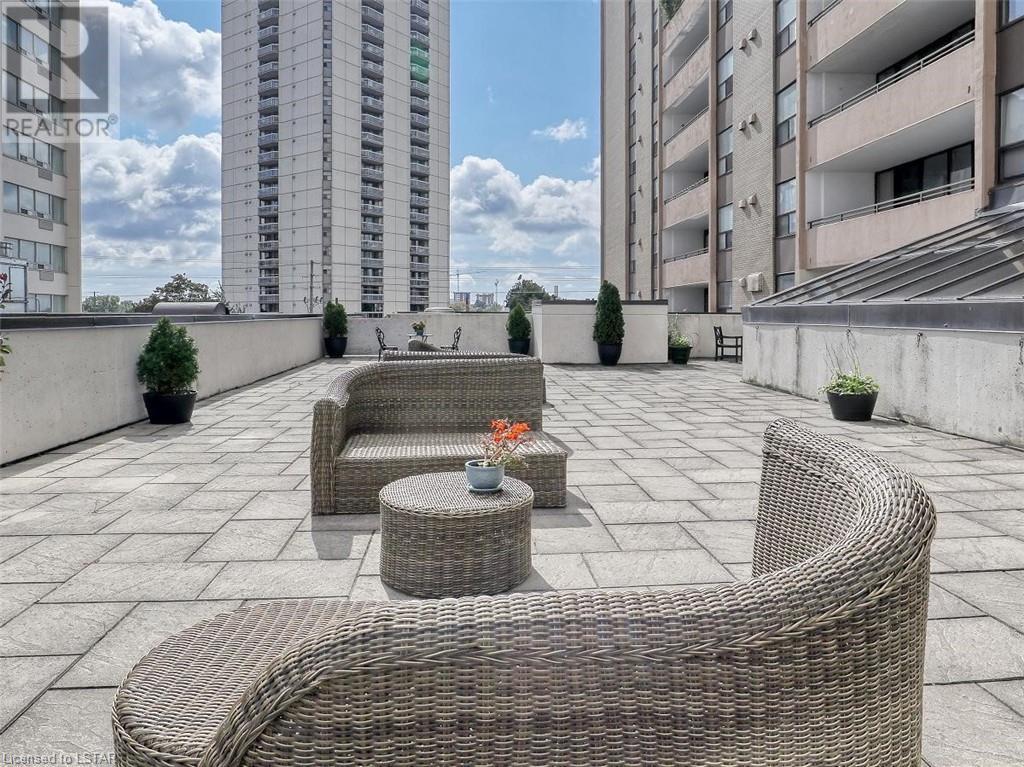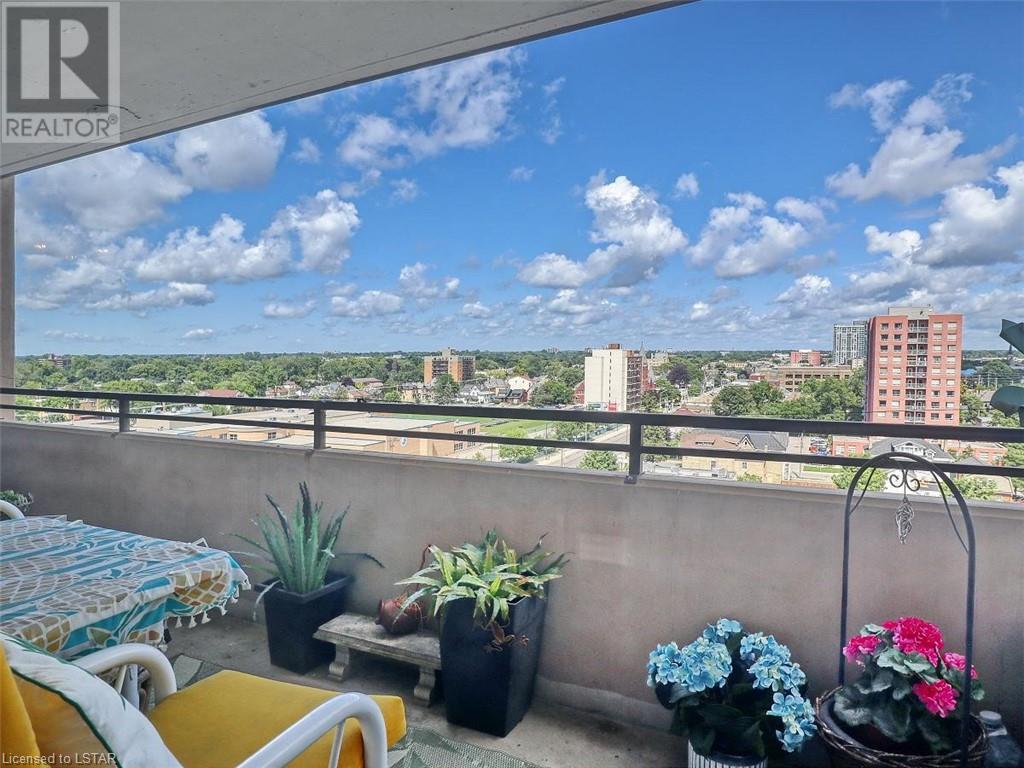You will love the space and warmth of this wonderful, very rare THREE BEDROOM 1390 sq ft downtown condominium unit! Direct buses to Fanshawe College and Western University and walking distance to numerous amenities, theatre, concerts, Covent Garden Market, Victoria, Park, and Harris Park at the fork of the Thames River! This spacious living space boasts 2 balconies with great views, one accessed from the master bedroom and the other accessed from the large living/dining area.There are 2 full bathrooms including a full ensuite bathroom. Updated white kitchen with lots of storage. Many large closets throughout including a storage room which could be converted to a private laundry area. The building has extensive updated amenities that include a beautiful indoor pool, exercise room, 2 large outdoor patios, library/games room, large party/meeting area, a variety store, and a bright clean laundry room. Condo fees include all personal electricity use, heating, central air, water and cable TV. This is affordable luxury living at its best! Showings by appointment only - make yours today! (id:22211)