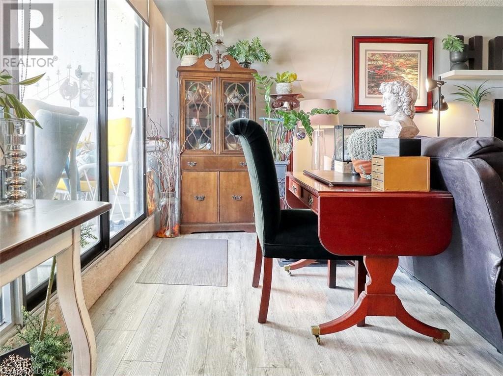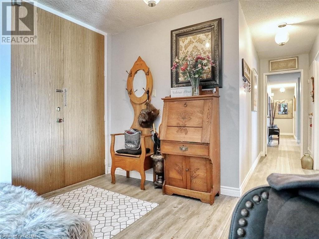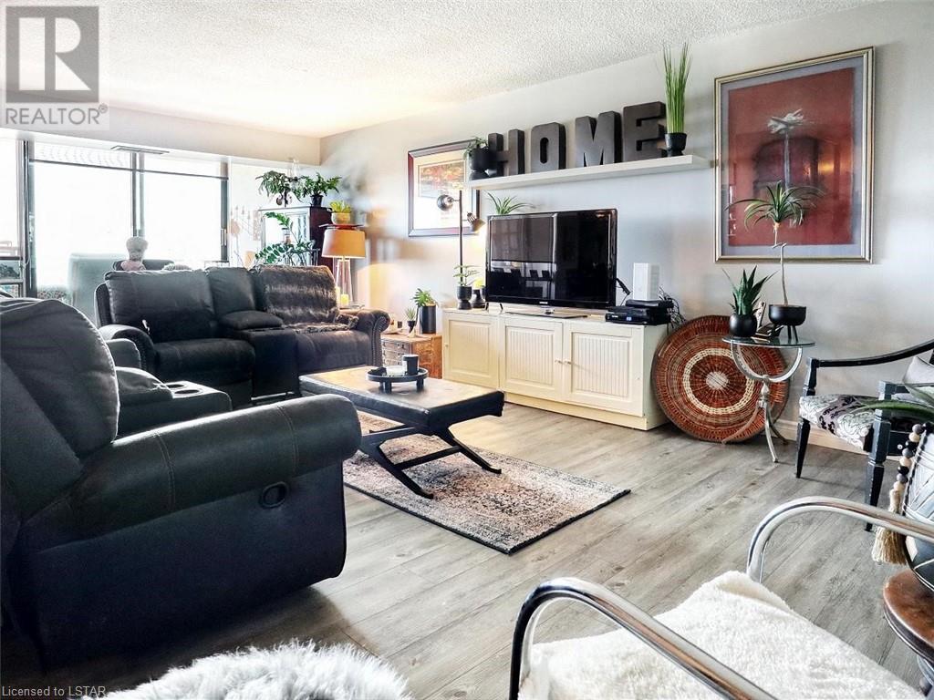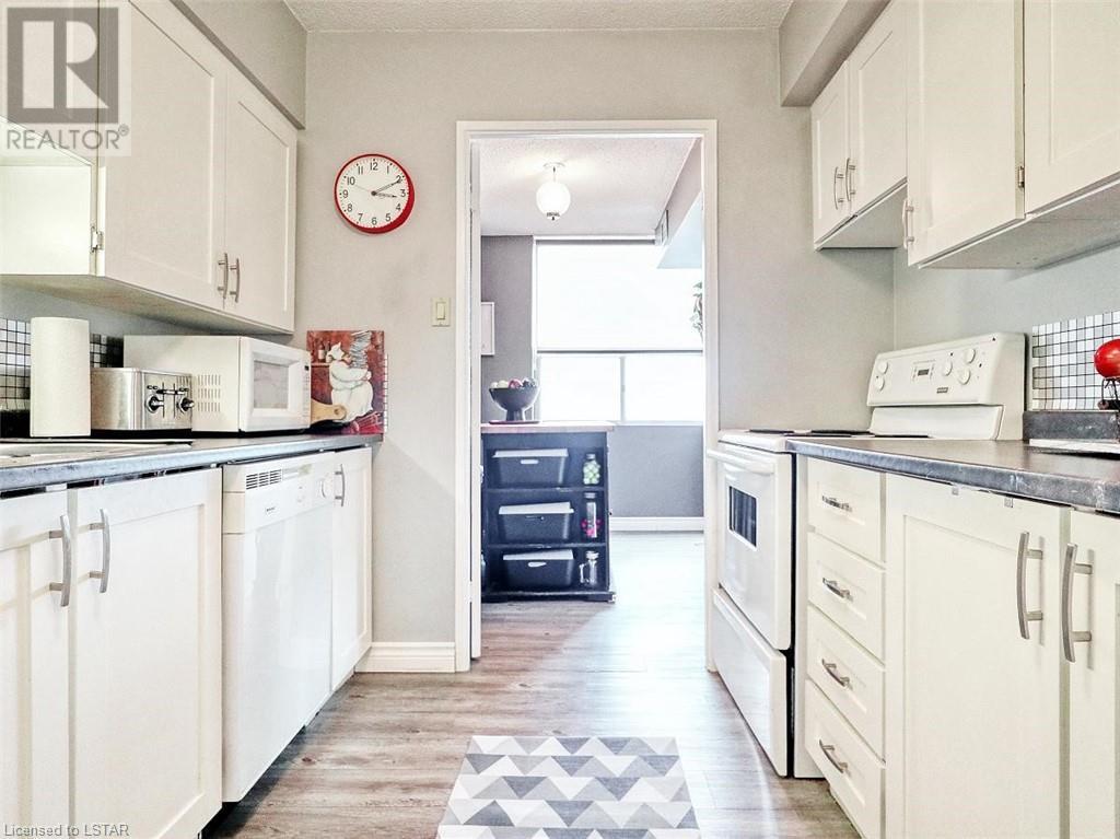 You will love the space and warmth of this wonderful, very rare THREE BEDROOM 1390 sq ft downtown condominium unit! Direct buses to Fanshawe College and Western University and walking distance to numerous amenities, theatre, concerts, Covent Garden Market, Victoria, Park, and Harris Park at the fork of the Thames River! This spacious living space boasts 2 balconies with great views, one accessed from the master bedroom and the other accessed from the large living/dining area.There are 2 full bathrooms including a full ensuite bathroom. Updated white kitchen with lots of storage. Many large closets throughout including a storage room which could be converted to a private laundry area. The building has extensive updated amenities that include a beautiful indoor pool, exercise room, 2 large outdoor patios, library/games room, large party/meeting area, a variety store, and a bright clean laundry room. Condo fees include all personal electricity use, heating, central air, water and cable TV. This is affordable luxury living at its best! Showings by appointment only - make yours today! (id:22211)