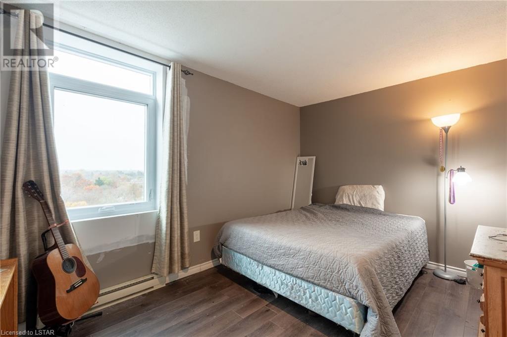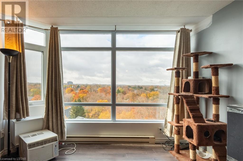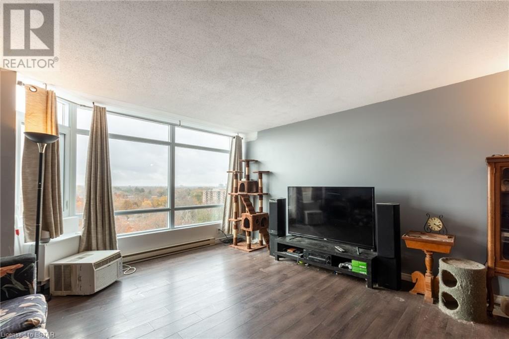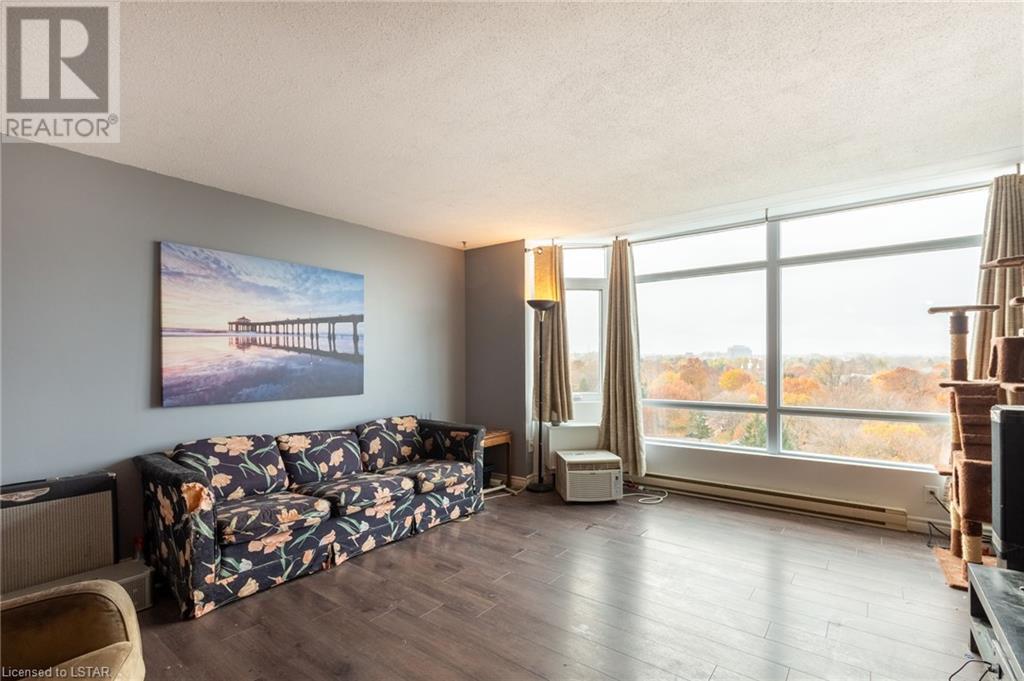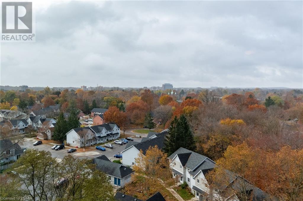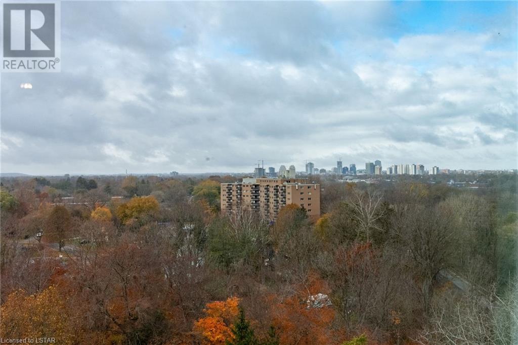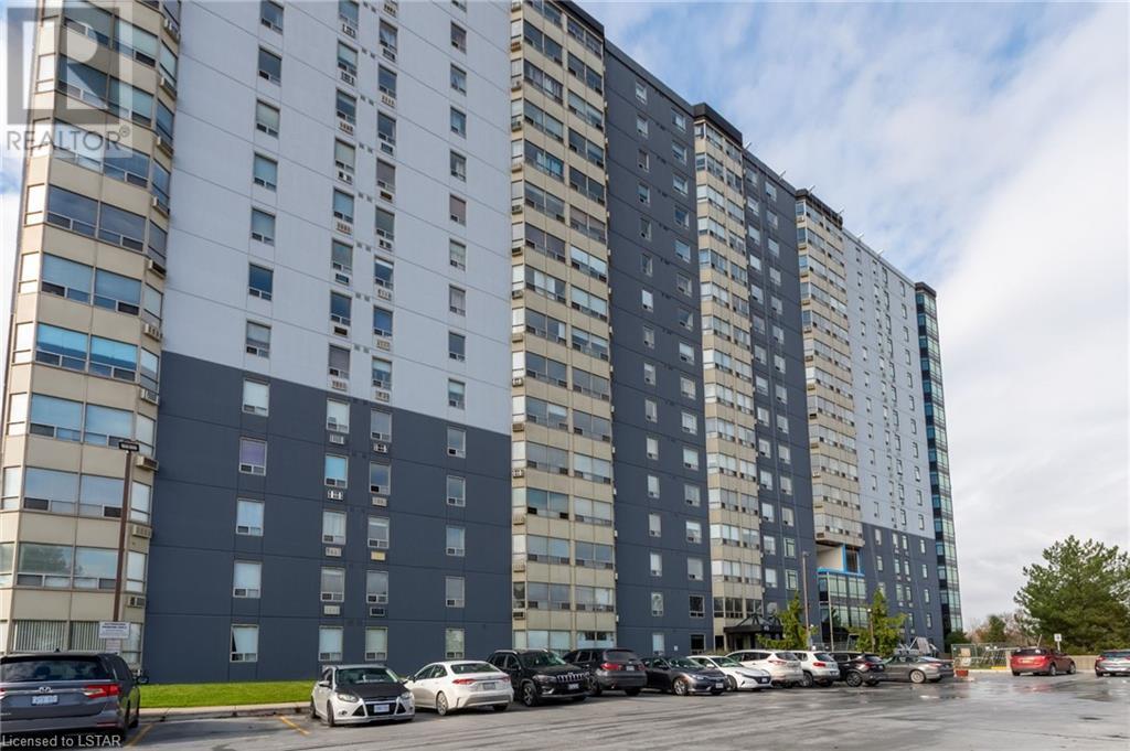 PRICED TO SELL! If you are looking to get into the market or acquire a low maintenance income property, this Pond Mills 1 bed, 1 full bath unit with in-suite laundry offers ample living space and great westerly views of downtown!! This extremely well managed building is ideally located with close proximity to parks, schools, and terrific amenities in Pond Mills and south London. Besides great views, the upper floor location provides lots of light throughout the open concept floorplan, which provides a spacious living room plus a dining area that is bright and airy and features updated laminate flooring. The kitchen provides a modern workspace with lots of storage in sleek cabinets. The bedroom is large, with an oversized closet while the 4 piece main bath is nicely appointed, with a granite vanity & ceramic flooring. Bonuses include in suite laundry, recently replaced windows (front side of building still undergoing replacement as shown in the photos), water included in the condo fees, and 1 assigned outdoor parking space. Amenities include workout rooms, sauna and garden area. This is a great building in an ideal location that is close to transit, and a perfect choice for you or your future tenants. (id:22211)