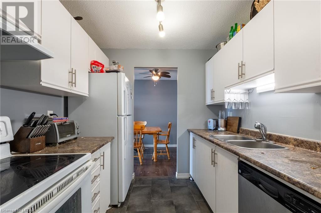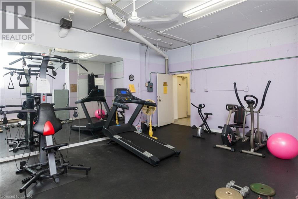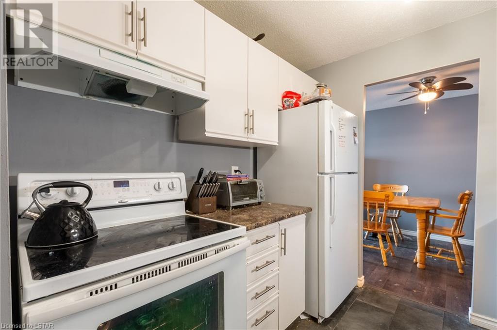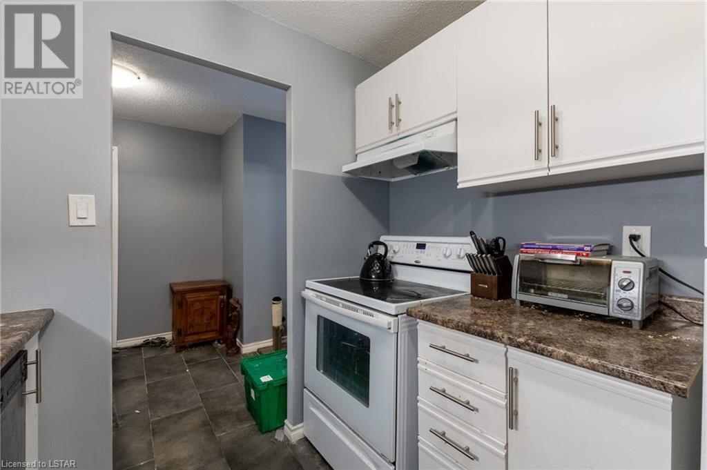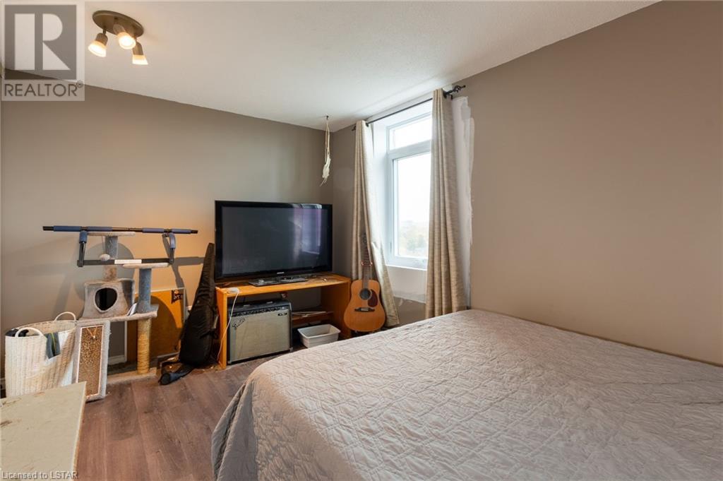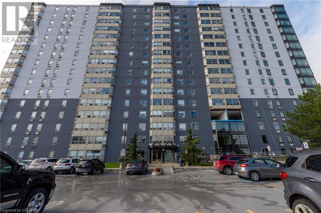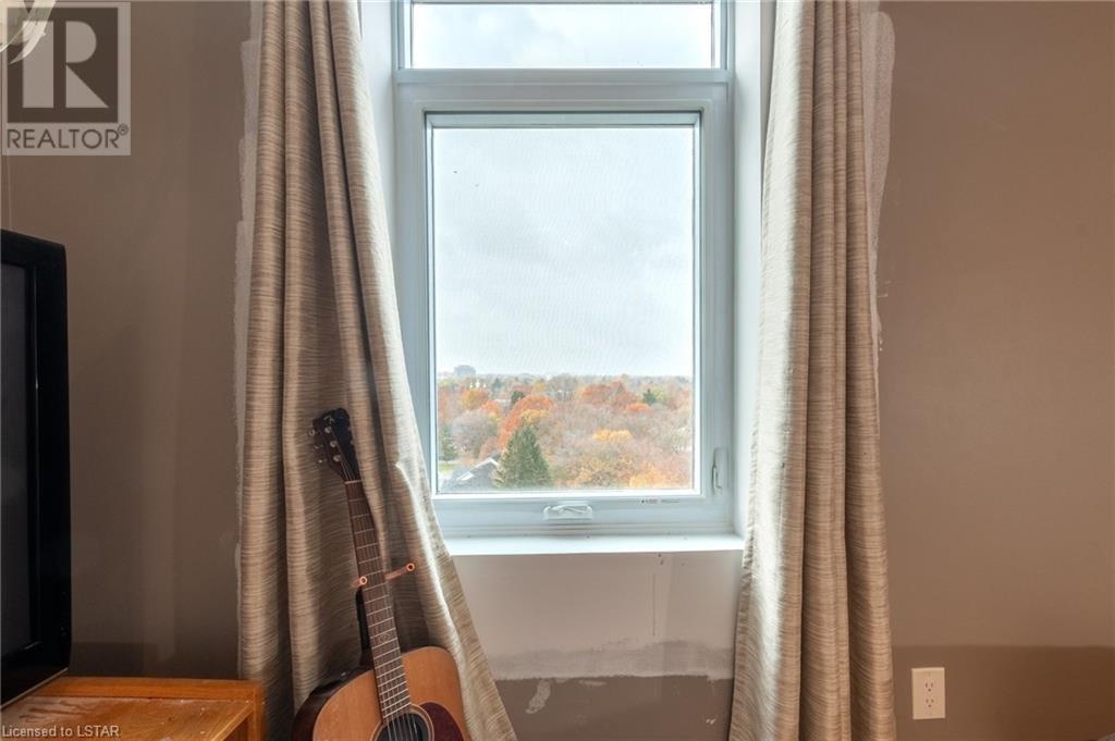 PRICED TO SELL! If you are looking to get into the market or acquire a low maintenance income property, this Pond Mills 1 bed, 1 full bath unit with in-suite laundry offers ample living space and great westerly views of downtown!! This extremely well managed building is ideally located with close proximity to parks, schools, and terrific amenities in Pond Mills and south London. Besides great views, the upper floor location provides lots of light throughout the open concept floorplan, which provides a spacious living room plus a dining area that is bright and airy and features updated laminate flooring. The kitchen provides a modern workspace with lots of storage in sleek cabinets. The bedroom is large, with an oversized closet while the 4 piece main bath is nicely appointed, with a granite vanity & ceramic flooring. Bonuses include in suite laundry, recently replaced windows (front side of building still undergoing replacement as shown in the photos), water included in the condo fees, and 1 assigned outdoor parking space. Amenities include workout rooms, sauna and garden area. This is a great building in an ideal location that is close to transit, and a perfect choice for you or your future tenants. (id:22211)