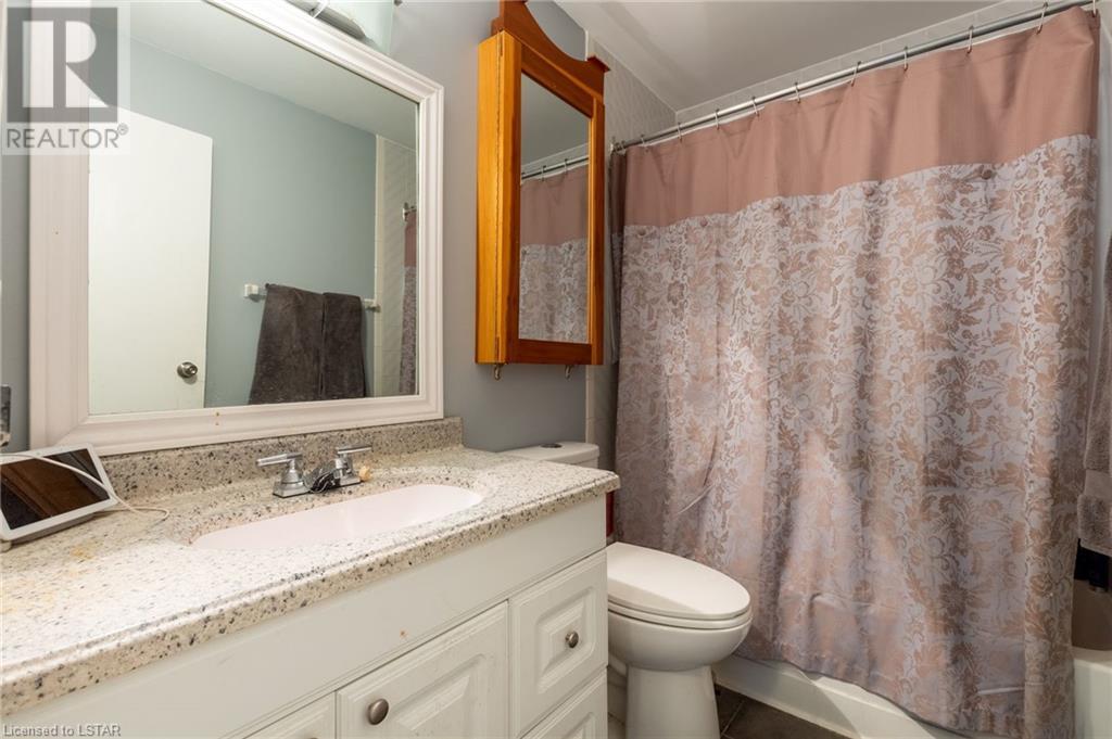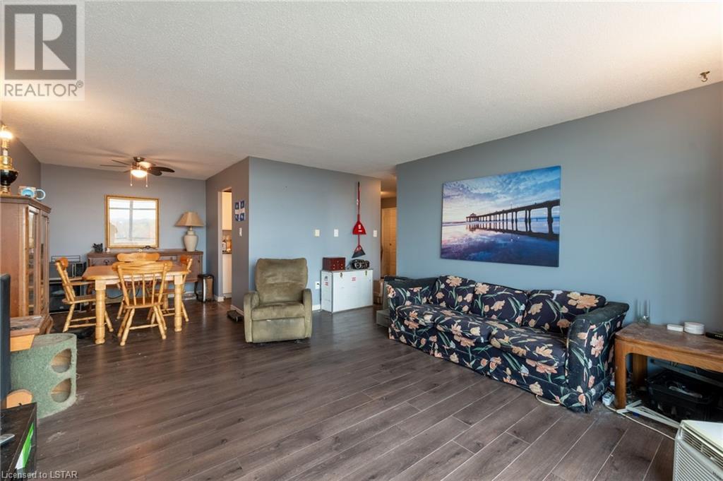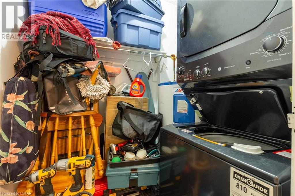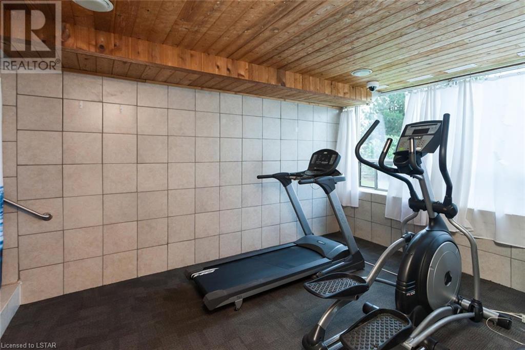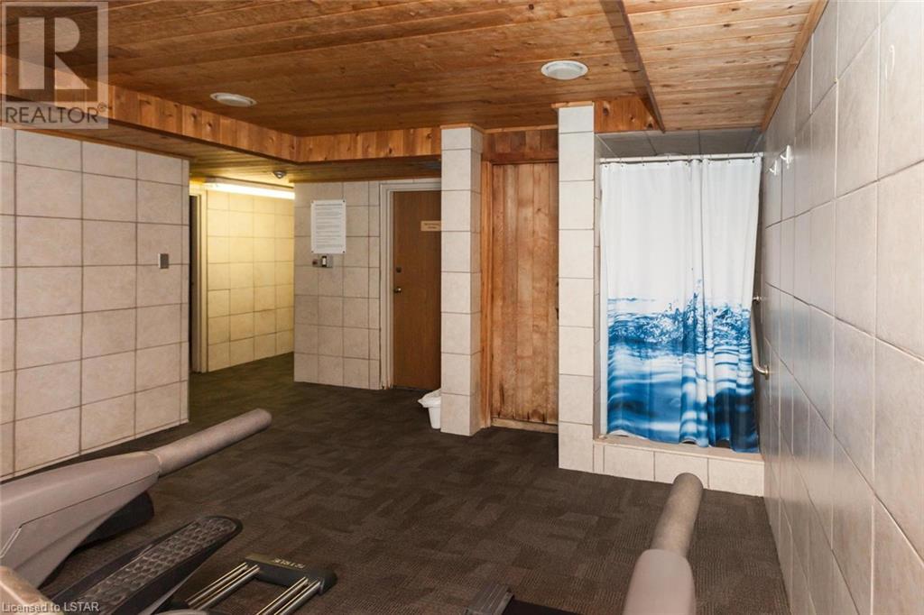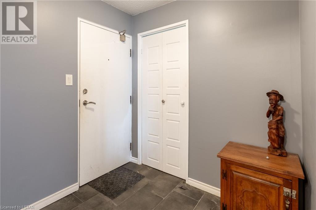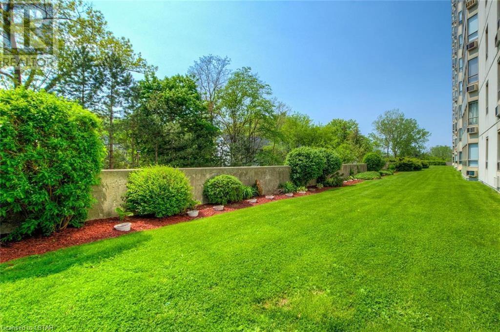 PRICED TO SELL! If you are looking to get into the market or acquire a low maintenance income property, this Pond Mills 1 bed, 1 full bath unit with in-suite laundry offers ample living space and great westerly views of downtown!! This extremely well managed building is ideally located with close proximity to parks, schools, and terrific amenities in Pond Mills and south London. Besides great views, the upper floor location provides lots of light throughout the open concept floorplan, which provides a spacious living room plus a dining area that is bright and airy and features updated laminate flooring. The kitchen provides a modern workspace with lots of storage in sleek cabinets. The bedroom is large, with an oversized closet while the 4 piece main bath is nicely appointed, with a granite vanity & ceramic flooring. Bonuses include in suite laundry, recently replaced windows (front side of building still undergoing replacement as shown in the photos), water included in the condo fees, and 1 assigned outdoor parking space. Amenities include workout rooms, sauna and garden area. This is a great building in an ideal location that is close to transit, and a perfect choice for you or your future tenants. (id:22211)