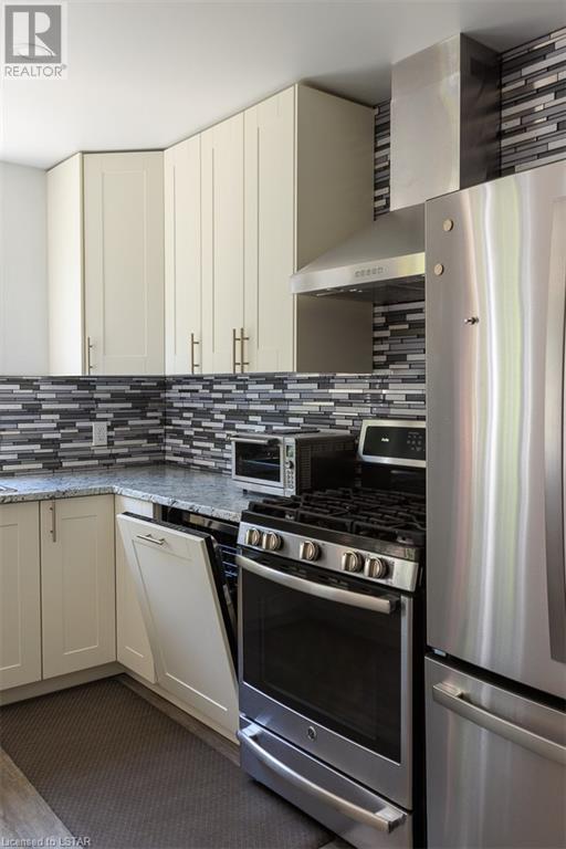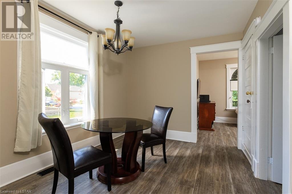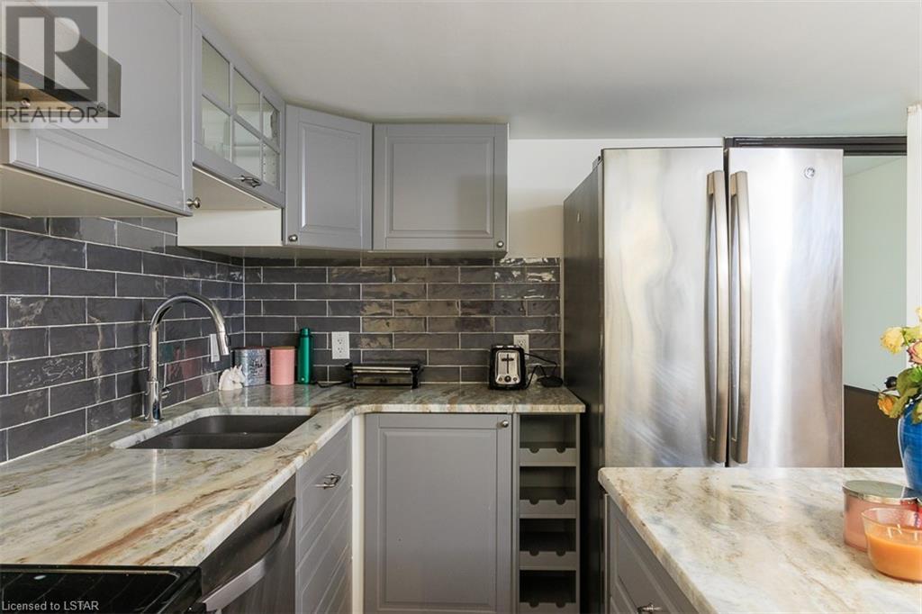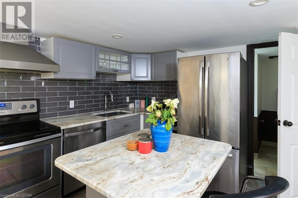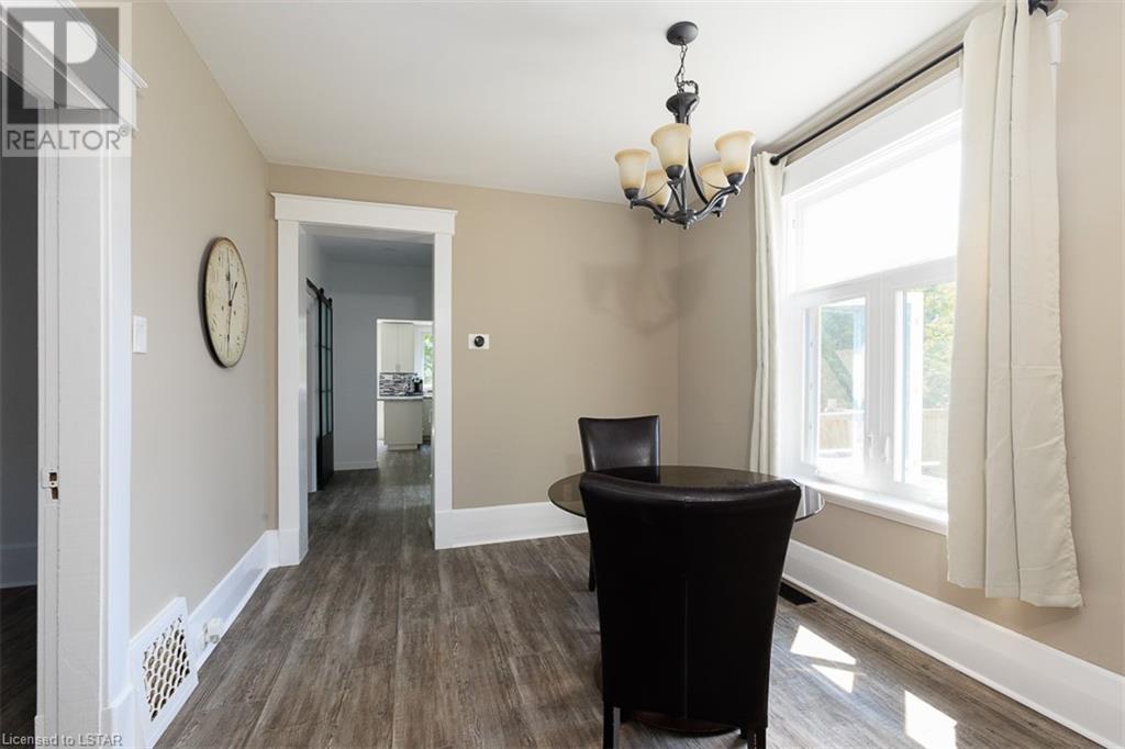 This is your opportunity to invest in a turn key property that allows you to cash in on today's market rents! Offering 3 units each equipped with their own dishwasher and laundry. The main floor unit features a relaxing front porch, two Bedrooms, separate Dining and Living Room (LR could be turned into a 3 bedroom with a bit of work), 4 piece Bathroom, beautifully renovated Kitchen and access to the back deck. The main floor unit currently has access to the upper unit. This could be enjoyed as is or easily locked up to completely separate both units. The downstairs Bachelor unit features a completely separate entrance with a functional Kitchen with quartz countertop and island, newer 3pc Bathroom, extended hallway with closet system and a sizable room for your living/sleeping needs. The upstairs 1 Bedroom unit features Kitchen with quartz countertop, updated 3 pc bathroom, Living Room(which could be potentially used as a second bedroom), a bedroom, a bonus room that could make a great walk-in closet or a small office, and a sizeable (21 ft x 12ft) private balcony just off the kitchen. Attached elongated garage at the side of property could be used for any unit. Located in the popular and revitalized Old East Village. Walking distance to Boyle's Park/community center, 100 Kellogg's Lane, the factory (Indoor adventure park), Breweries, local shops, family run restaurants, the western fair district and the future home of Hard Rock Hotel. Quick access to transit to East London, Fanshawe College or downtown London. Short drive to Victoria Hospital and all your other desired amenities. Many upgrades include: Metal Roof(2022), Fascia/soffits/Eaves/Downspouts/Vinyl siding(2022), Electrical (ESA certified) 2020, Plumbing 2018, Furnace/AC (2021), composite deck (2022), all windows (2022), Mainfloor Kitchen (2021) and more! Use your creativity (severance, build etc) to maximize your investment with this double lot! Only 3 double lots on this street! (id:22211)