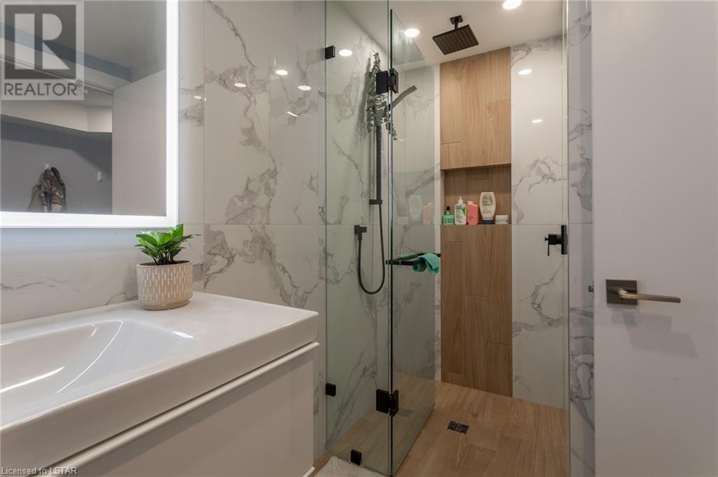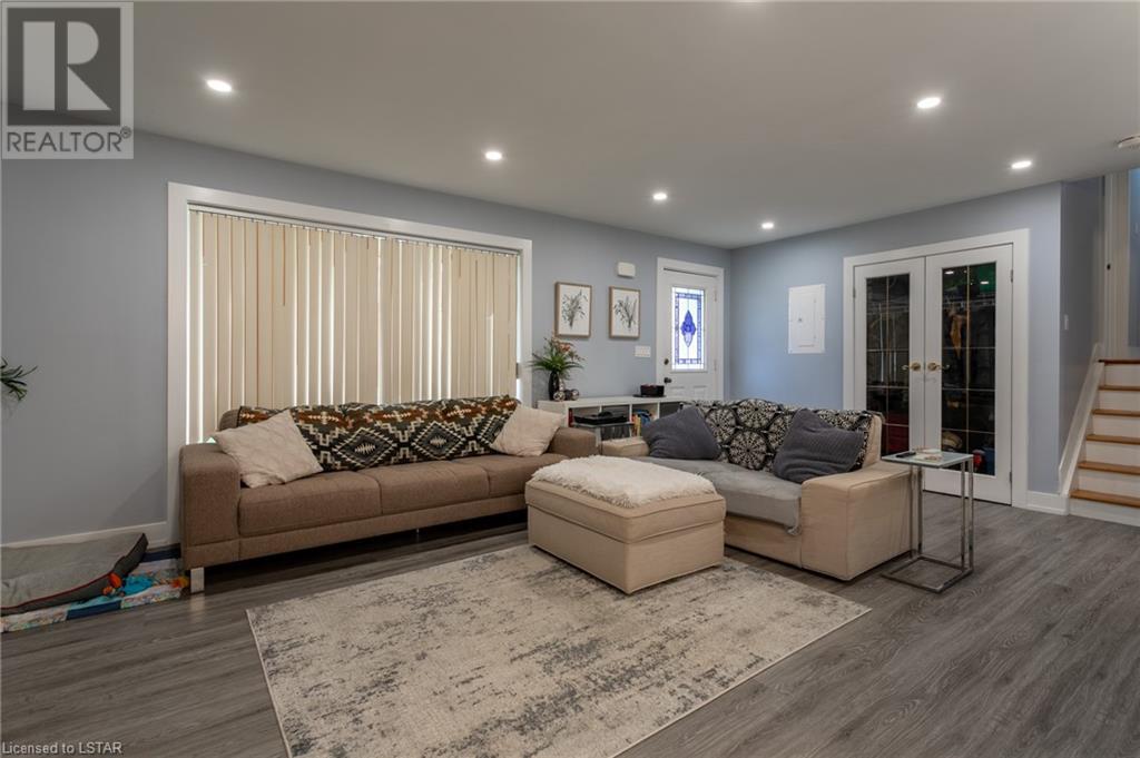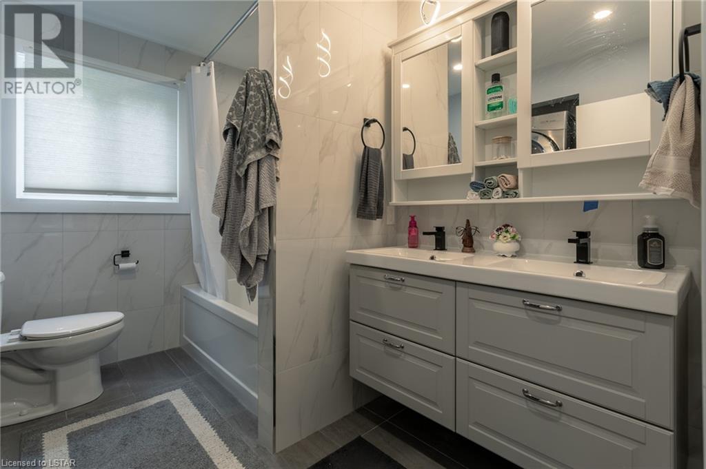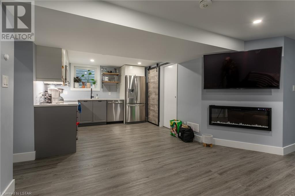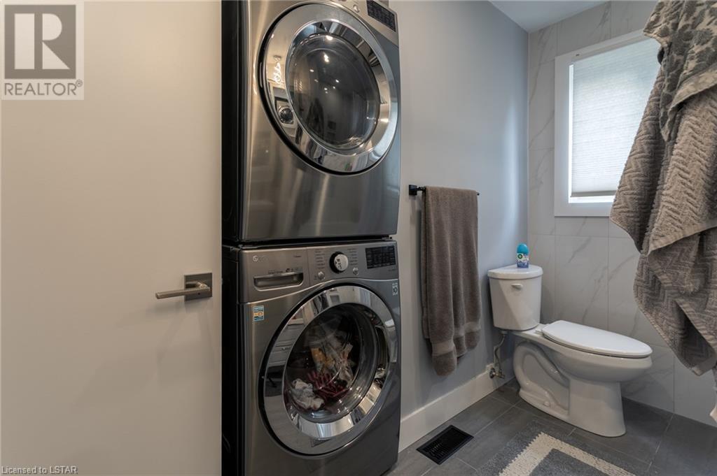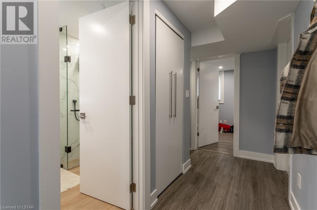 Check out this stunning fully renovated home in north east London, complete with a lower level accessory apartment and tons of impressive features! The main floor boasts a custom kitchen with premium quartz countertops and a cozy natural fireplace in the living room. Upstairs you'll find 3 bedrooms, a luxurious 5 piece bath with heated floors, and a stackable washer/dryer. The upper unit also has its own private outdoor space with a fenced-in patio. Meanwhile, the lower level apartment has its own entrance, 2 bedrooms, a spa-like 3 piece bath with heated floors, a new kitchen, and an electric fireplace in the living space. And don't forget the in-suite laundry and private outdoor space! With luxury vinyl flooring, LED pot lights, new copper wiring, safe 'n' sound insulation, R60 in the attic, separate hydro meters, separate hot water tanks and spray foam insulation, this home is truly one-of-a-kind. Plus, it comes with 2 private double-wide driveways, each with a NEMA 1450R EV charger outlet. Everything completed with appropriate permits! There is an opportunity to move into main floor with lower level mortgage helper or purchase as a turnkey investment property ideal for any portfolio. The upper unit is rented month-to-month for $2126.47 + hydro with tenants willing to stay; lower unit is under a 1 year lease at $1875 + utilities and is not subject to rent control. (id:22211)