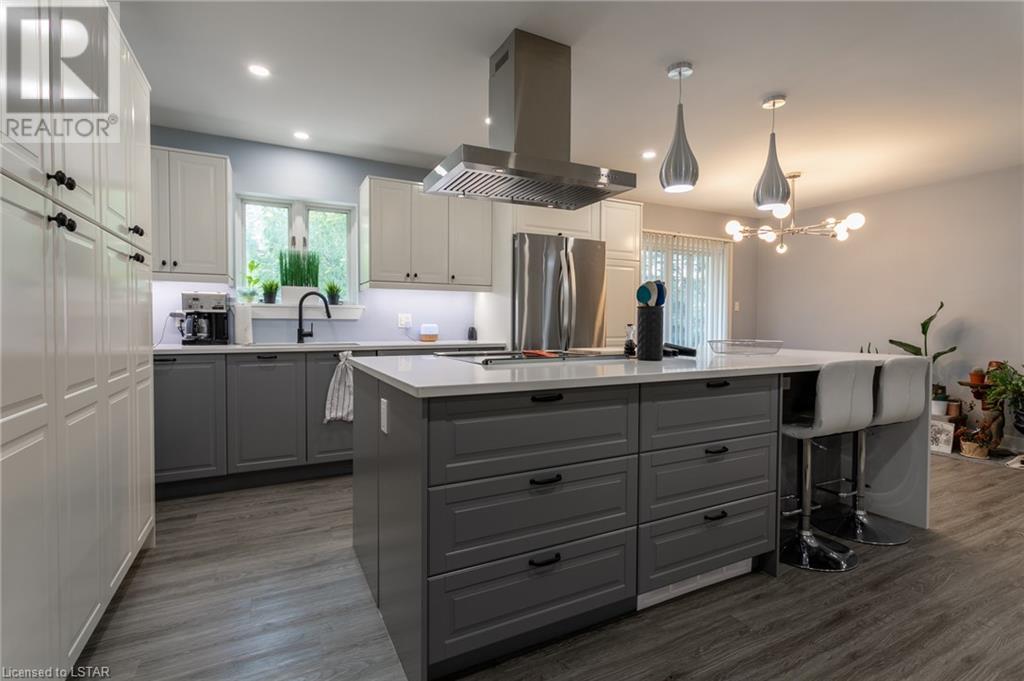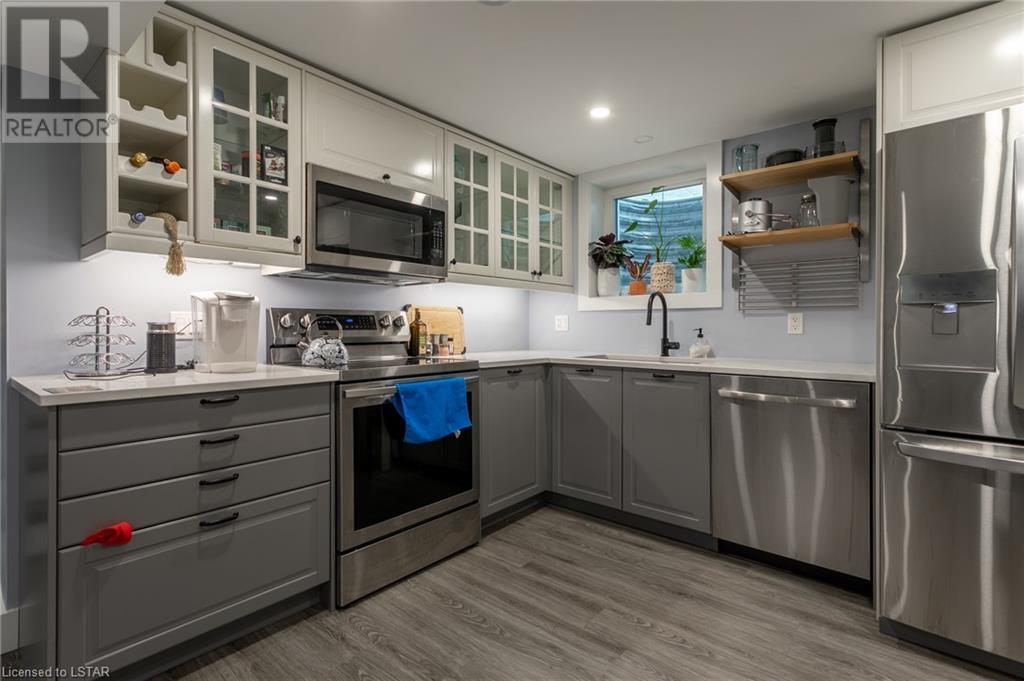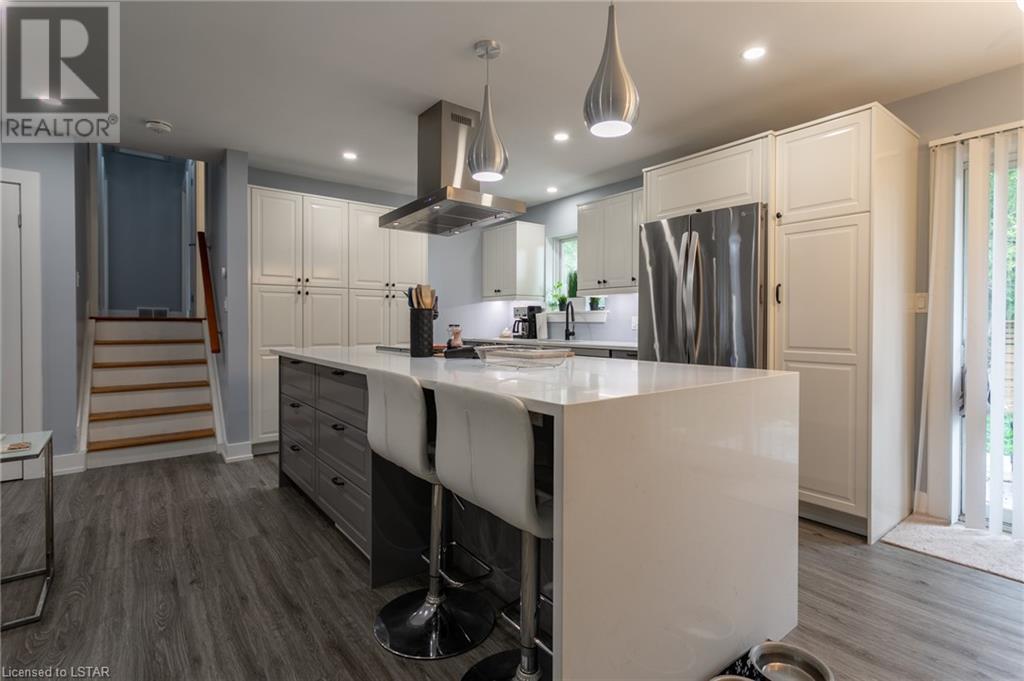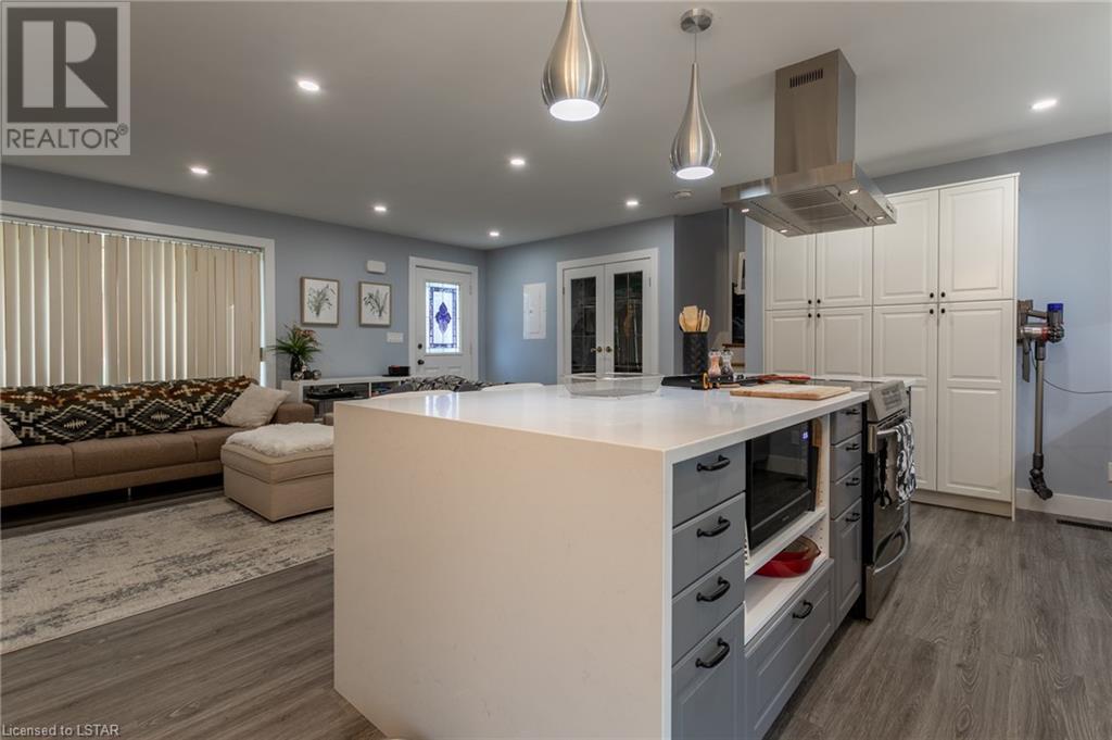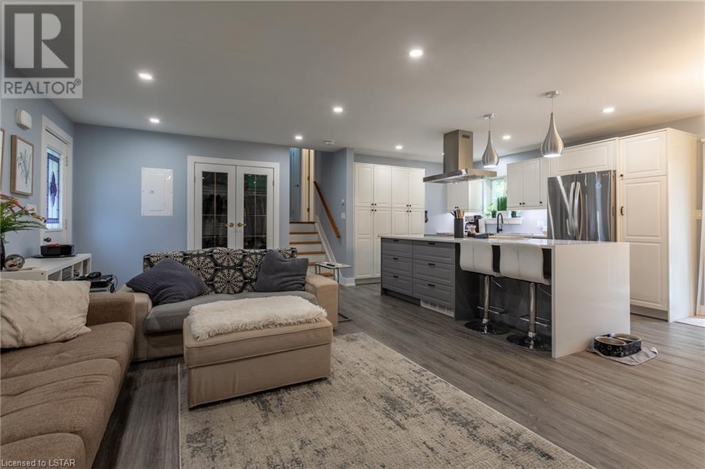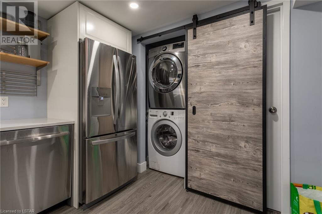 Check out this stunning fully renovated home in north east London, complete with a lower level accessory apartment and tons of impressive features! The main floor boasts a custom kitchen with premium quartz countertops and a cozy natural fireplace in the living room. Upstairs you'll find 3 bedrooms, a luxurious 5 piece bath with heated floors, and a stackable washer/dryer. The upper unit also has its own private outdoor space with a fenced-in patio. Meanwhile, the lower level apartment has its own entrance, 2 bedrooms, a spa-like 3 piece bath with heated floors, a new kitchen, and an electric fireplace in the living space. And don't forget the in-suite laundry and private outdoor space! With luxury vinyl flooring, LED pot lights, new copper wiring, safe 'n' sound insulation, R60 in the attic, separate hydro meters, separate hot water tanks and spray foam insulation, this home is truly one-of-a-kind. Plus, it comes with 2 private double-wide driveways, each with a NEMA 1450R EV charger outlet. Everything completed with appropriate permits! There is an opportunity to move into main floor with lower level mortgage helper or purchase as a turnkey investment property ideal for any portfolio. The upper unit is rented month-to-month for $2126.47 + hydro with tenants willing to stay; lower unit is under a 1 year lease at $1875 + utilities and is not subject to rent control. (id:22211)